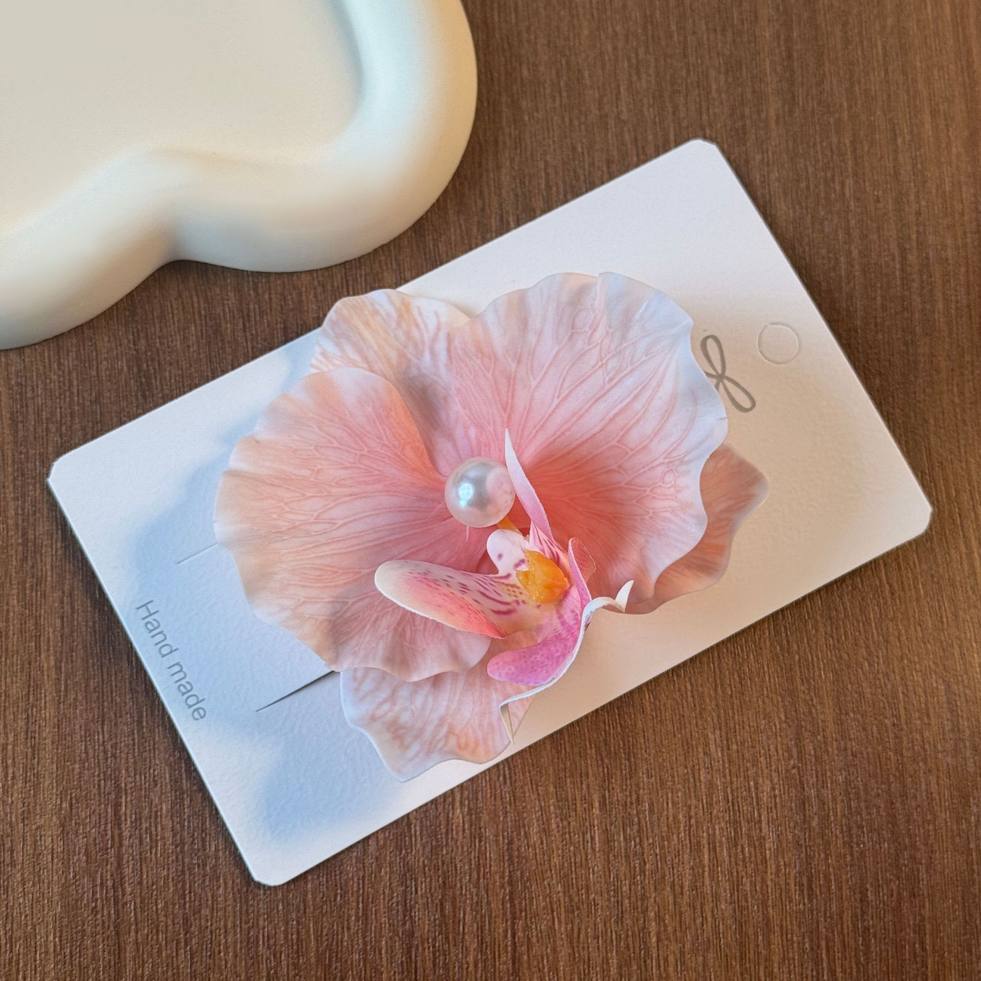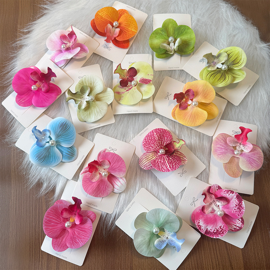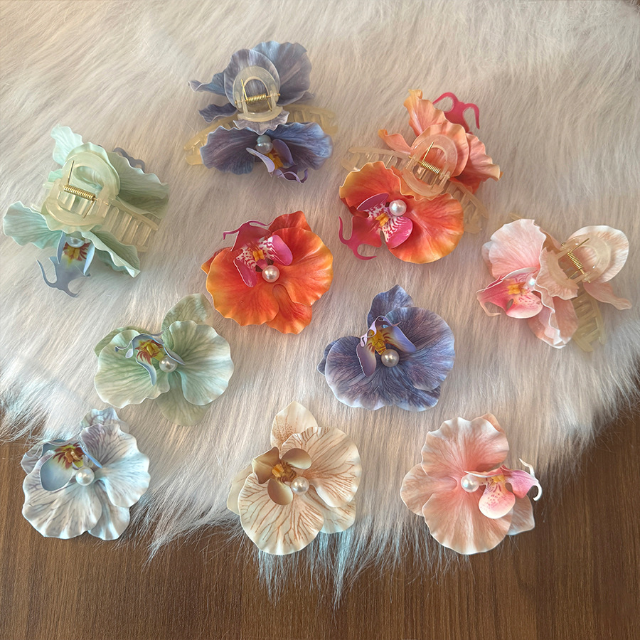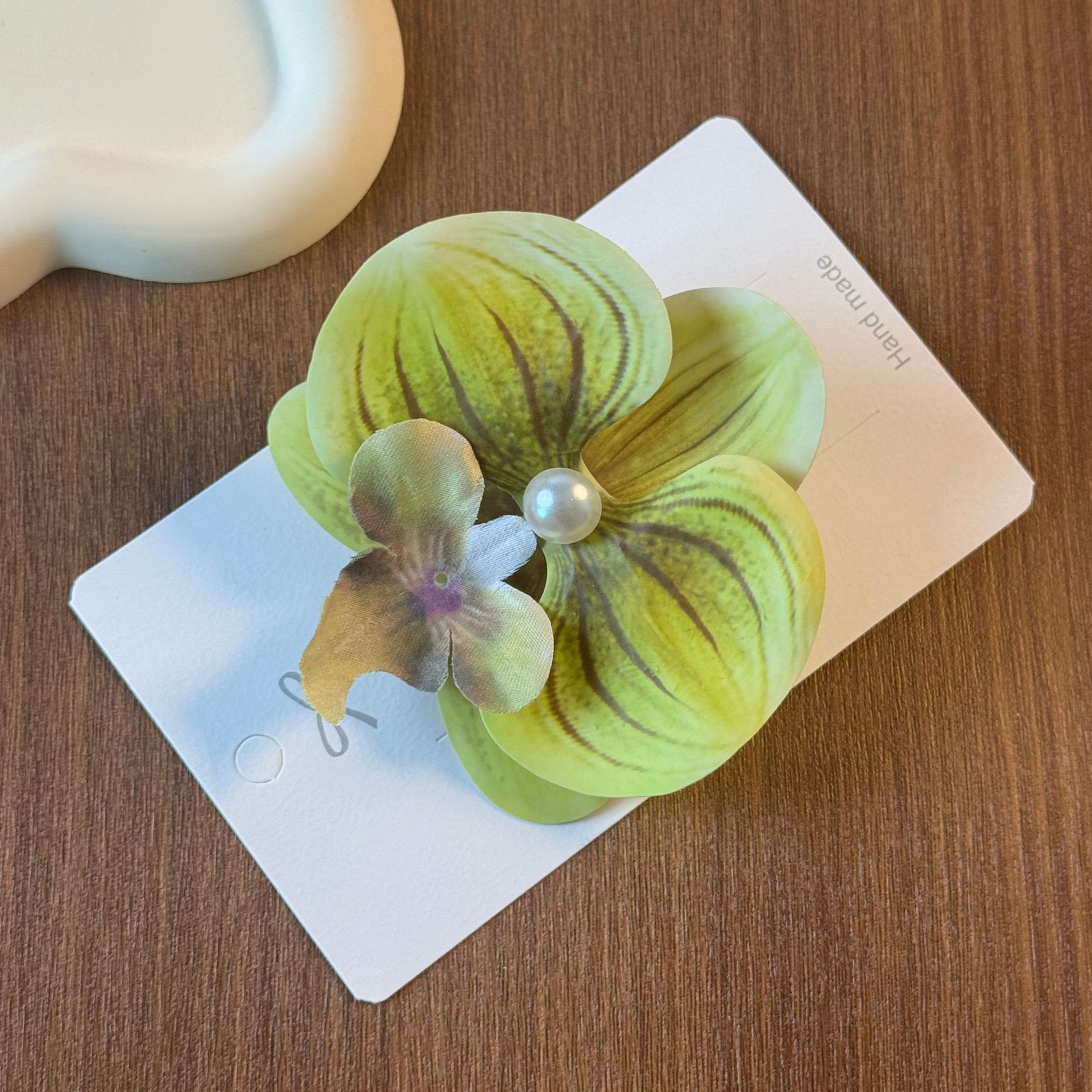새로운 스타일의 난초꽃 머리핀, 고급스러운 디자인의 집게핀, 분위기 있는 휴가 사진 촬영용 덕빌핀, 헤어 액세서리, 해외 직구 헤어 장식