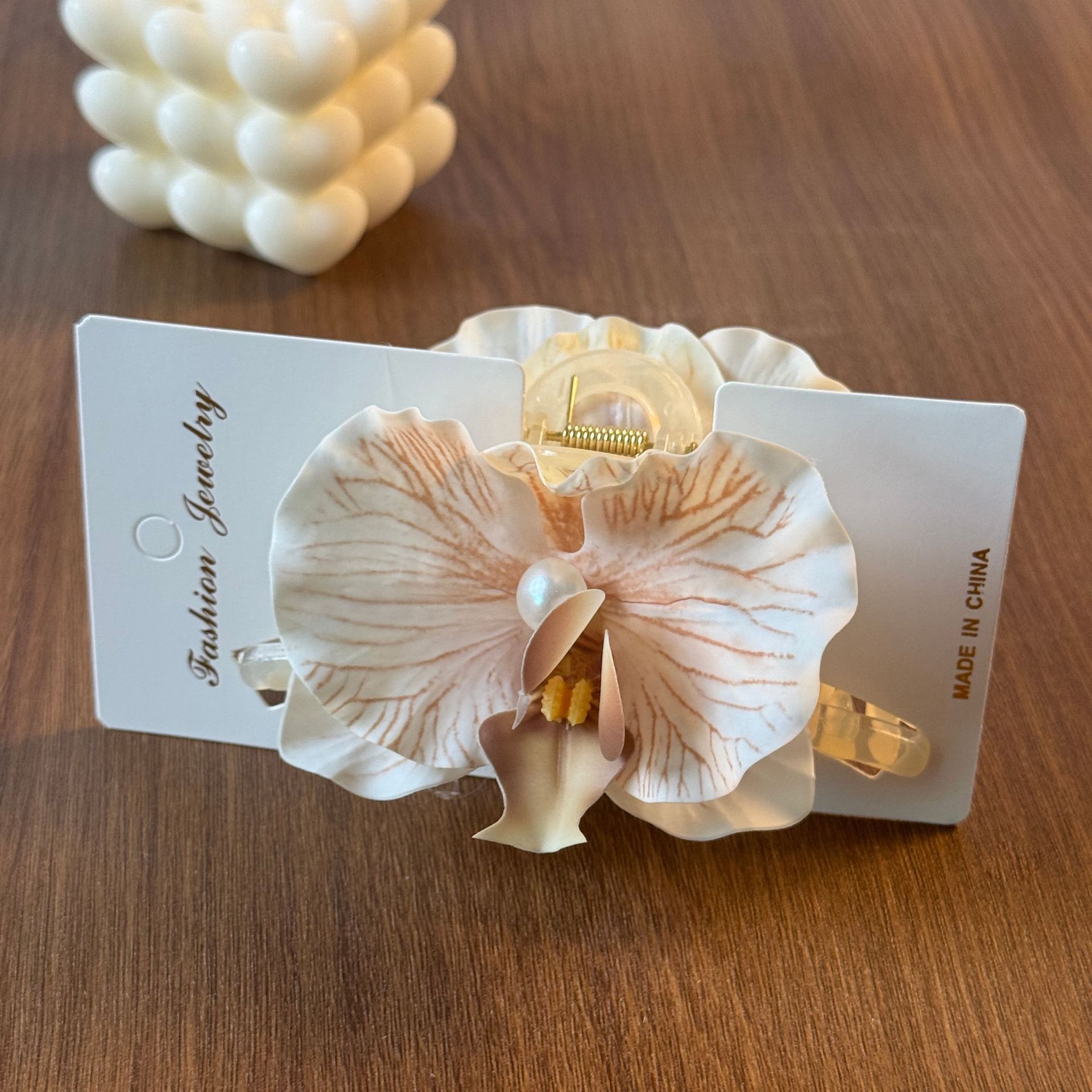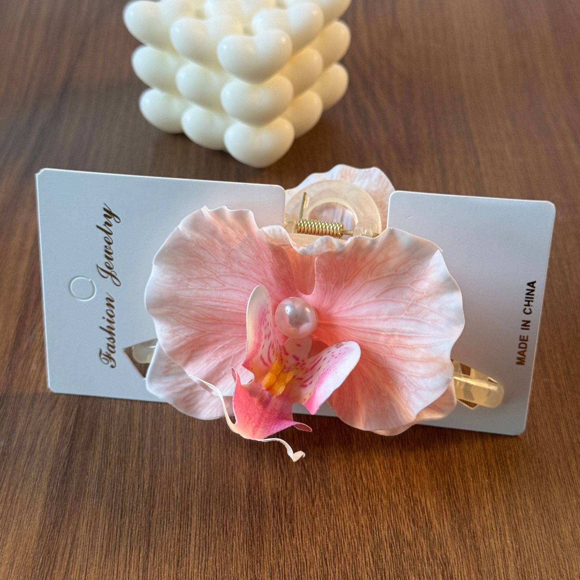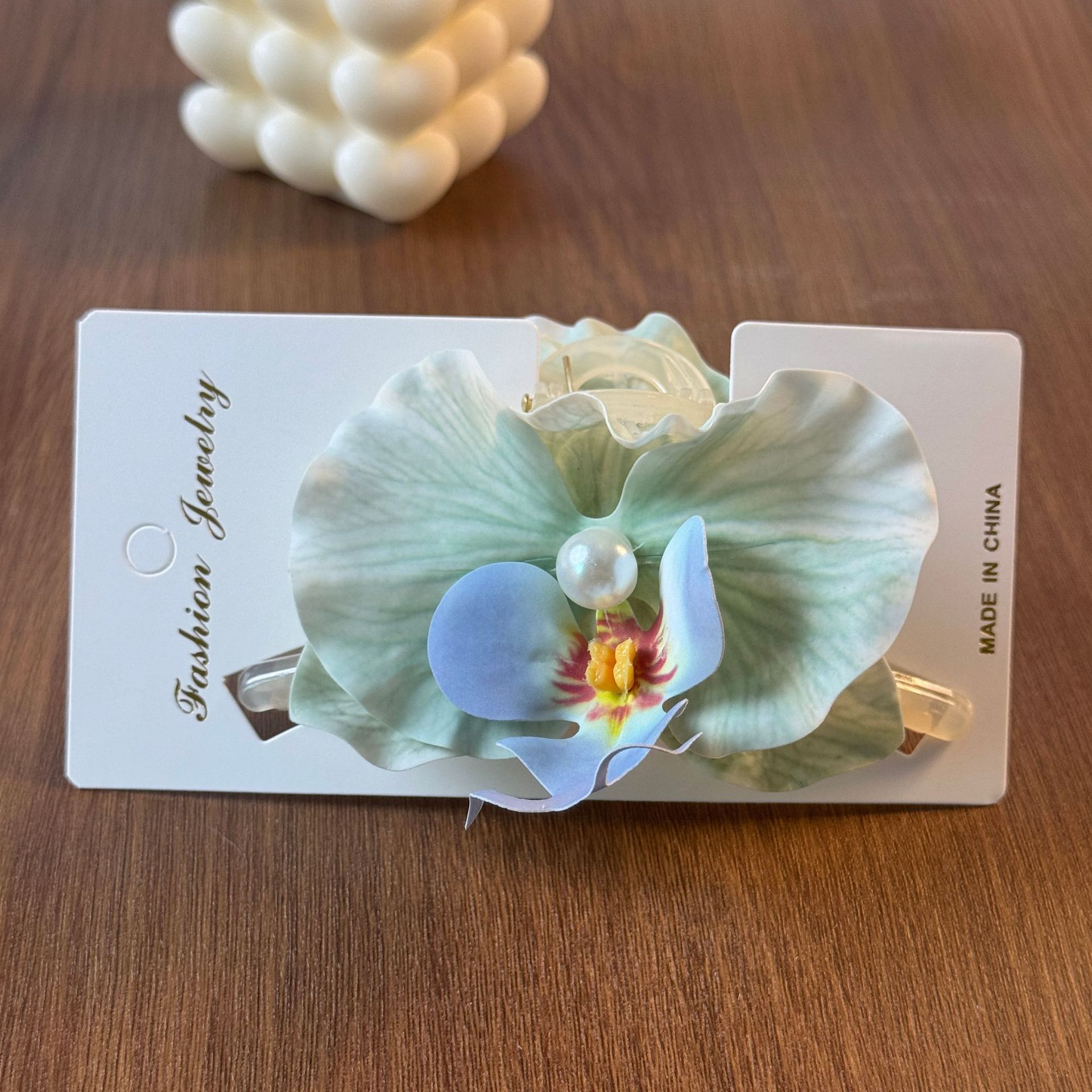 새로운 스타일의 난초꽃 머리핀, 고급스러운 디자인의 집게핀, 분위기 있는 휴가 사진 촬영용 덕빌핀, 헤어 액세서리, 해외 직구 헤어 장식