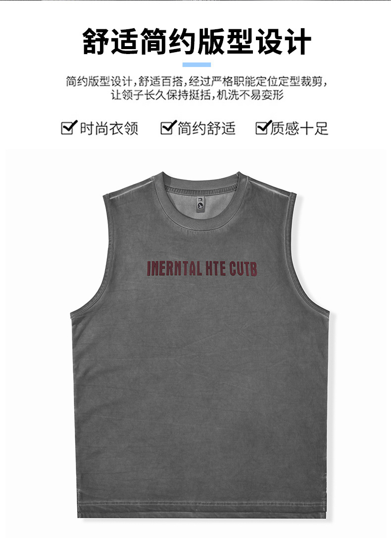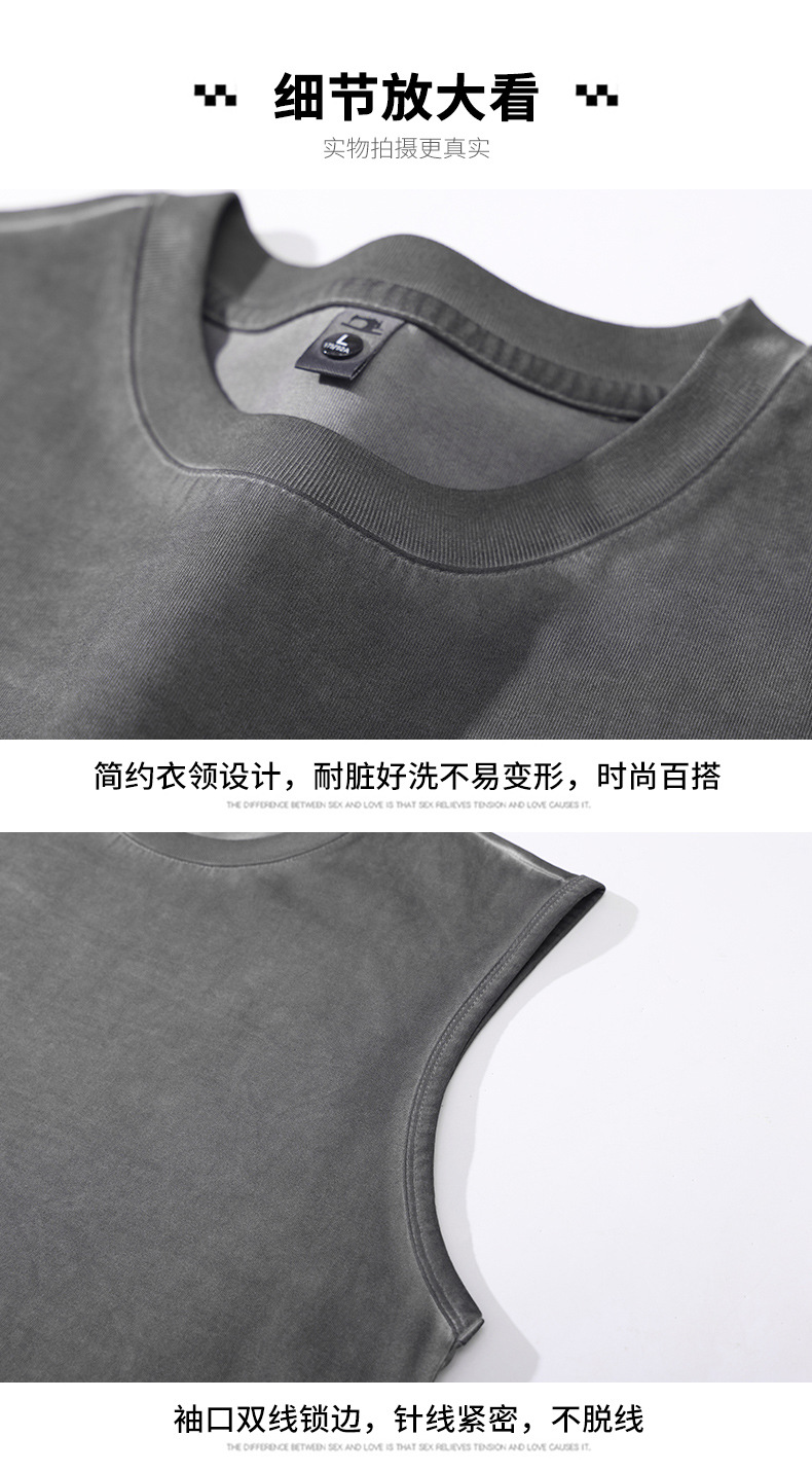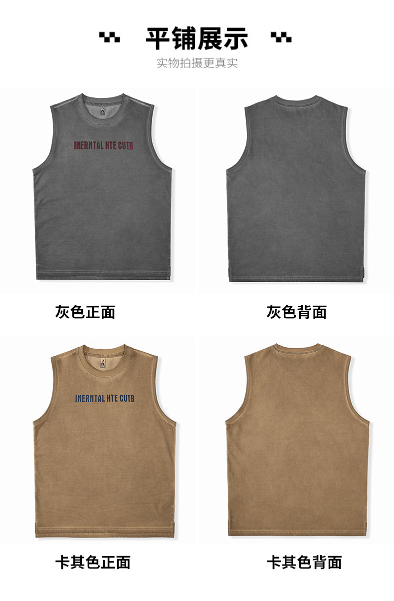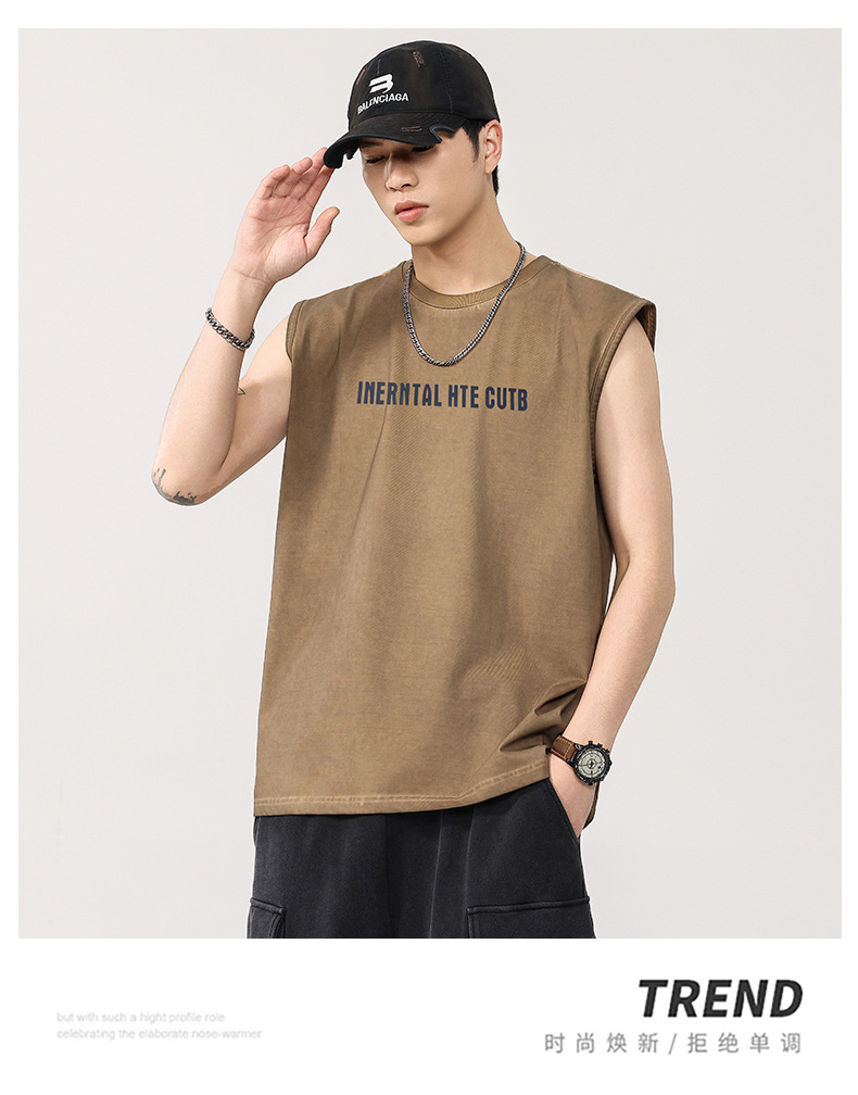 T3970 | 플러스 사이즈 남성 여름 새로운 미국 복고풍 민소매 조끼 느슨한 튀김 컬러 더러운 세척 인쇄 티셔츠 남성