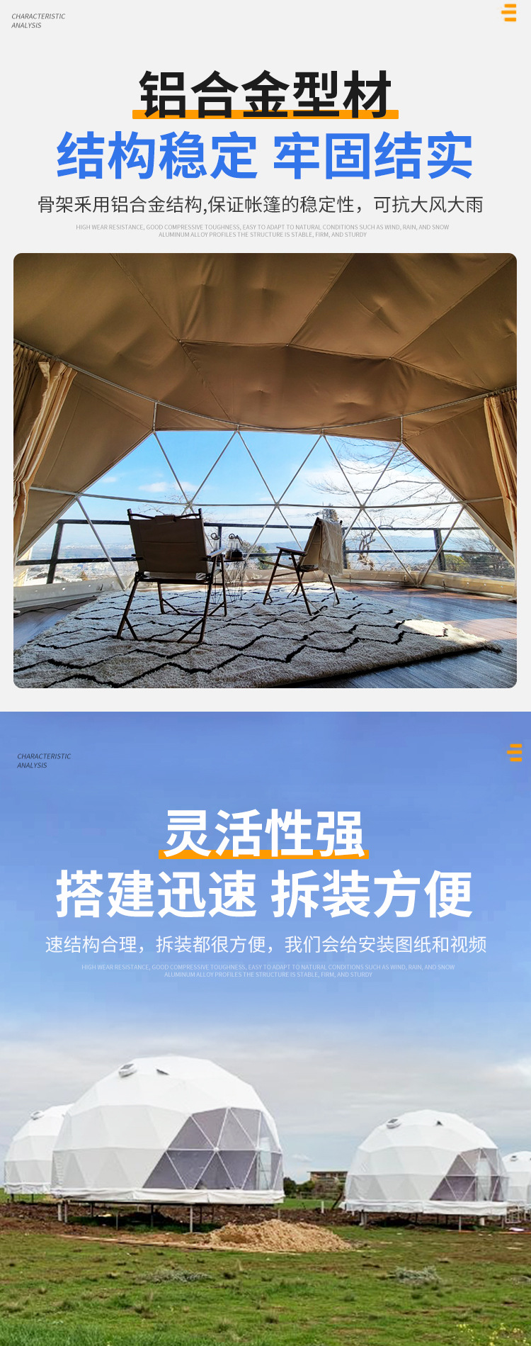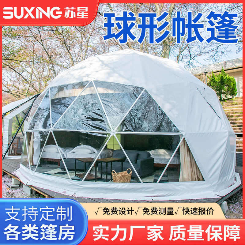 야외 구형 호텔 텐트 캠핑 텐트 크리 에이 티브 파노라마 전체 목재 프레임 리조트 캐노피