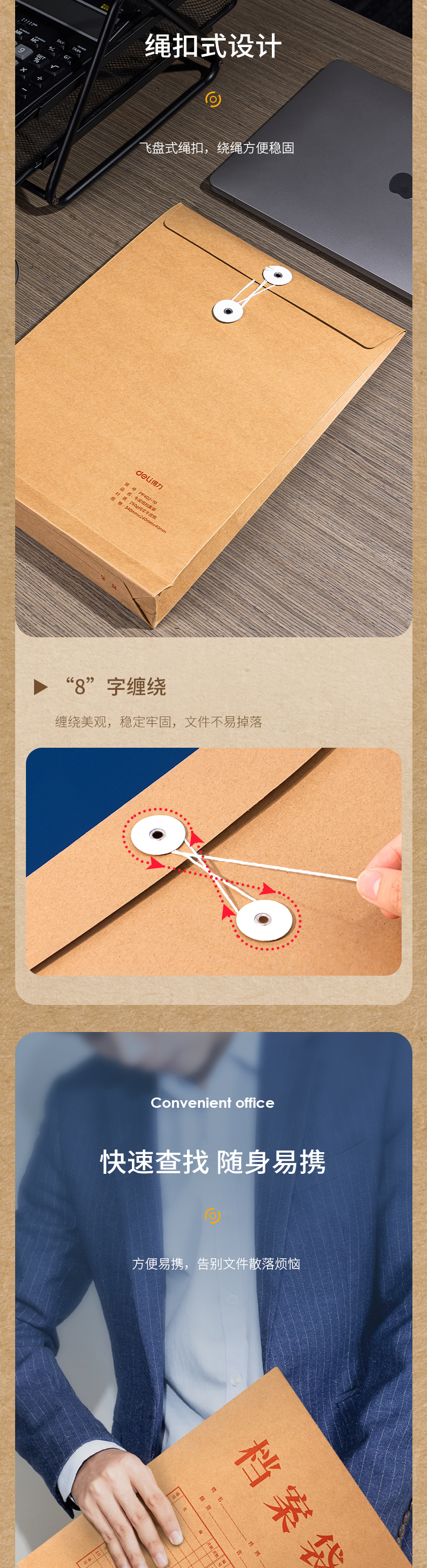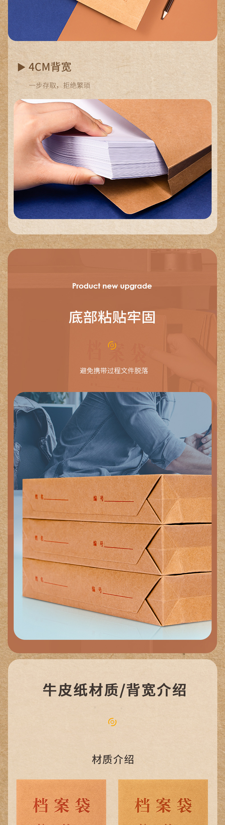 델리 PP402 크래프트 종이 파일 가방 A4 종이 파일 가방 정보 가방 두꺼운 대용량 저장 가방 4cm