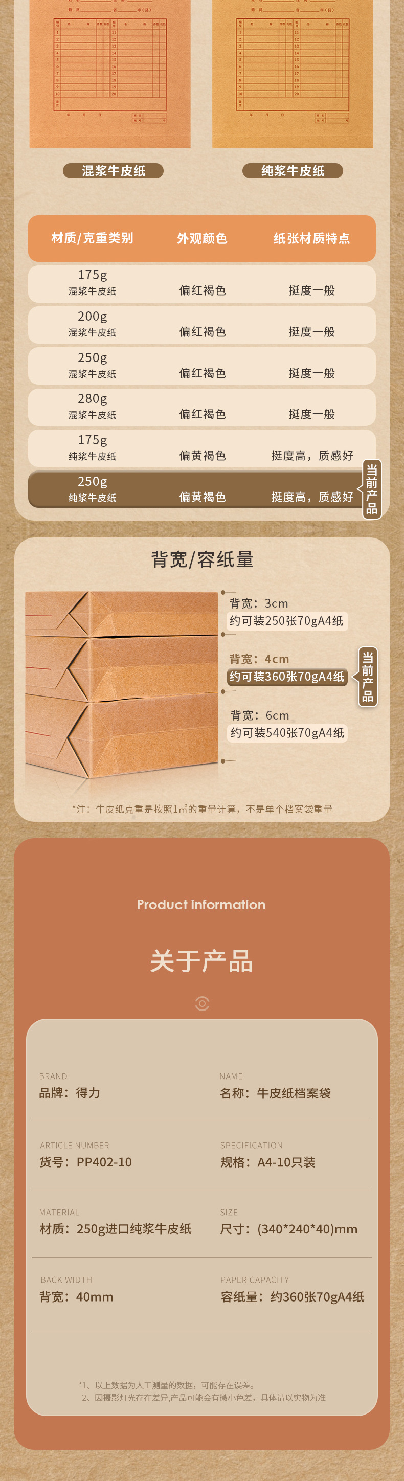 델리 PP402 크래프트 종이 파일 가방 A4 종이 파일 가방 정보 가방 두꺼운 대용량 저장 가방 4cm스토어 가기