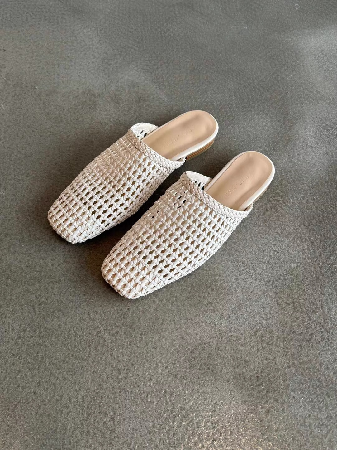 짠 할로우 토 뮬러 하프 슬리퍼 여성 여름 아우터웨어 2025 새로운 프랑스 스타일 플랫 올 매치 게으른 샌들스토어 가기
