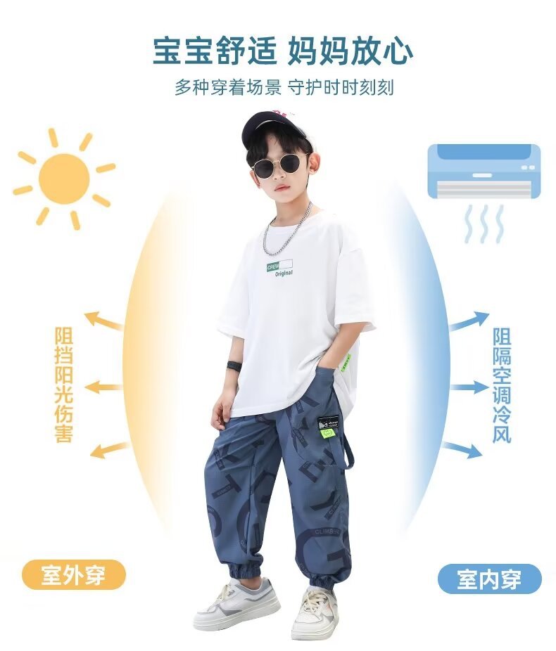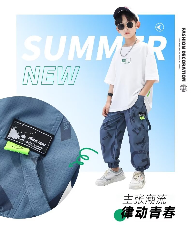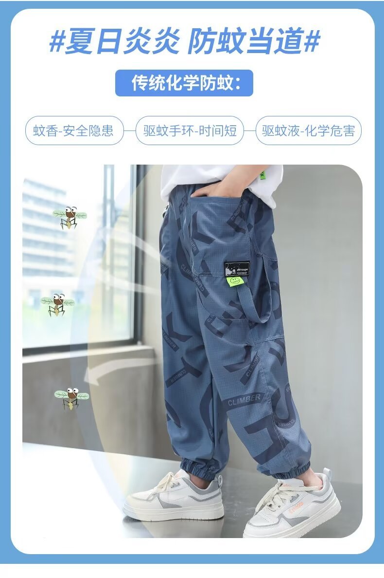 남학생 바지 여름 얇은 새 유행 어린이 여름 아이스 실크 빠른 건조 방지 모기 바지 남자 야외 작업복 스포츠 바지스토어 가기