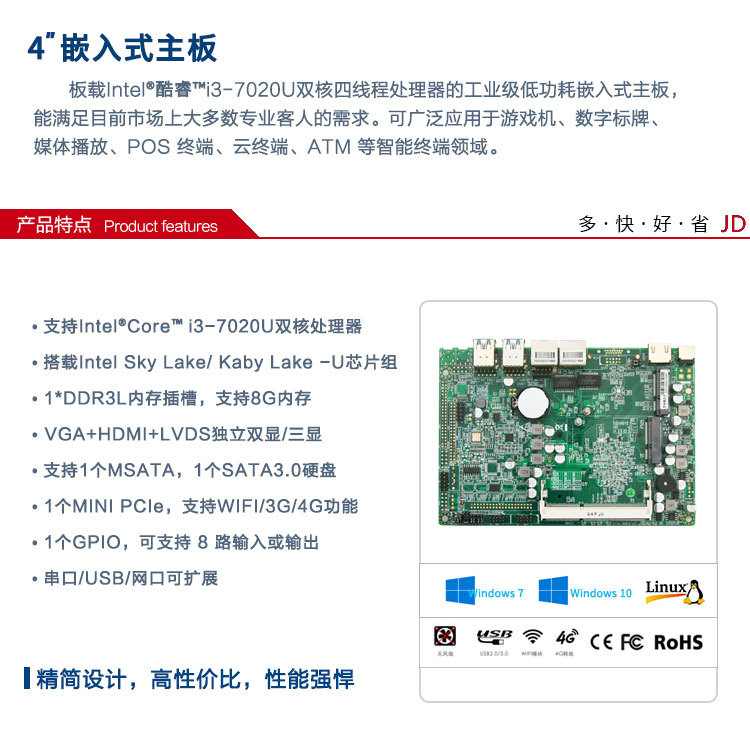 Konghui EP4380 미니 저전력 산업용 제어 마더보드 소프트 라우팅 비주얼 검사 4 네트워크 포트 통합 CPU 신규스토어 가기