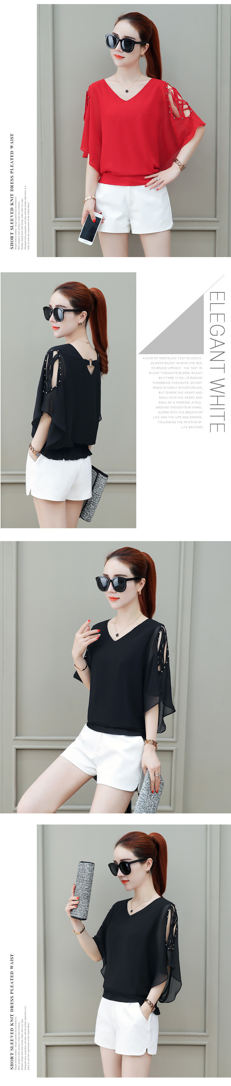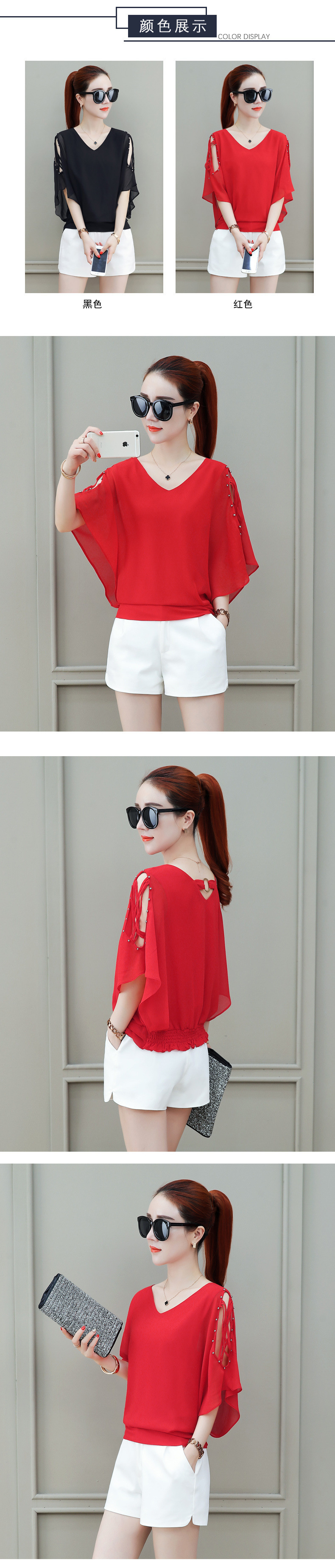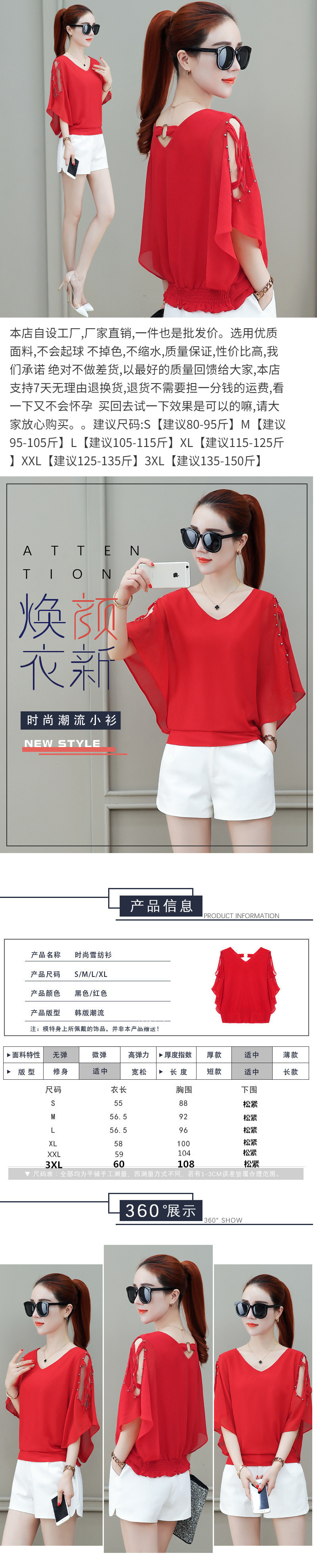 짧은 소매 쉬폰 셔츠 여성의 2022 새로운 패션 벨리 커버링 외국 스타일 작은 셔츠 더블 V-넥 박쥐 셔츠 여성용 셔츠스토어 가기