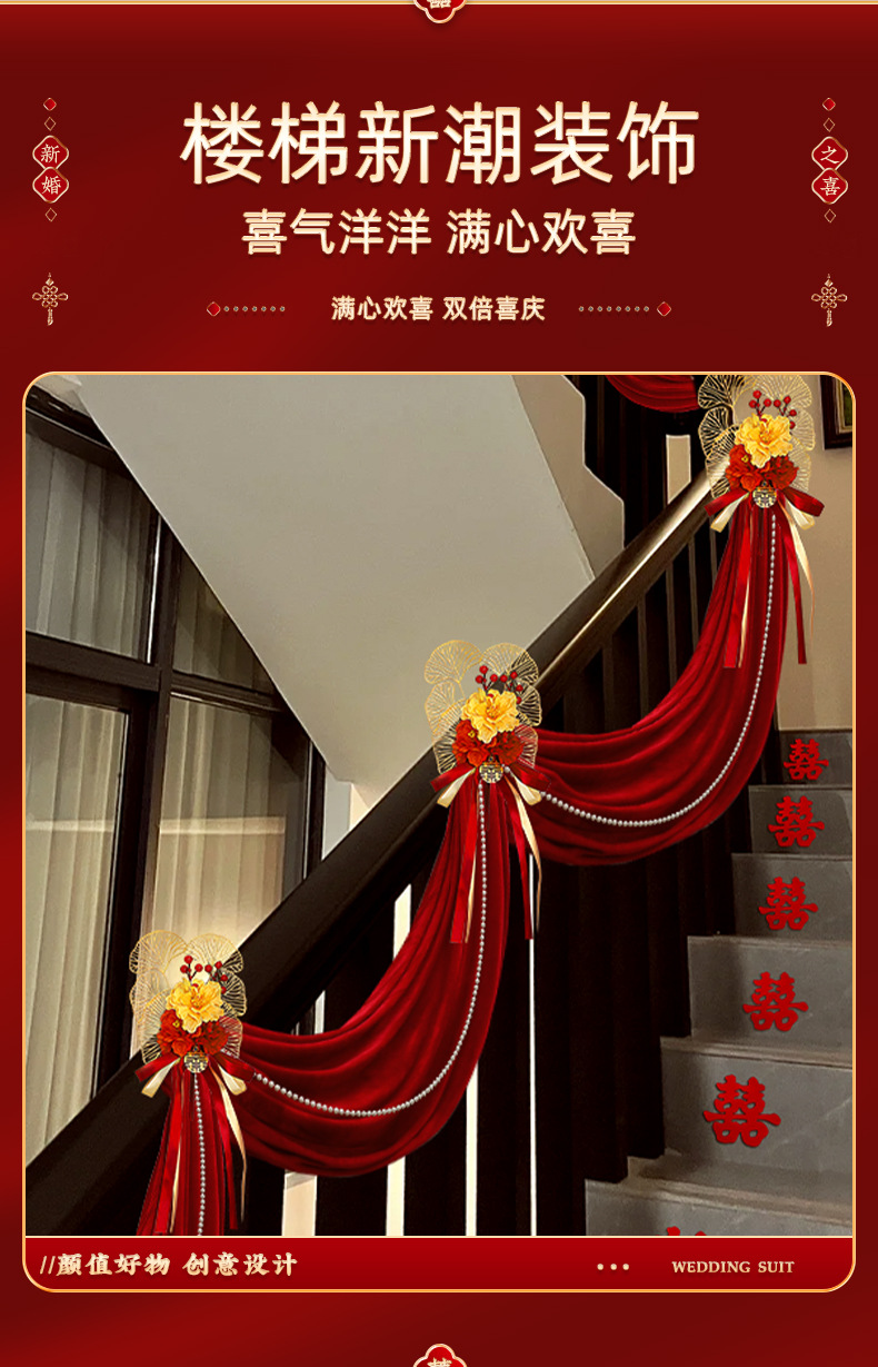 웨딩 계단 난간 장식 웨딩 룸 레이아웃 세트 약혼 남성 실내 웨딩 용품 웨딩 라떼 아트스토어 가기