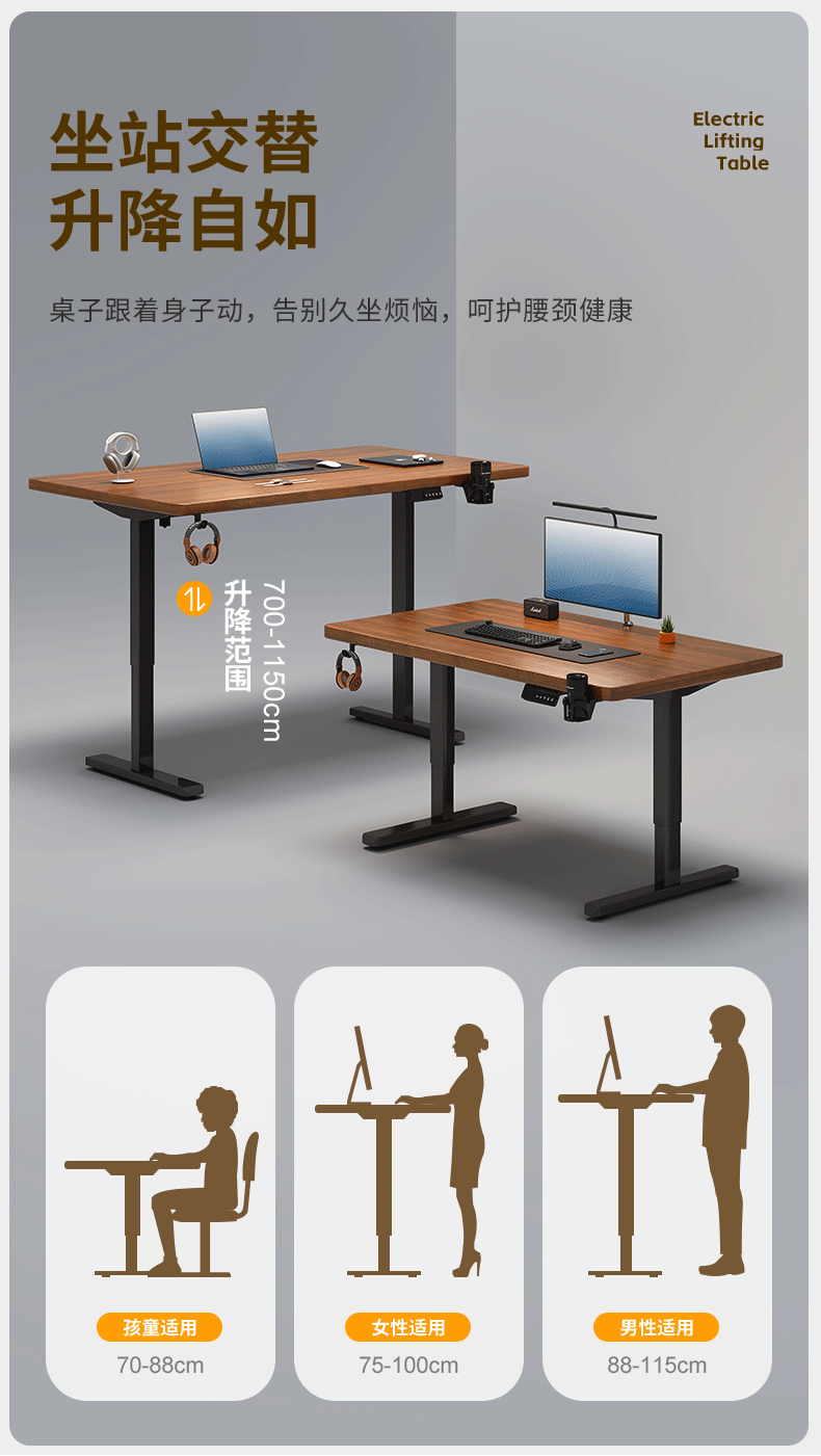 智能电动升降桌支架实木电脑桌家用书桌学习桌办公桌子简易工作台
