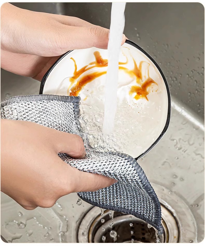 더블 레이어 스틸 볼 접시 천 주방 청소 특수 두꺼운 금속 와이어 비 오일 브러시 팬 접시 수건