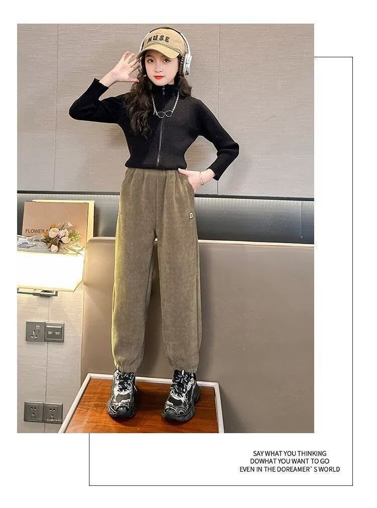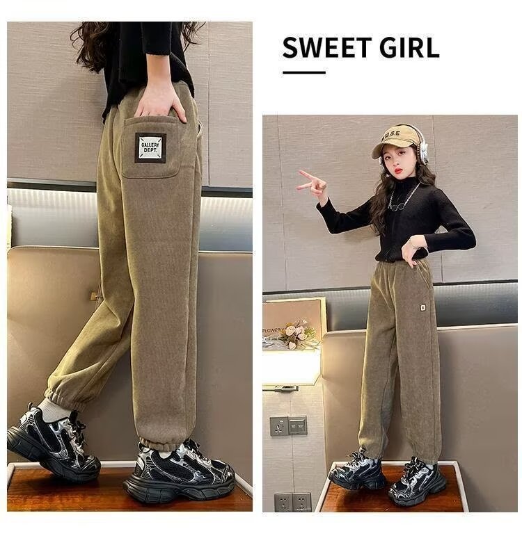 소녀의 봄과 가을 코듀로이 바지 2024 어린이 가을 캐주얼 빅 보이 소녀의 서양식 다리 스포츠 바지스토어 가기