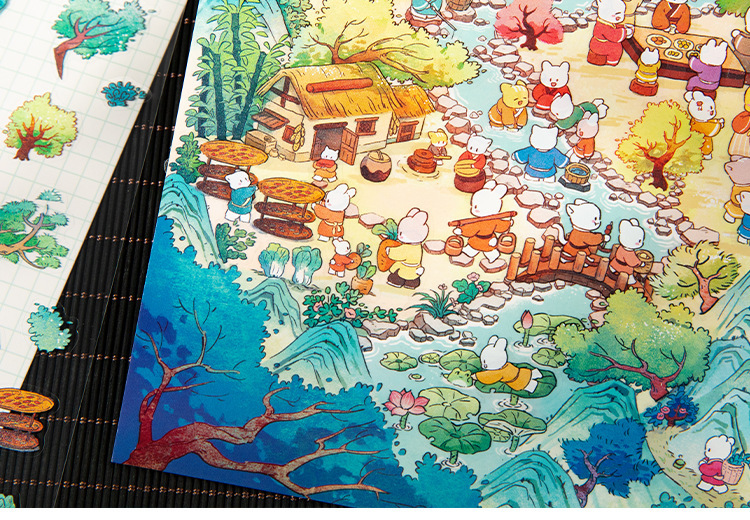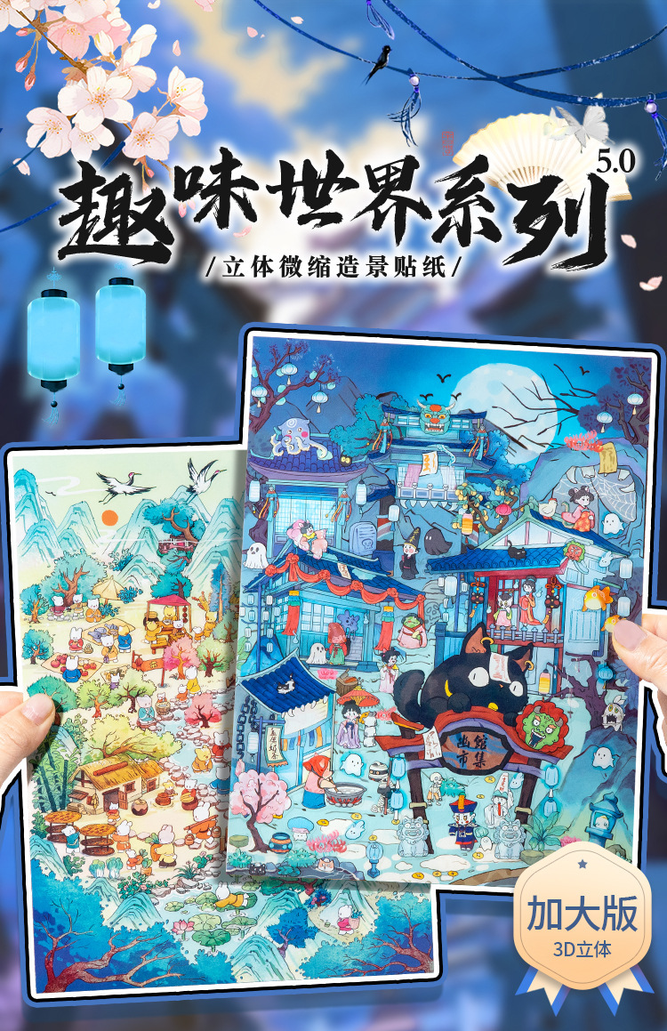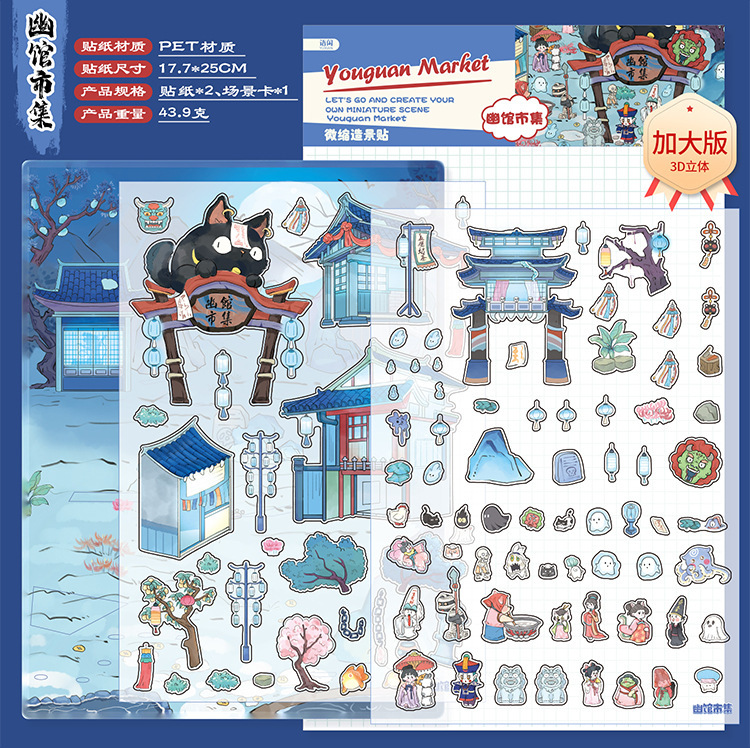 무료 언어 애완 동물 3 차원 소형 대형 조경 스티커 재미 세계 5.0 창조적 인 3D 스택 오두막 어린이 스티커스토어 가기