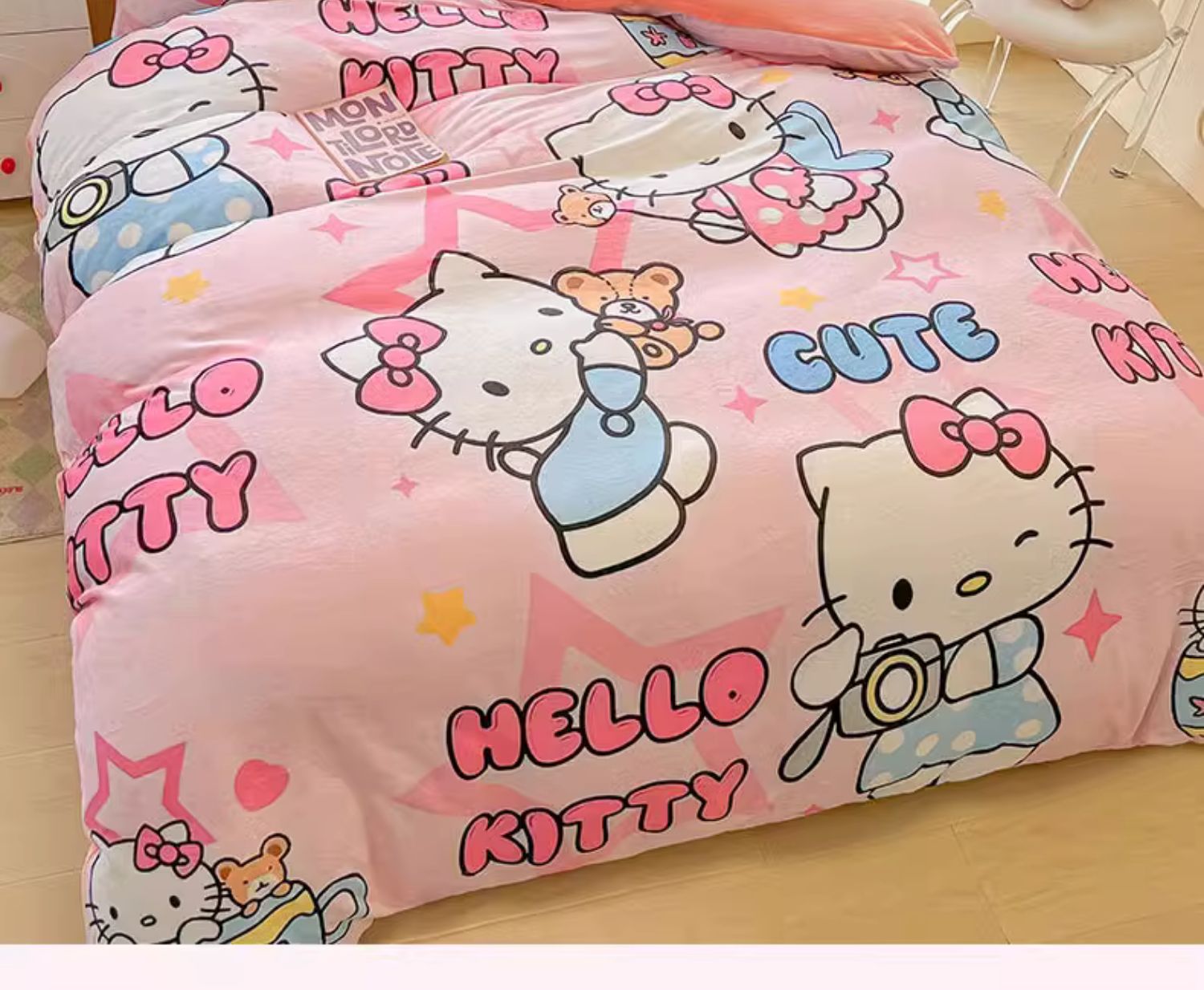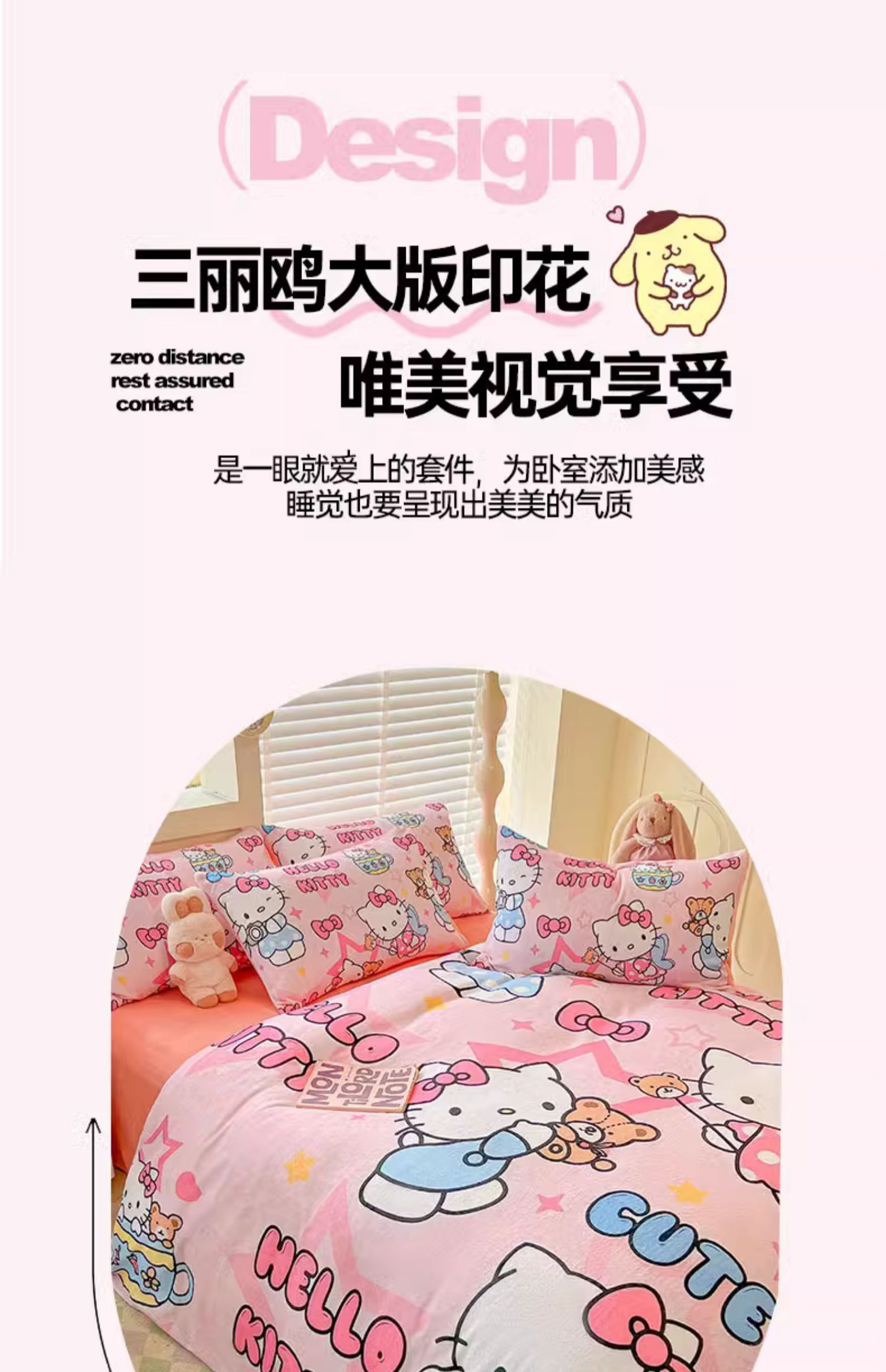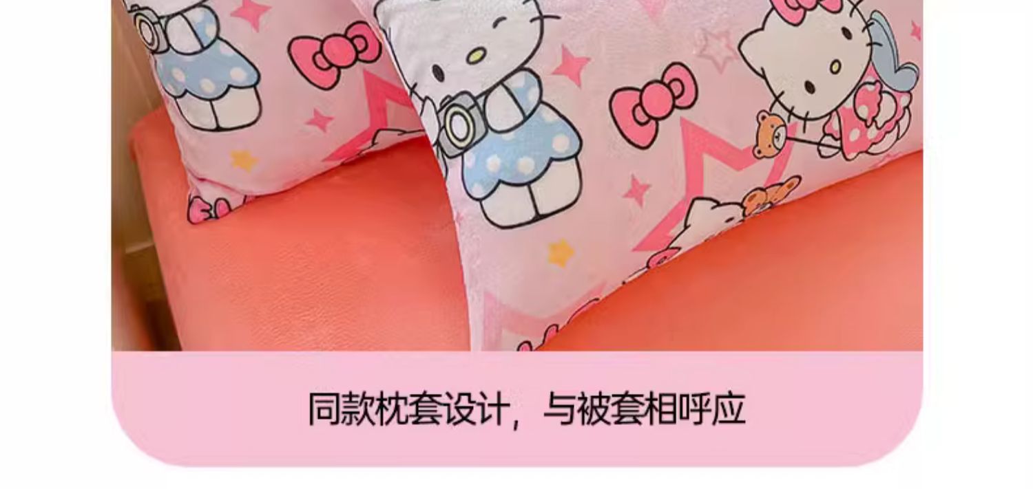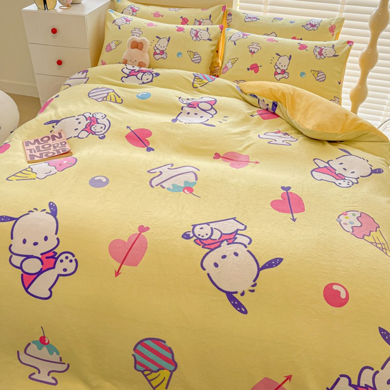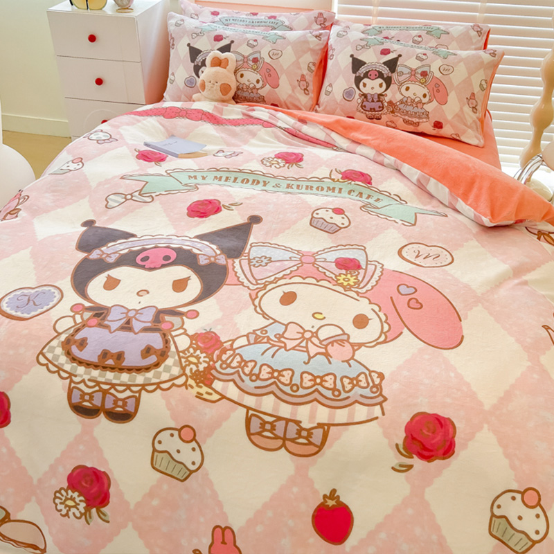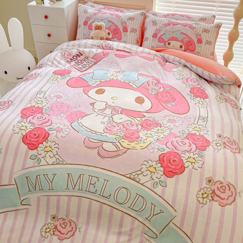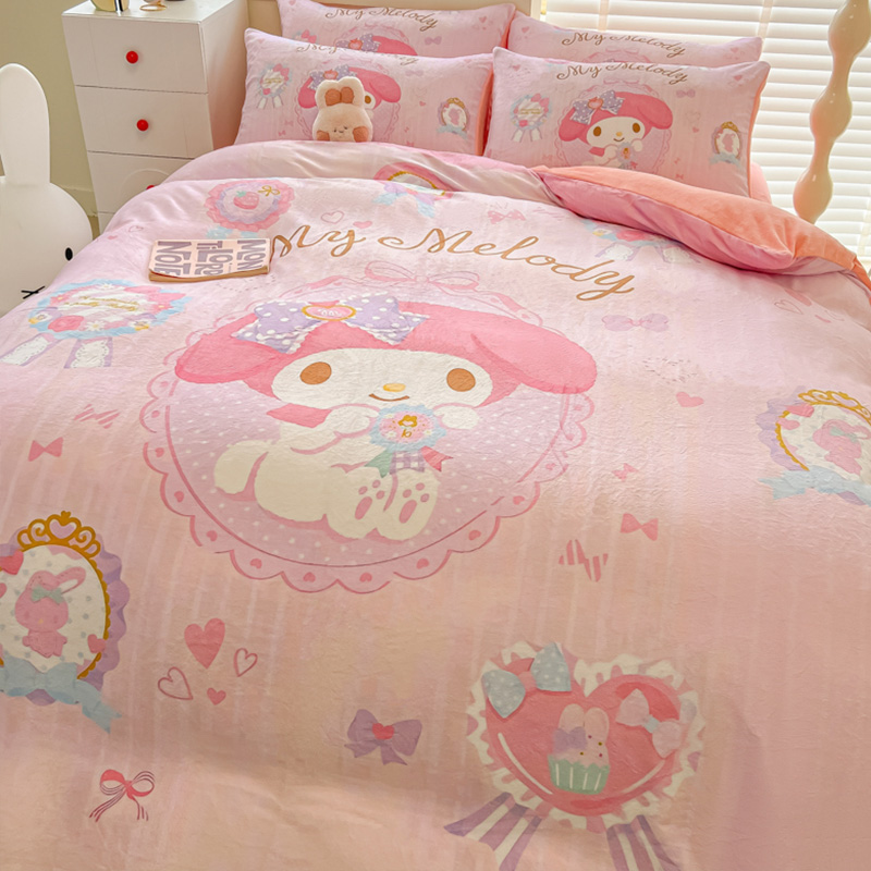 Sanrio 양면 두꺼운 우유 벨벳 침대 4피스 겨울 만화 어린이 이불 커버 침대 싱글 플러스 벨벳 침구스토어 가기