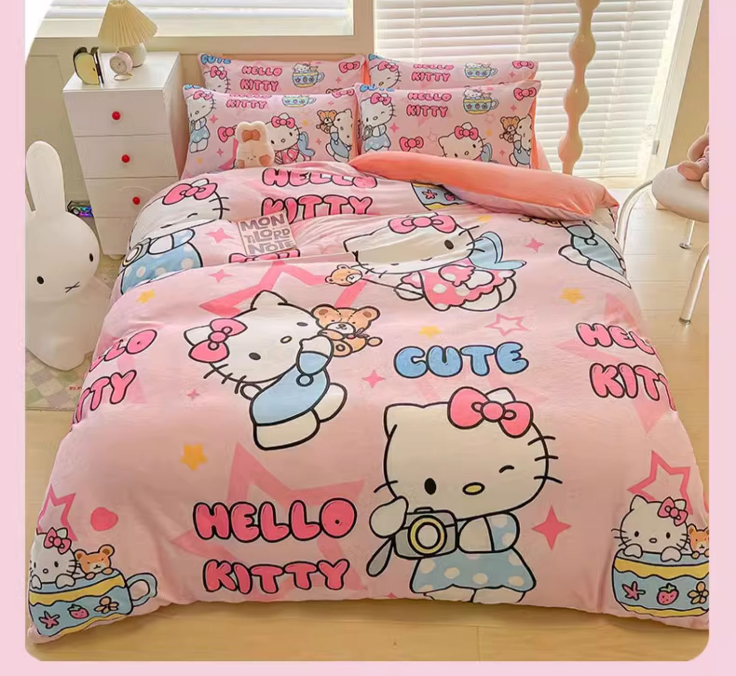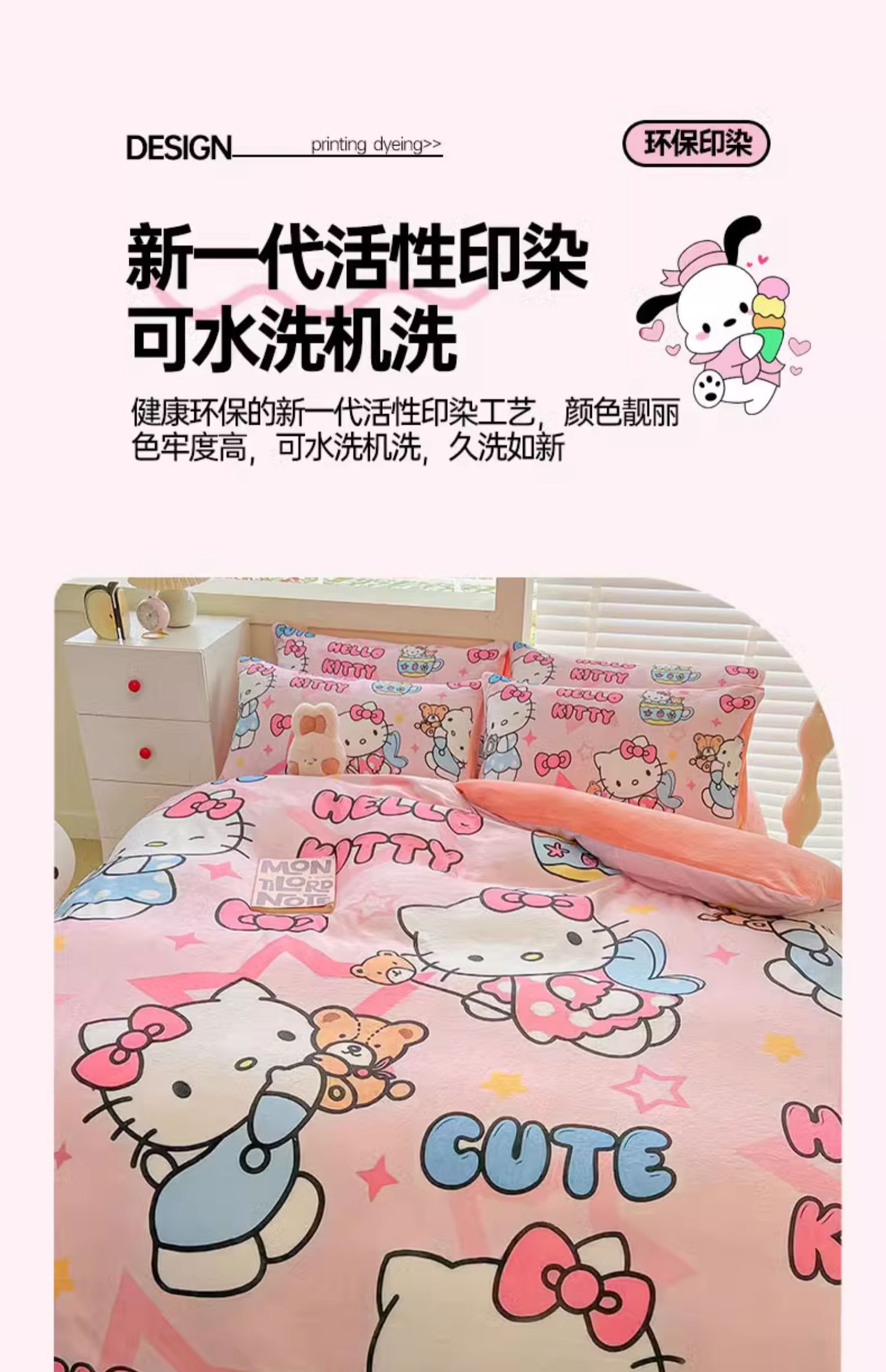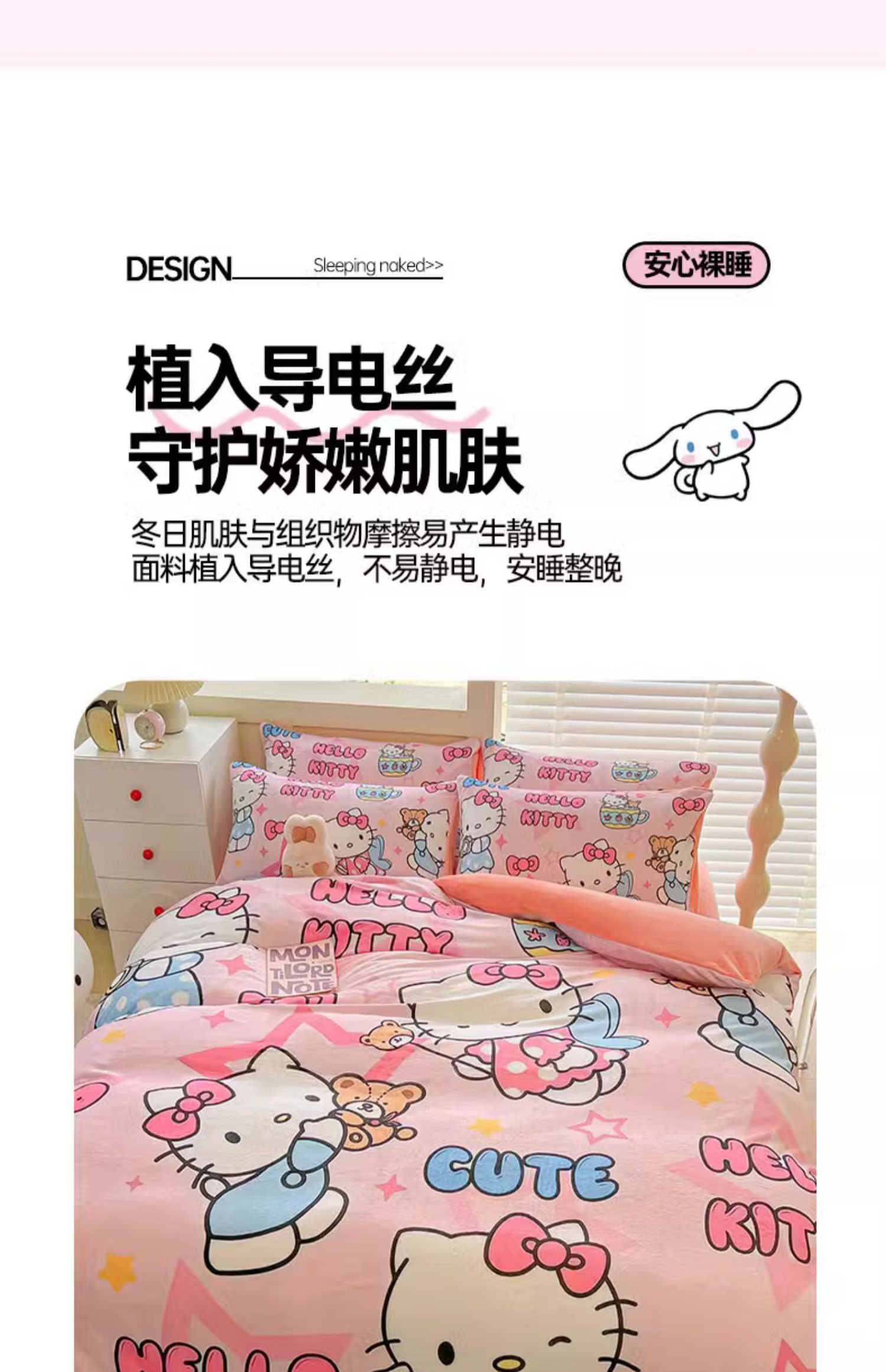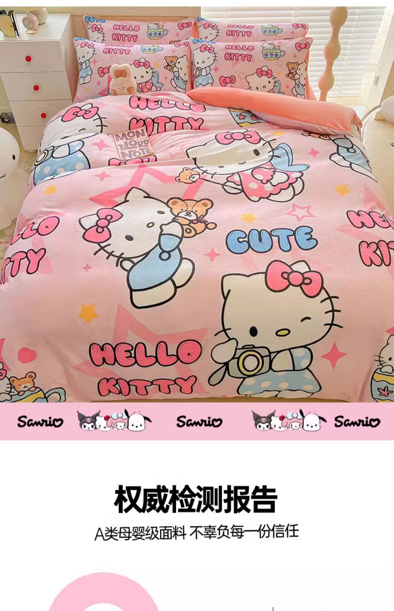 Sanrio 양면 두꺼운 우유 벨벳 침대 4피스 겨울 만화 어린이 이불 커버 침대 싱글 플러스 벨벳 침구스토어 가기