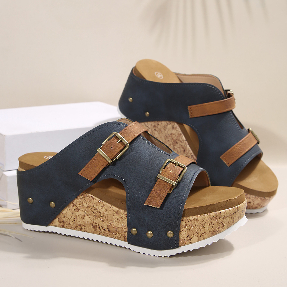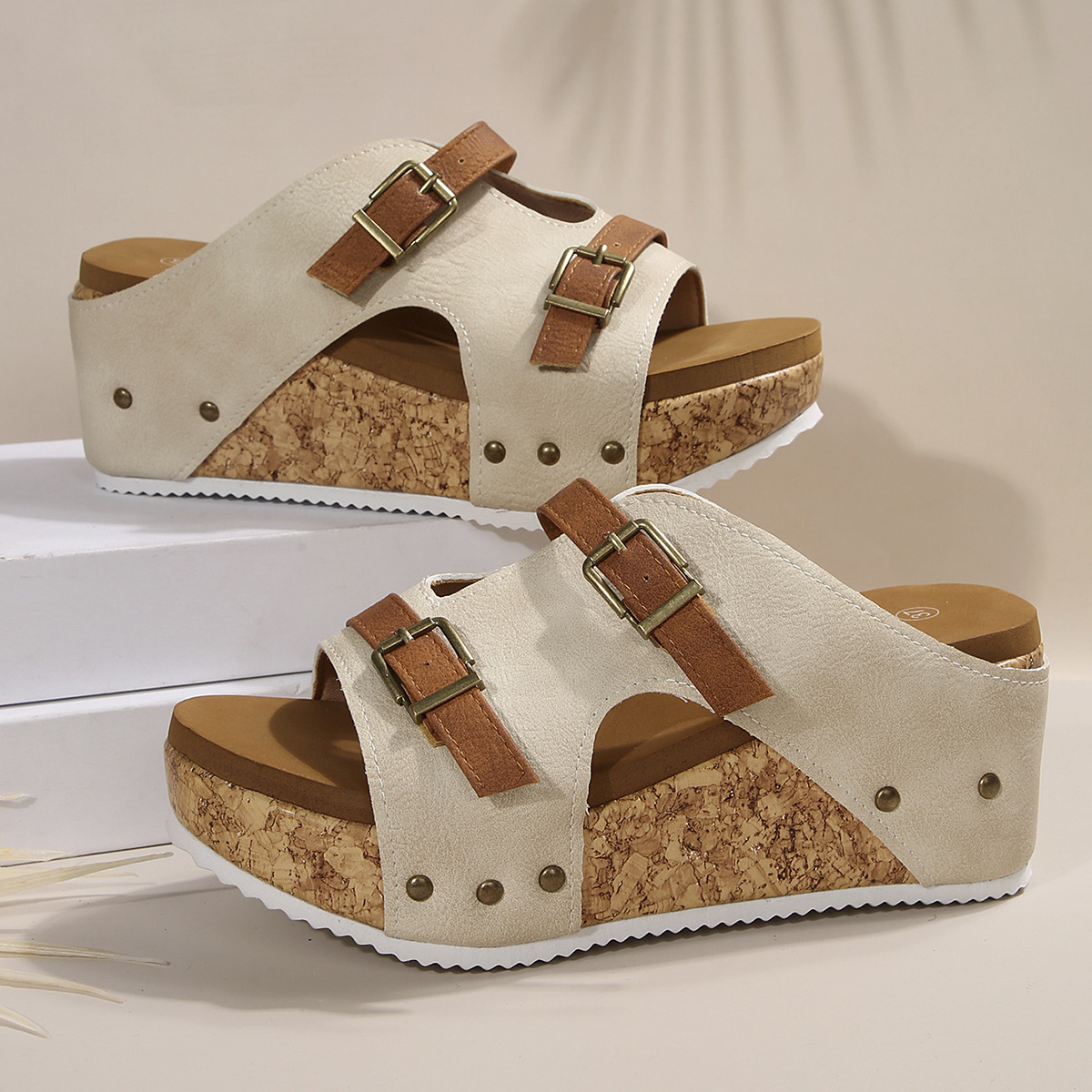 2025 새로운 국제 스테이션 슬리퍼 여성 여름 코르크 슬리퍼 여성 대형 게으른 슬리퍼 하프 슬리퍼 코르크 샌들