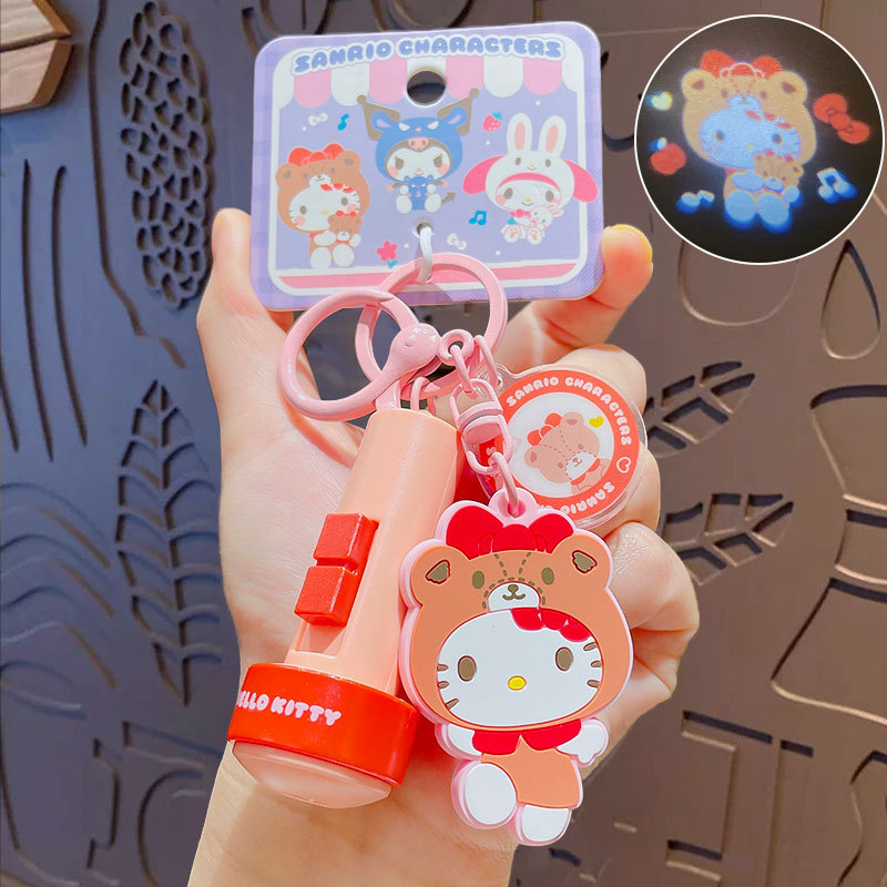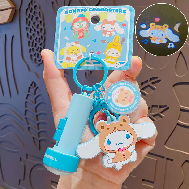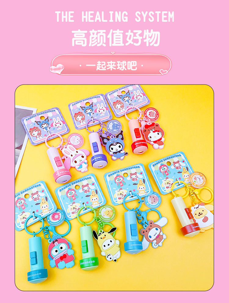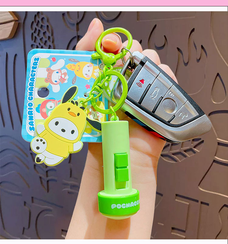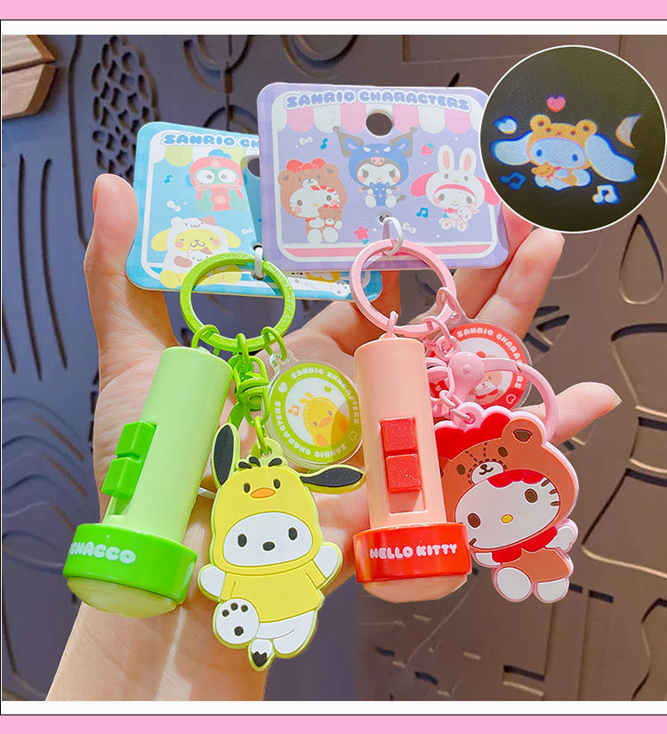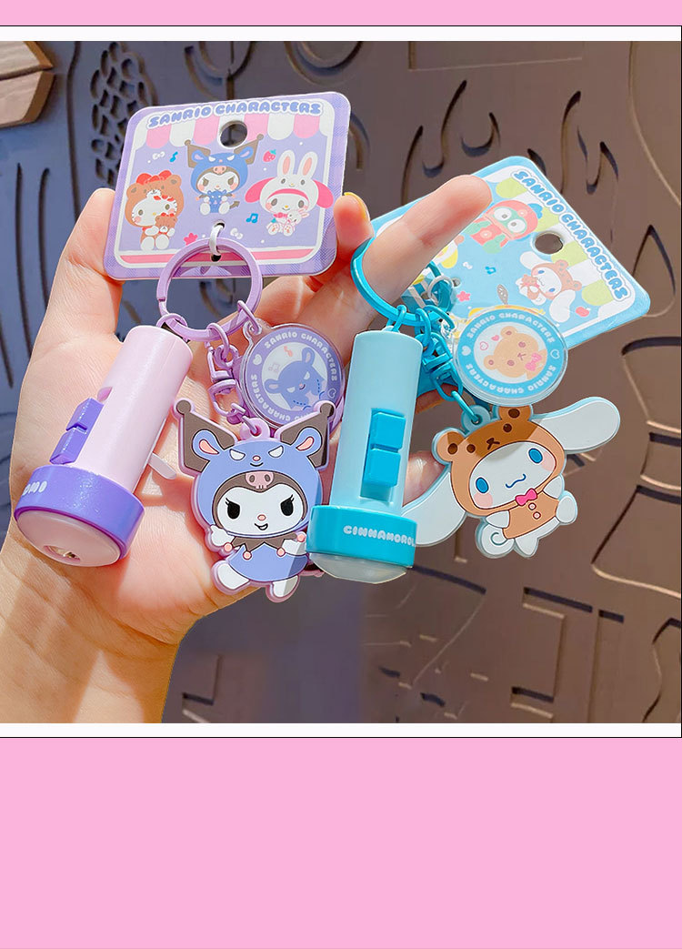 정품 만화 Sanrio 손전등 키 체인 인형 펜던트 귀여운 커플 학교 가방 열쇠 고리 펜던트 선물스토어 가기