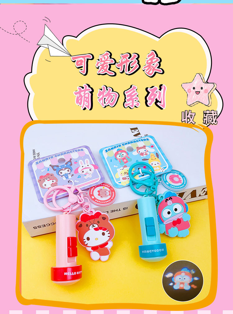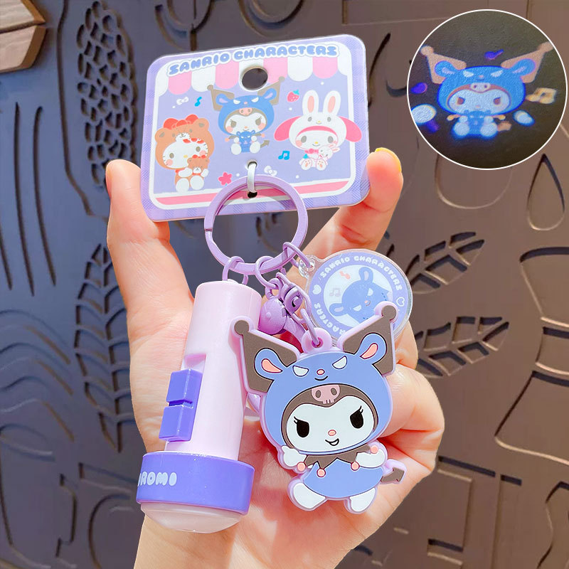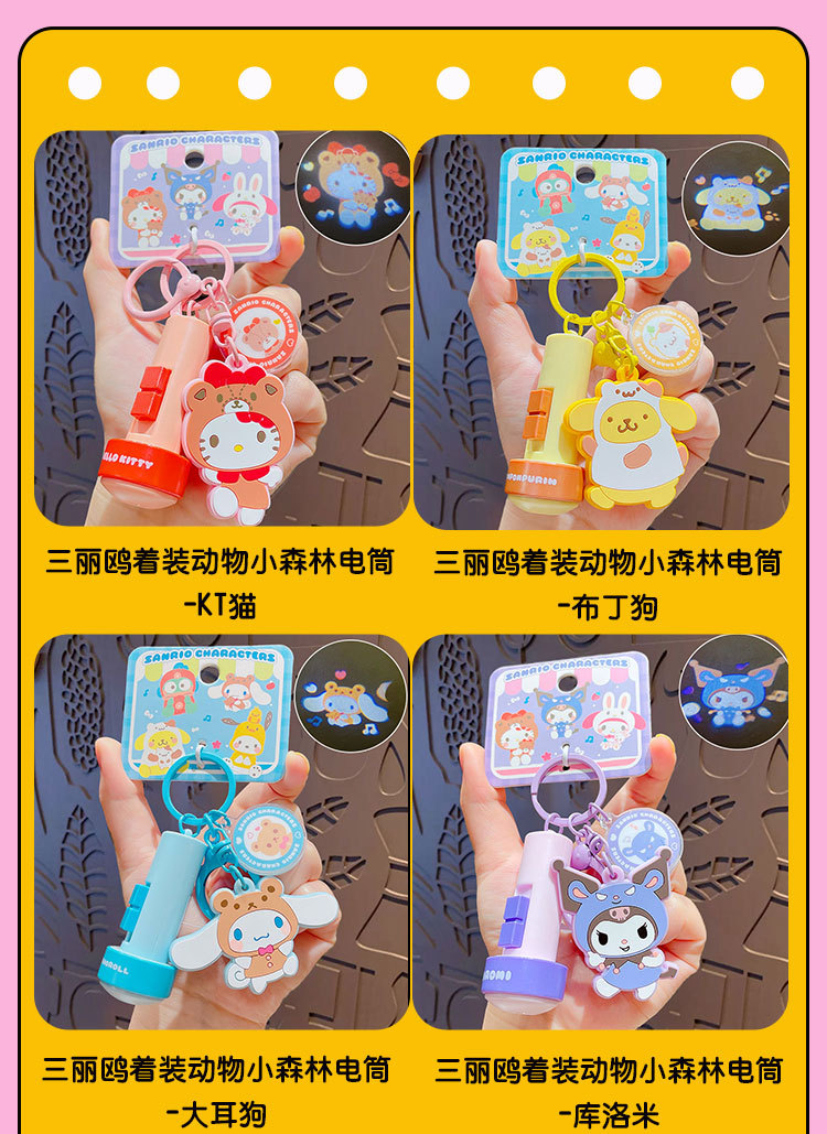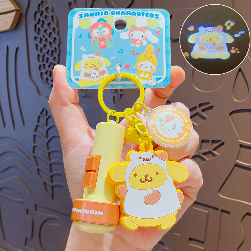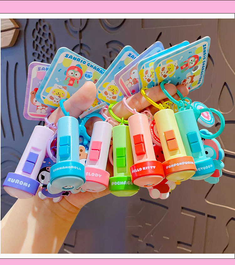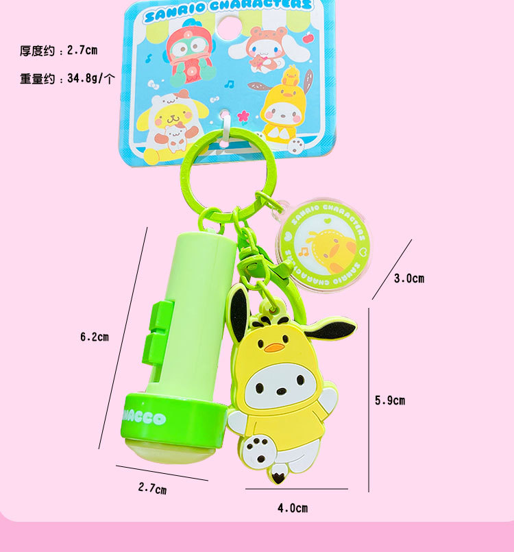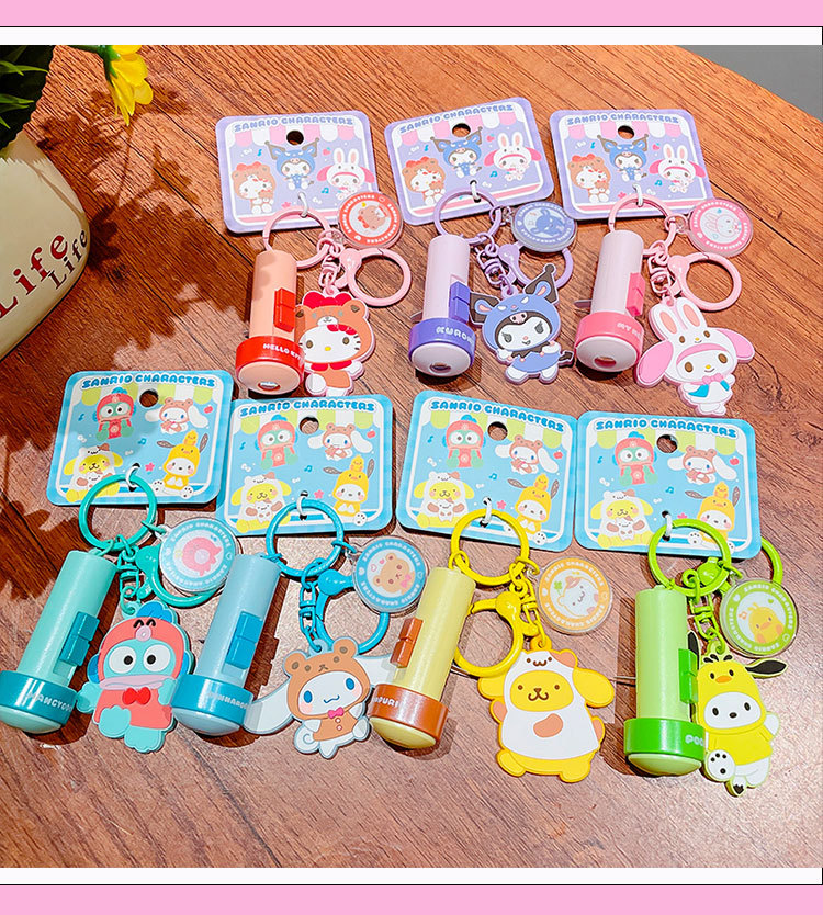 정품 만화 Sanrio 손전등 키 체인 인형 펜던트 귀여운 커플 학교 가방 열쇠 고리 펜던트 선물스토어 가기