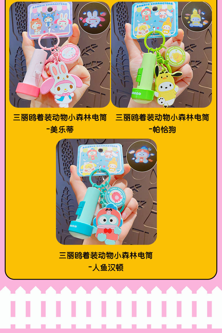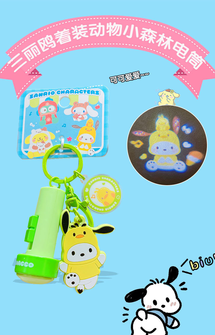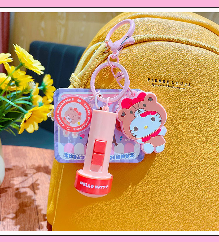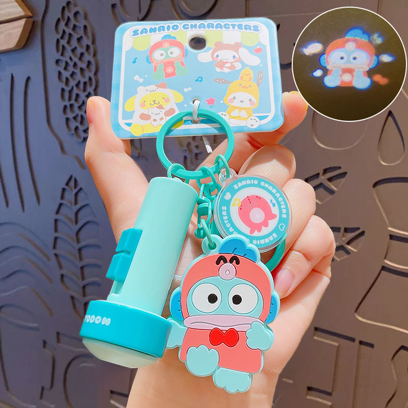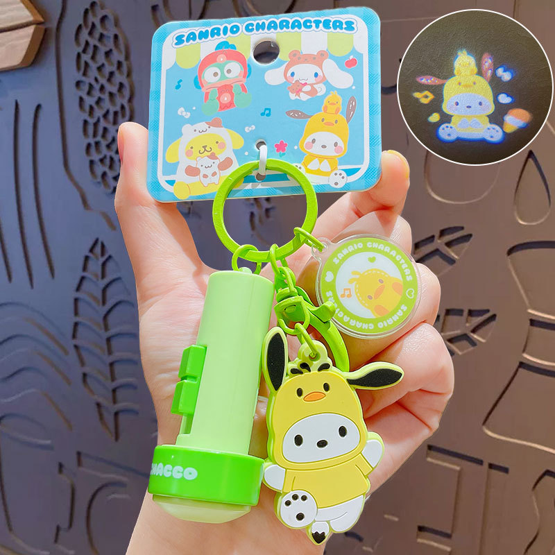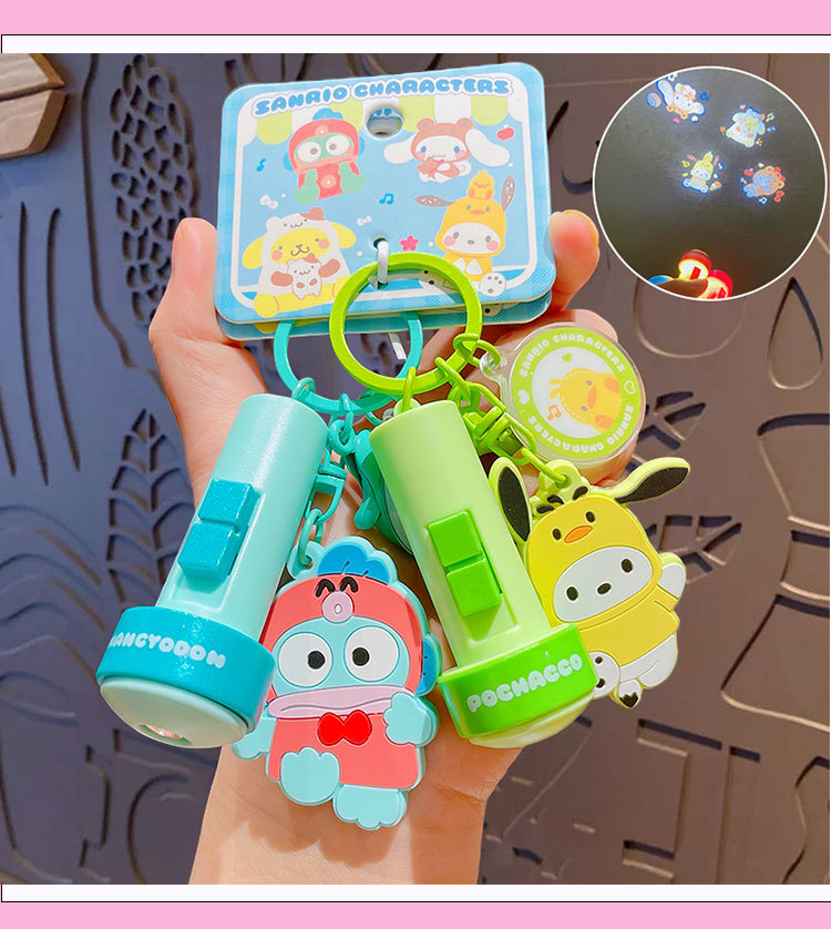 정품 만화 Sanrio 손전등 키 체인 인형 펜던트 귀여운 커플 학교 가방 열쇠 고리 펜던트 선물스토어 가기