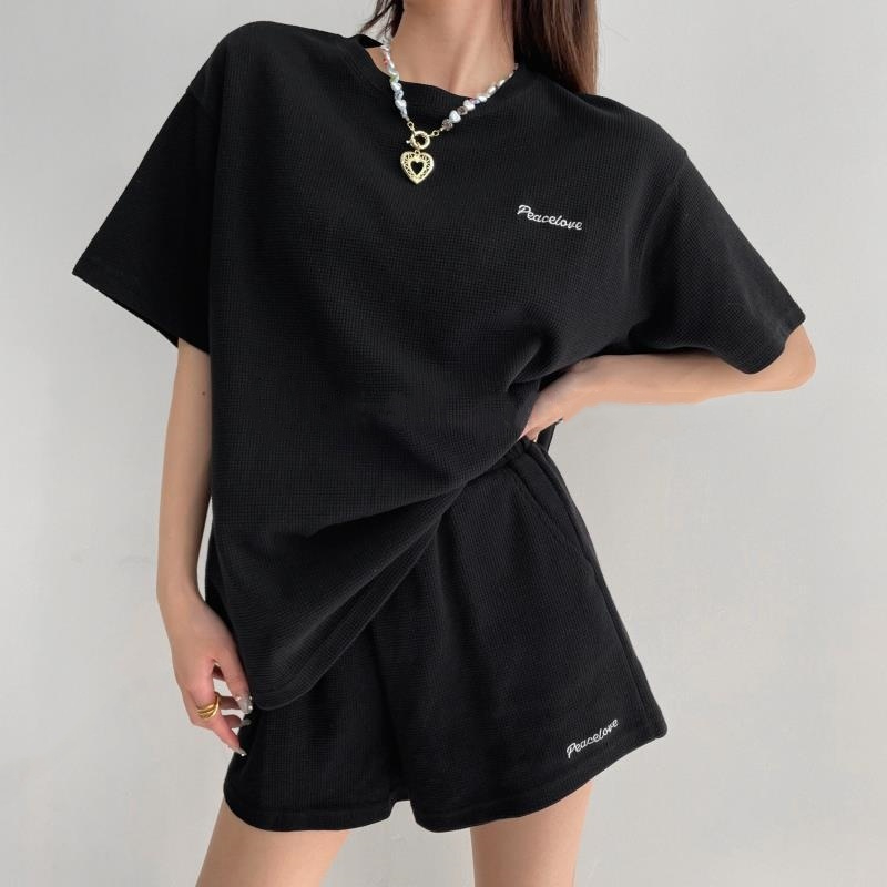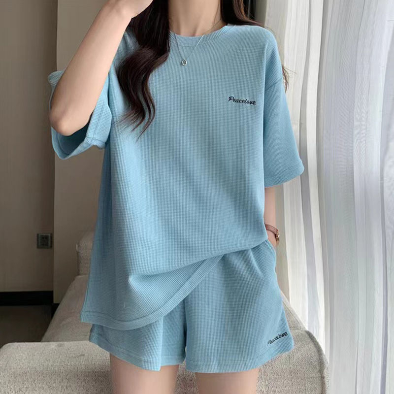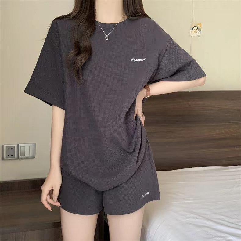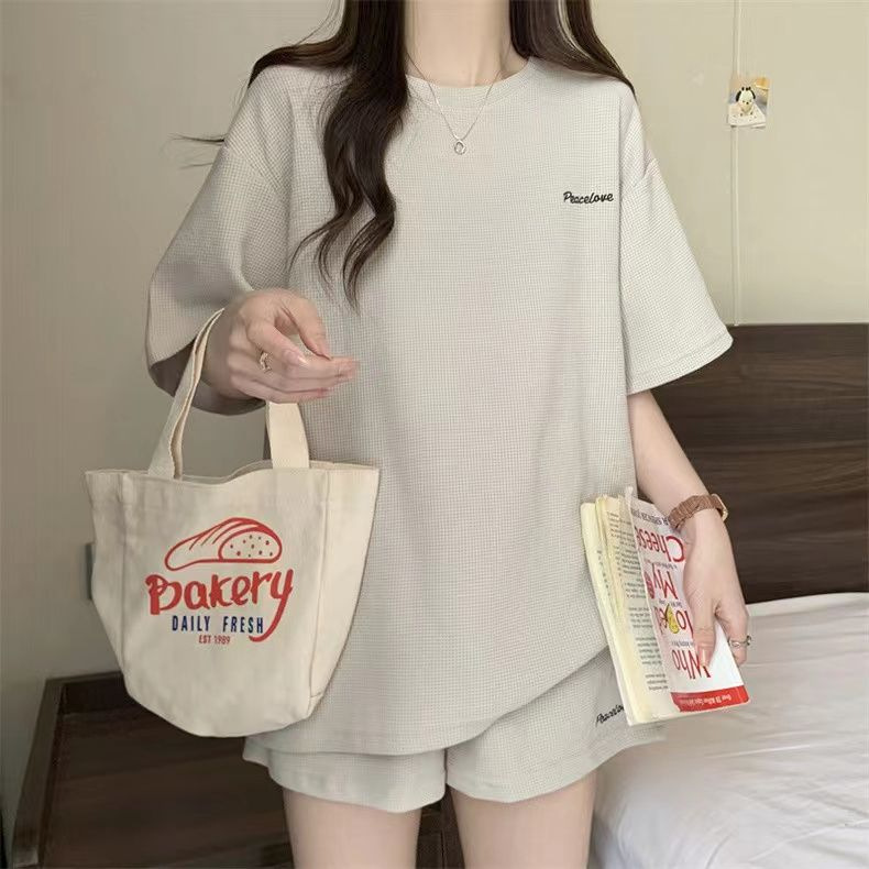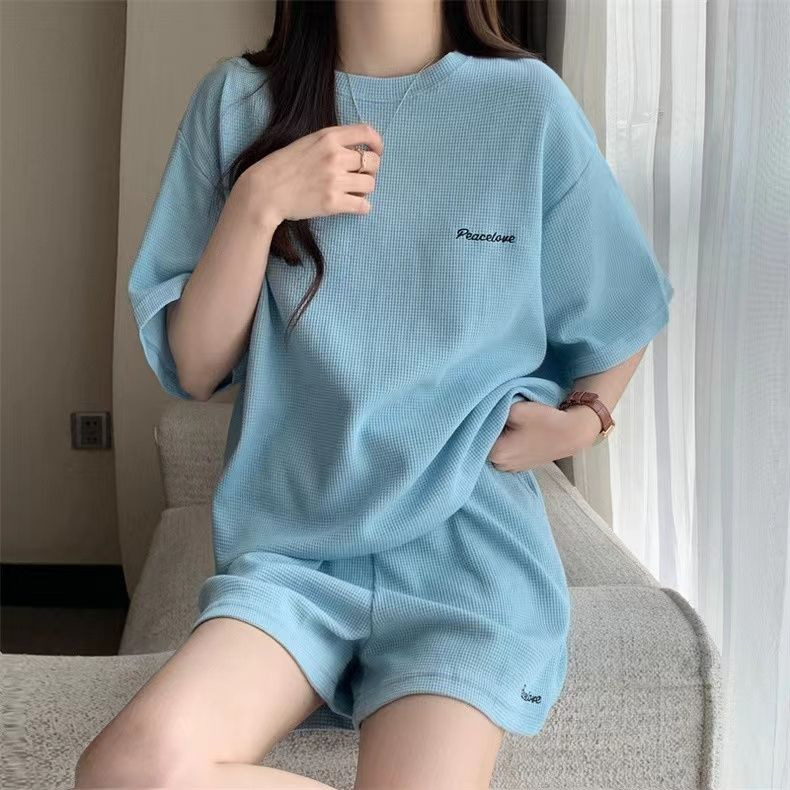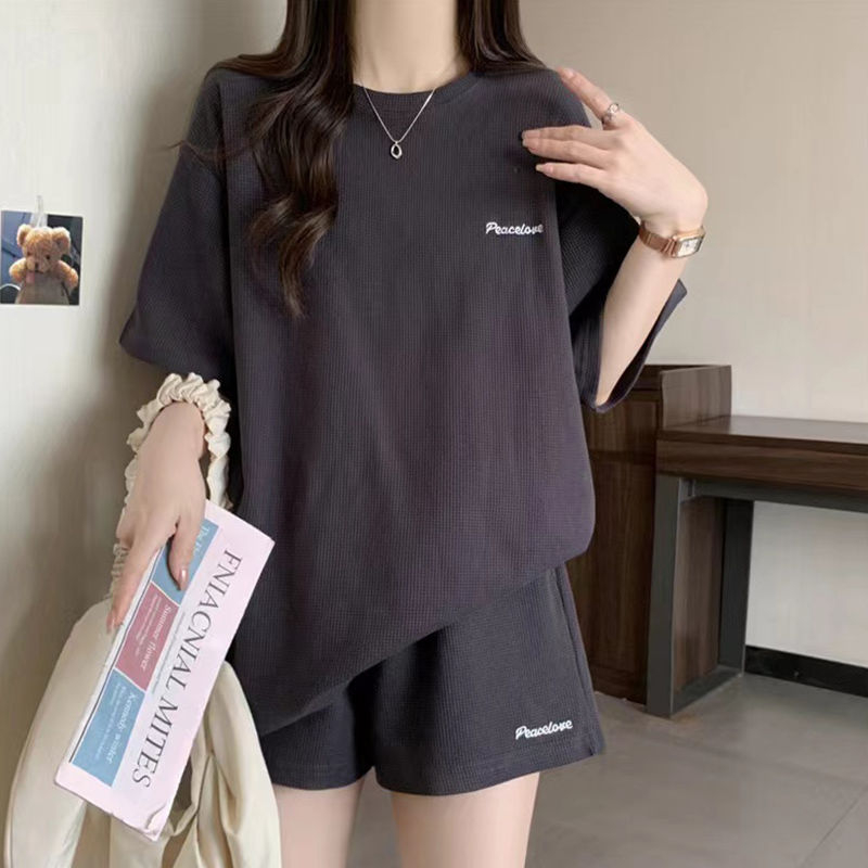 와플 운동복 세트 여자 2025 여름 한국식 느슨한 패셔너블 반팔 학생 달리기 캐주얼 투피스 세트스토어 가기