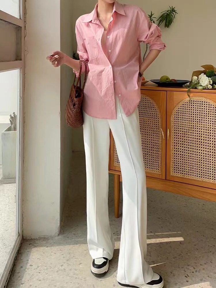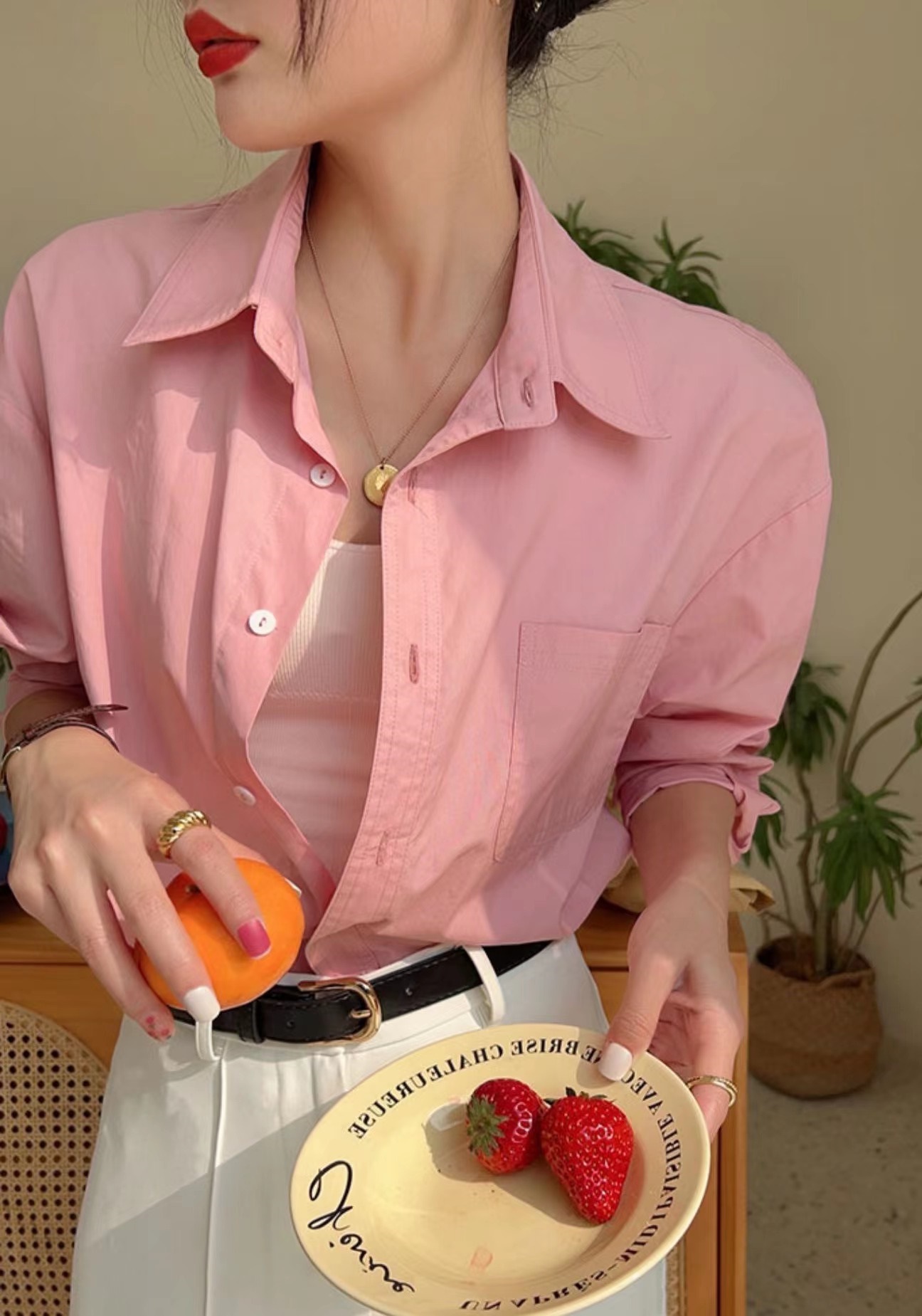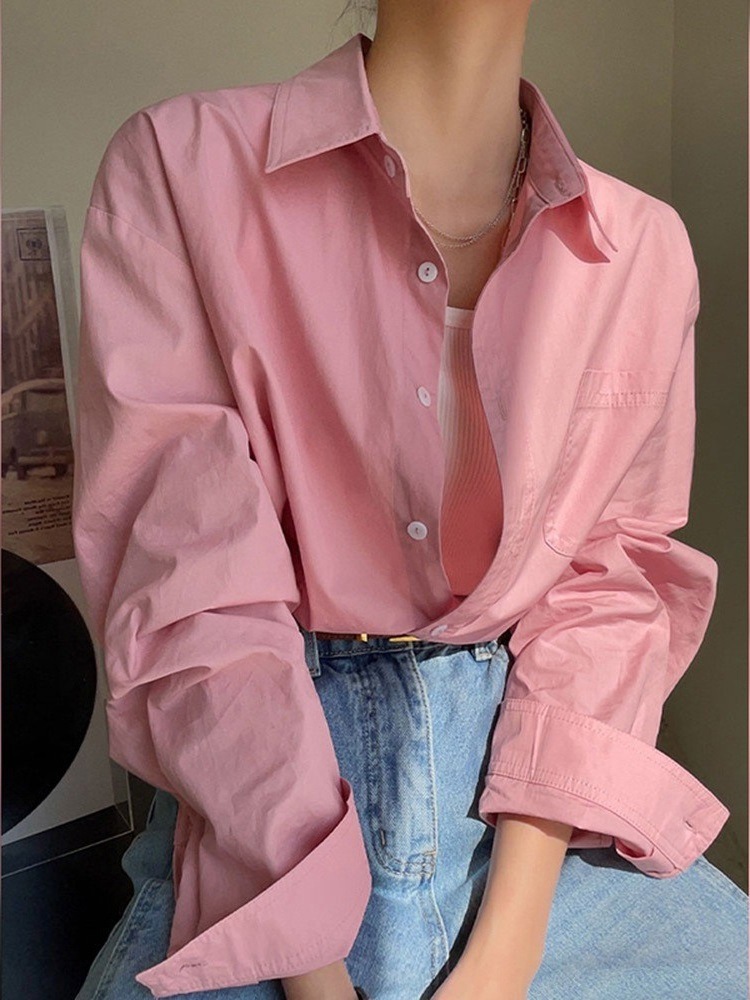 프랑스 스타일 퓨어 코튼 셔츠 여성 서양식 퓨어 코튼 봄과 가을 디자인 센스 틈새 느슨한 게으른 스타일 세련된 하이 엔드 센스 셔츠