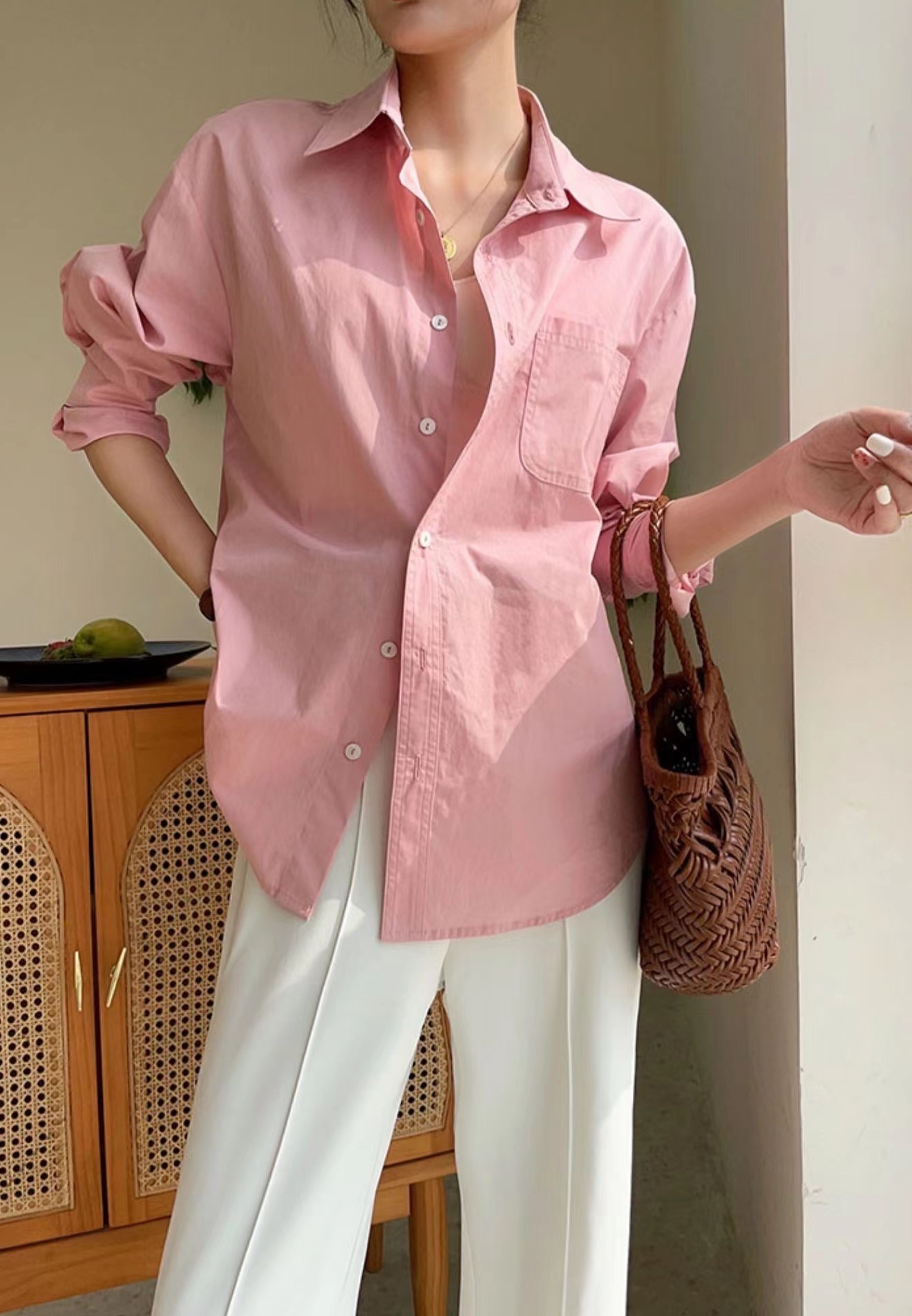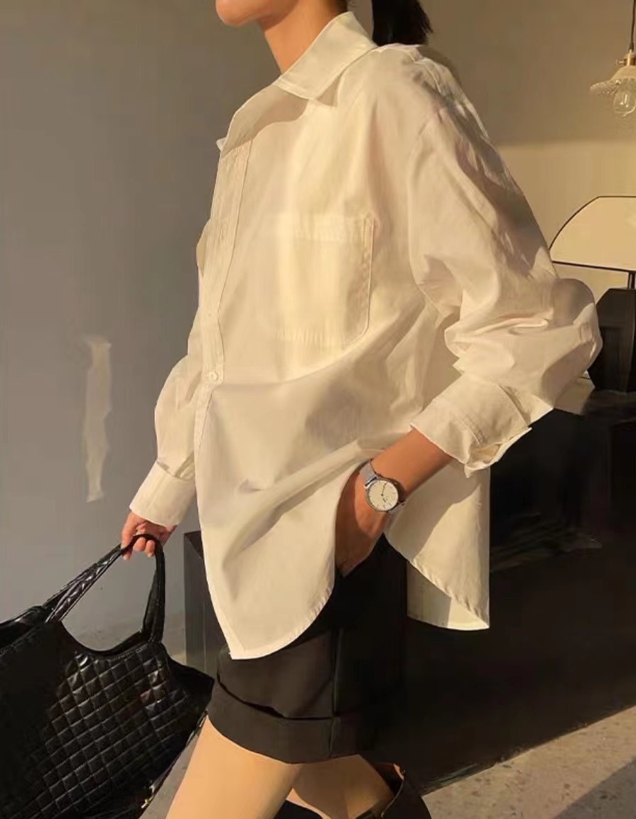 프랑스 스타일 퓨어 코튼 셔츠 여성 서양식 퓨어 코튼 봄과 가을 디자인 센스 틈새 느슨한 게으른 스타일 세련된 하이 엔드 센스 셔츠스토어 가기