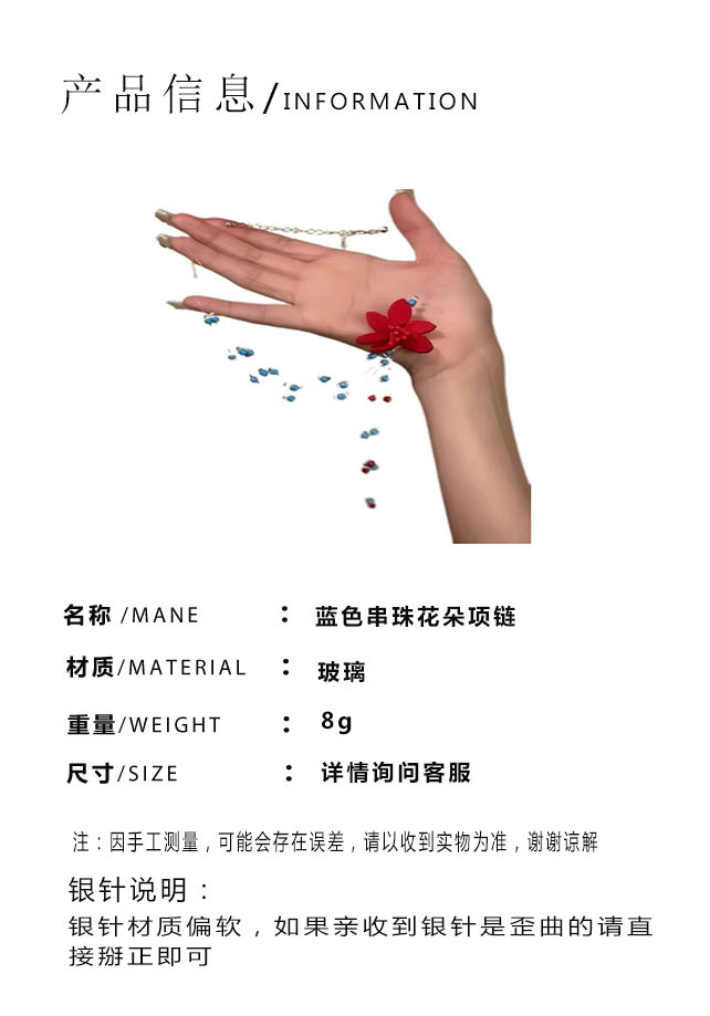 새로운 도파민 블루 구슬 꽃 목걸이 대비 높은 감각 쇄골 체인 달콤한 패션 성격 목걸이 여성스토어 가기