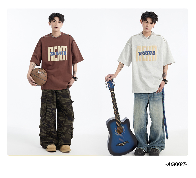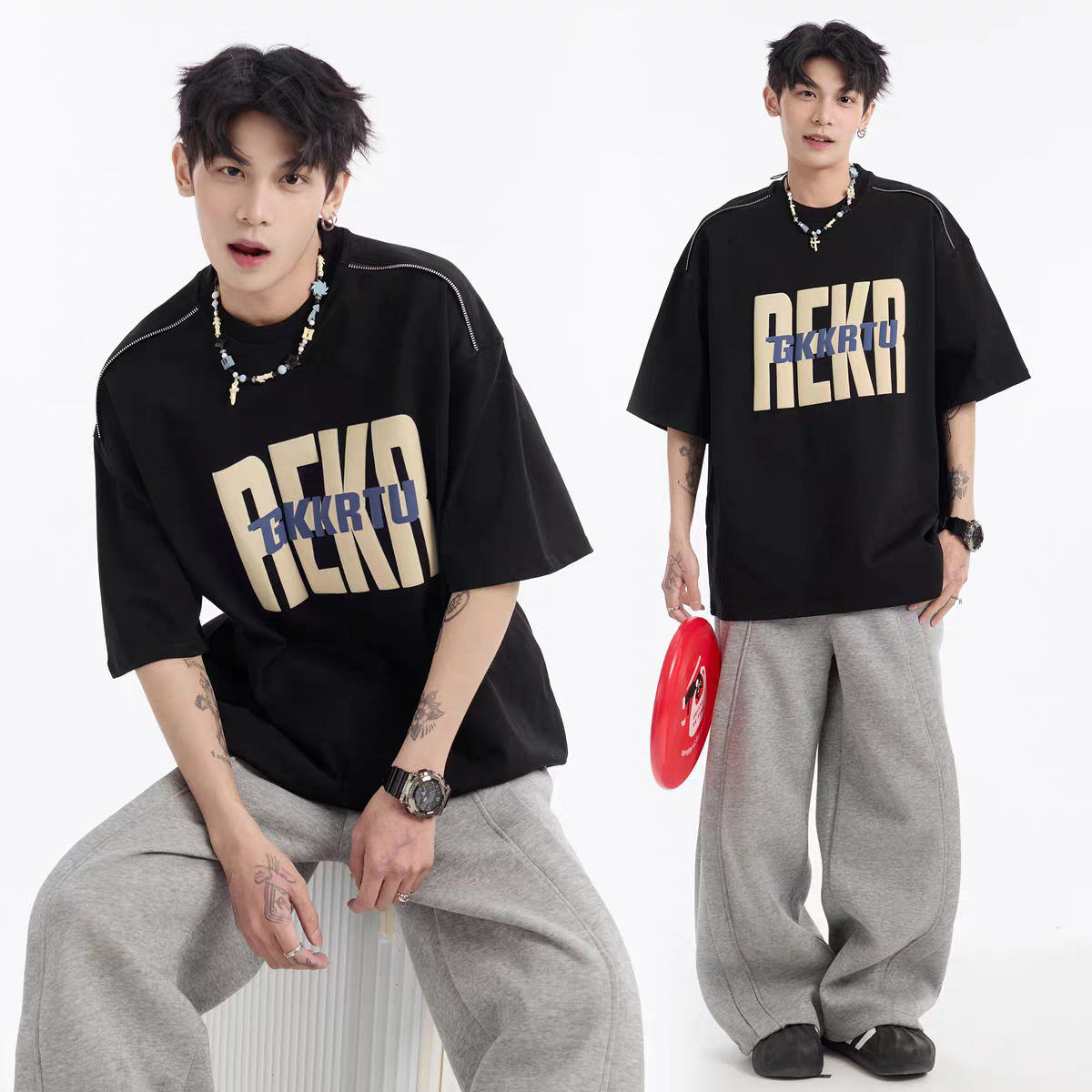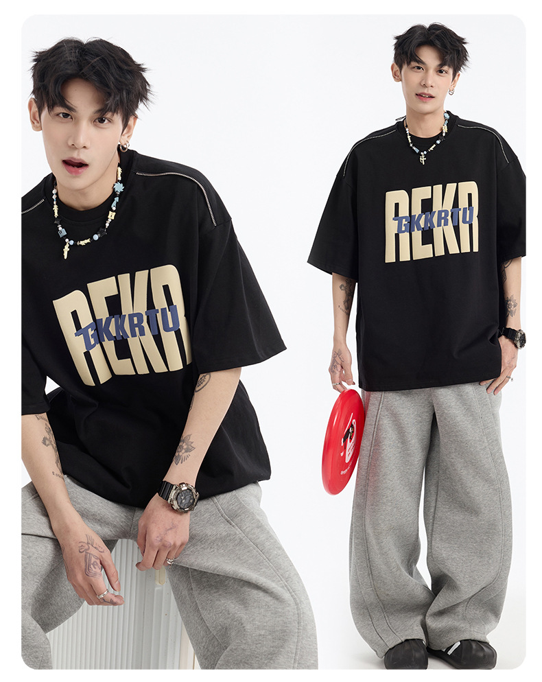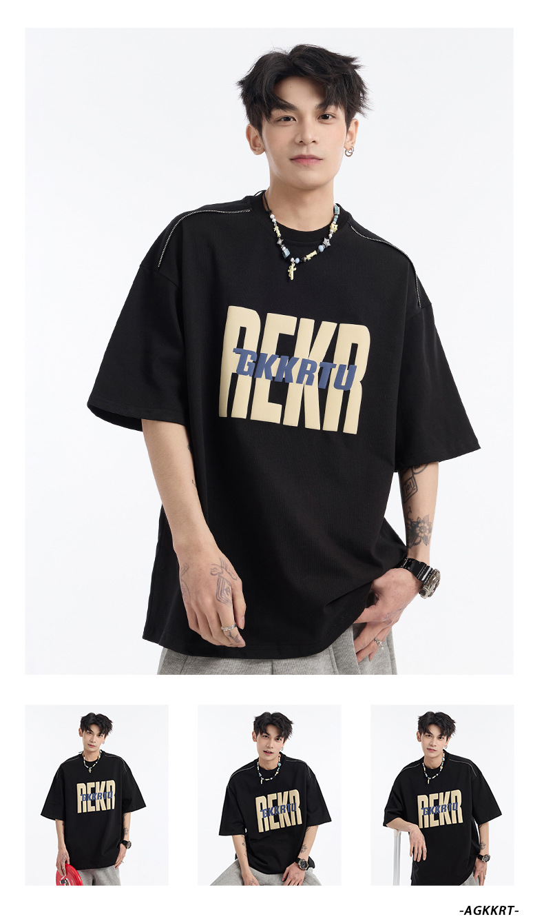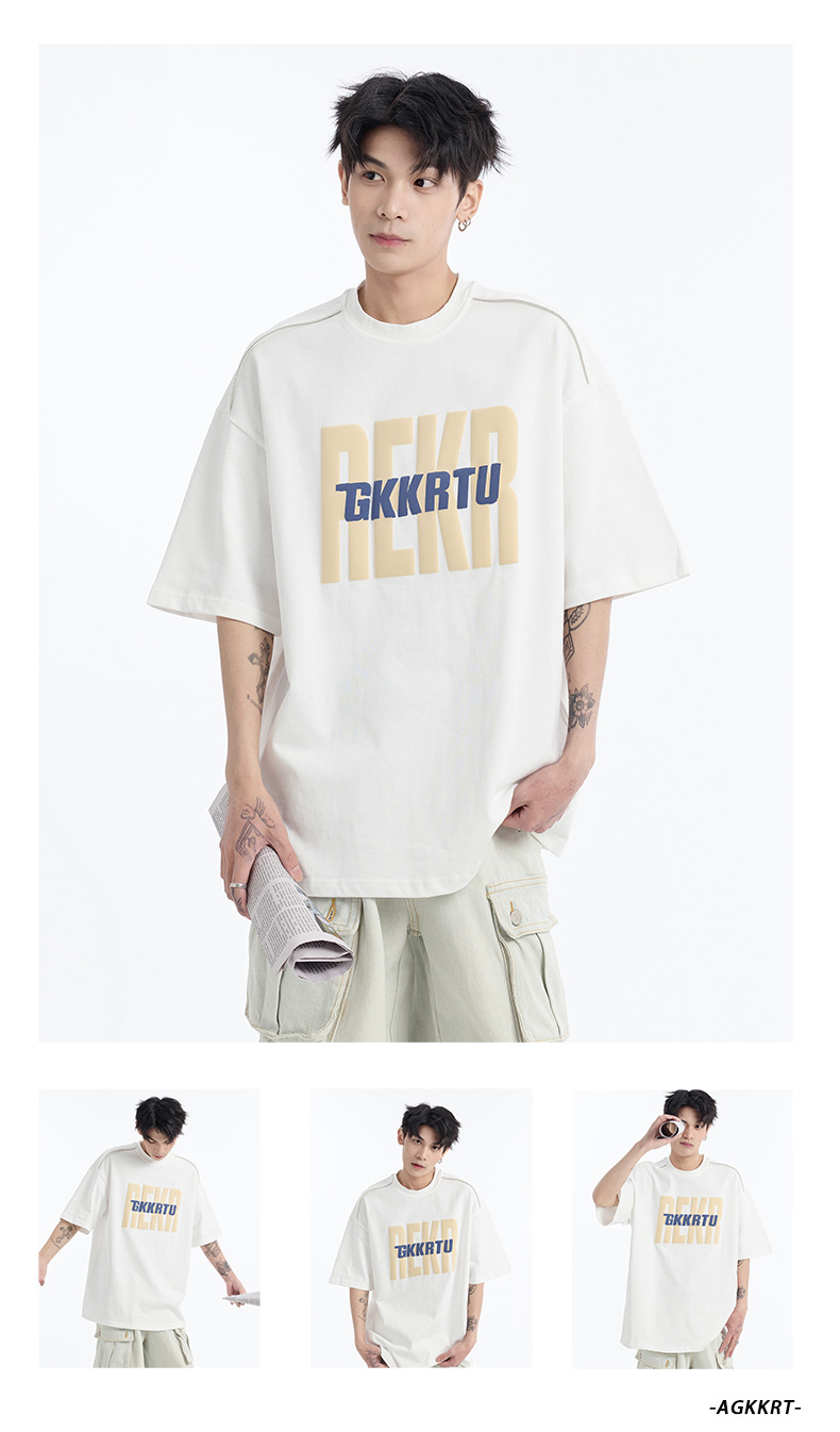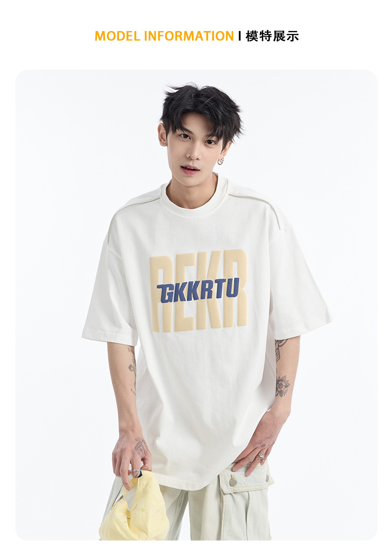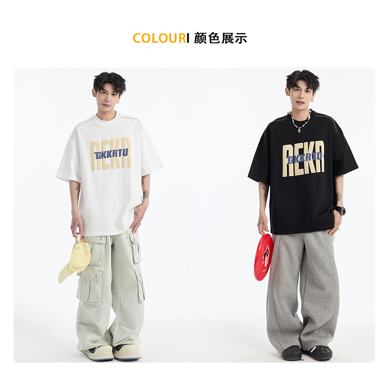 여름용 헤비웨이트 320g 반팔 티셔츠 남성용 폼 프린팅 트렌디 브랜드 루즈핏 디자인 시원하고 통기성 좋은 반팔 티셔츠스토어 가기