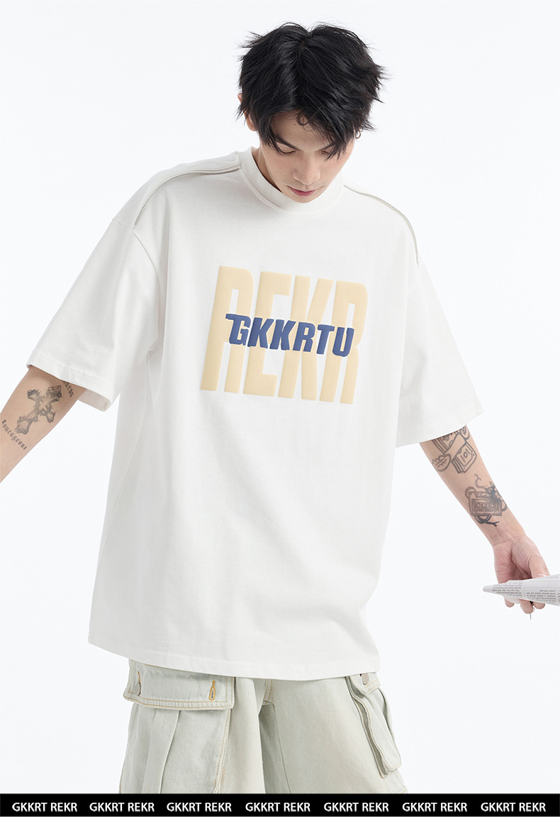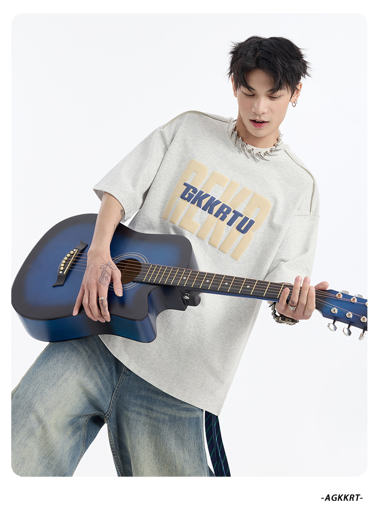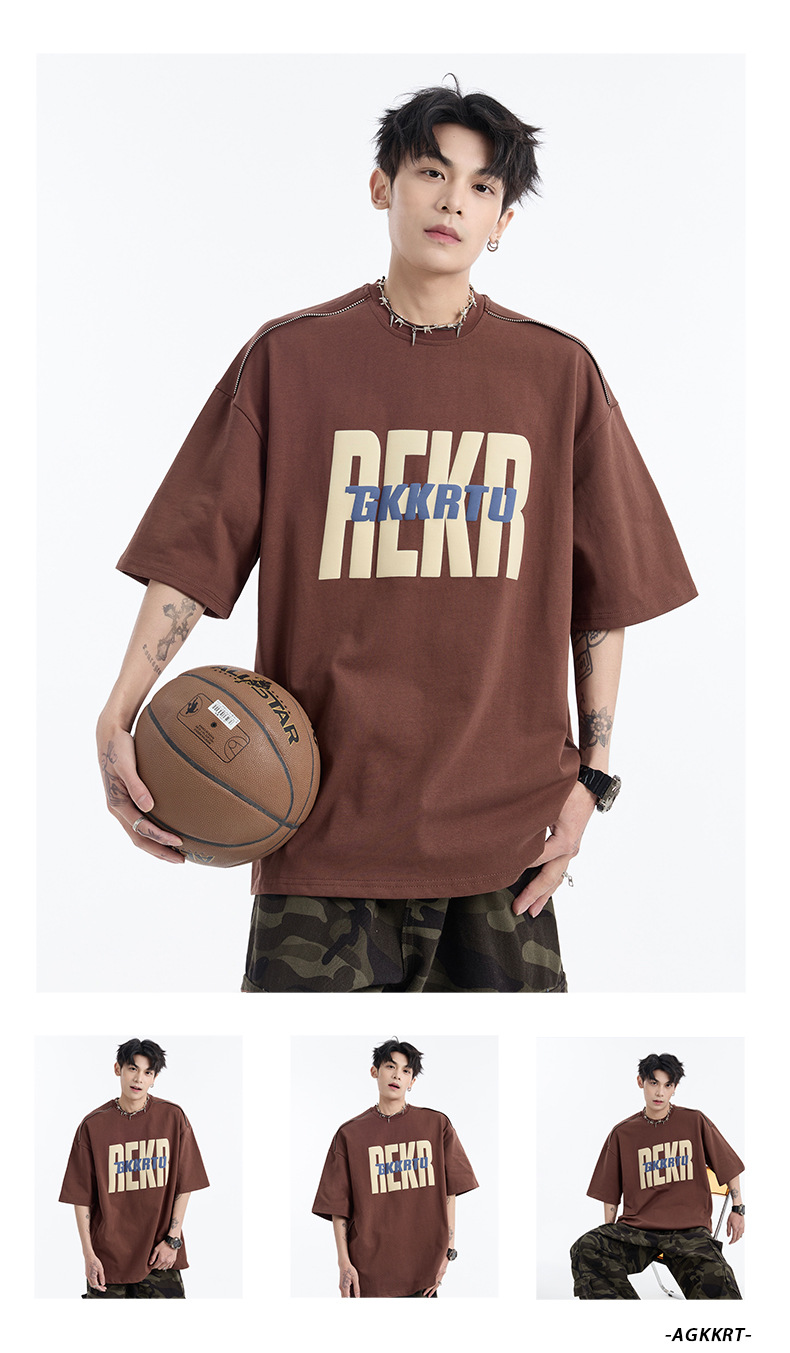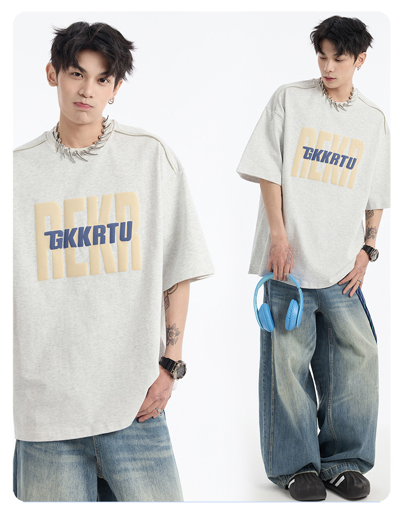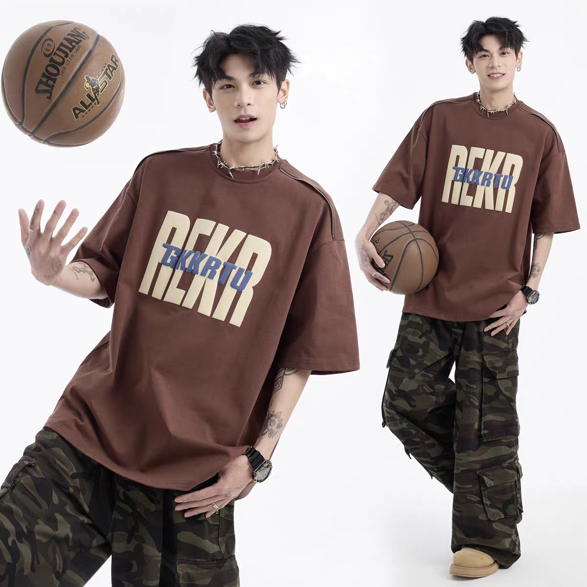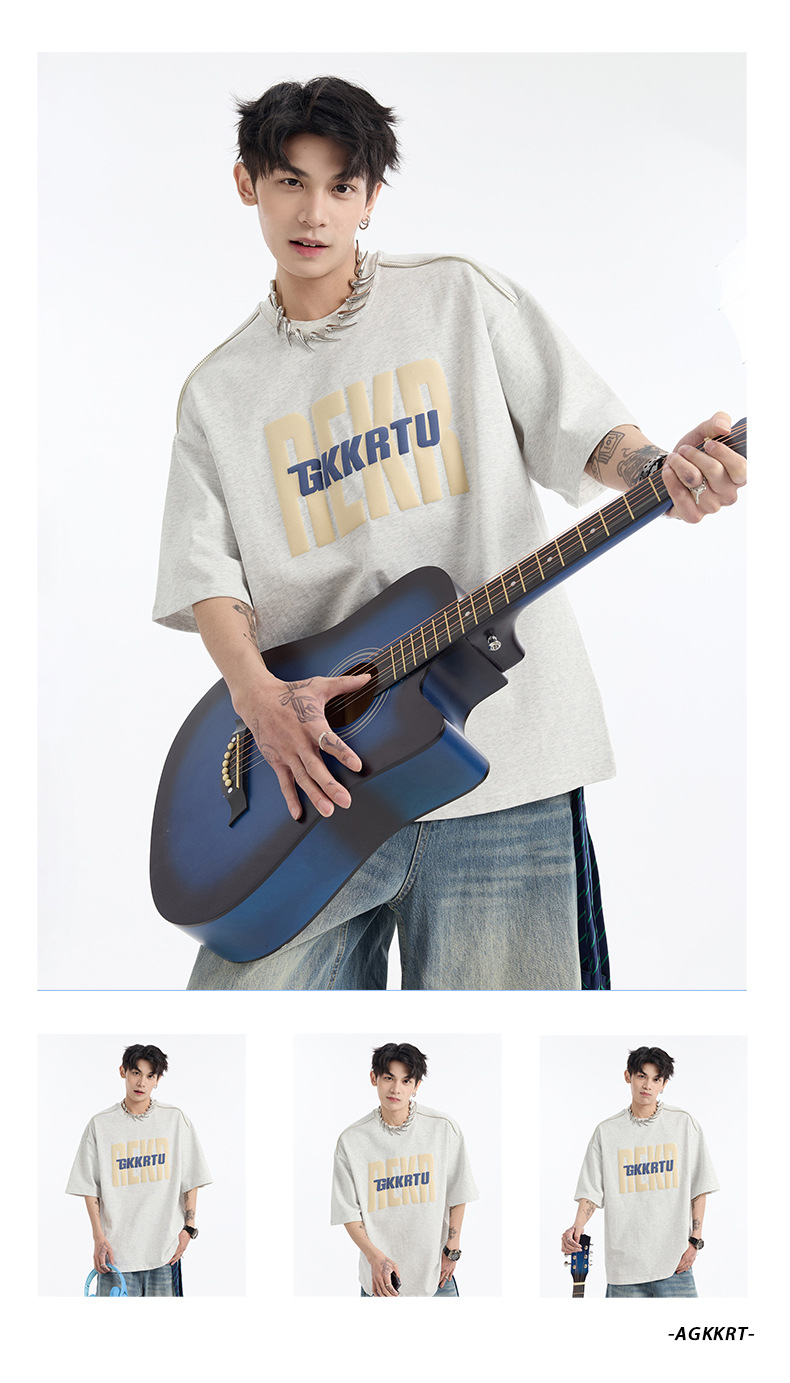 여름용 헤비웨이트 320g 반팔 티셔츠 남성용 폼 프린팅 트렌디 브랜드 루즈핏 디자인 시원하고 통기성 좋은 반팔 티셔츠스토어 가기