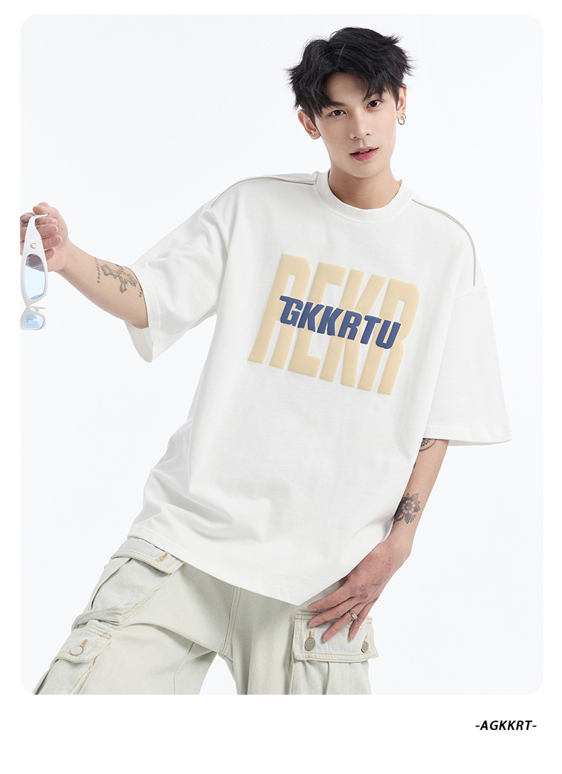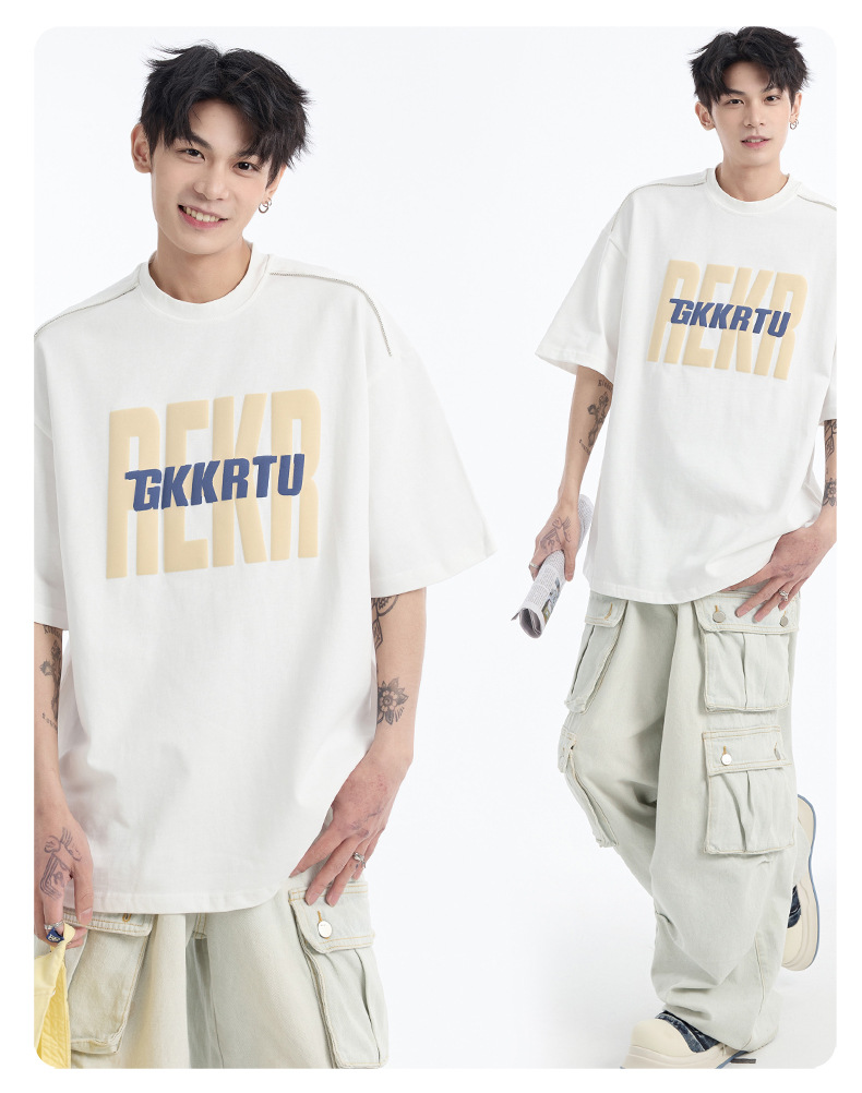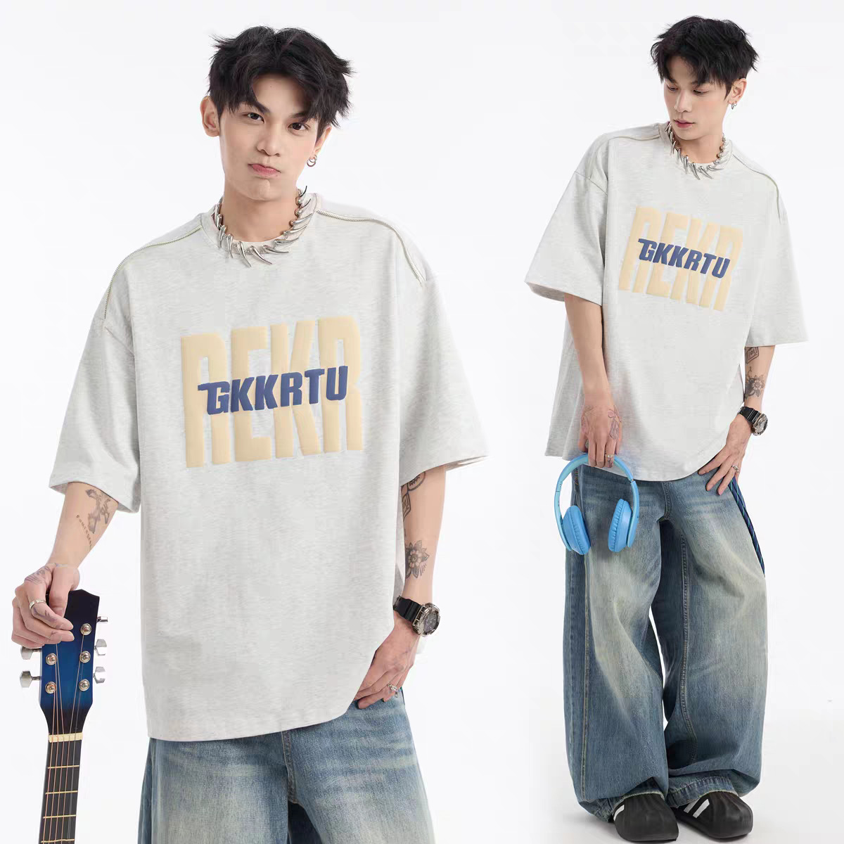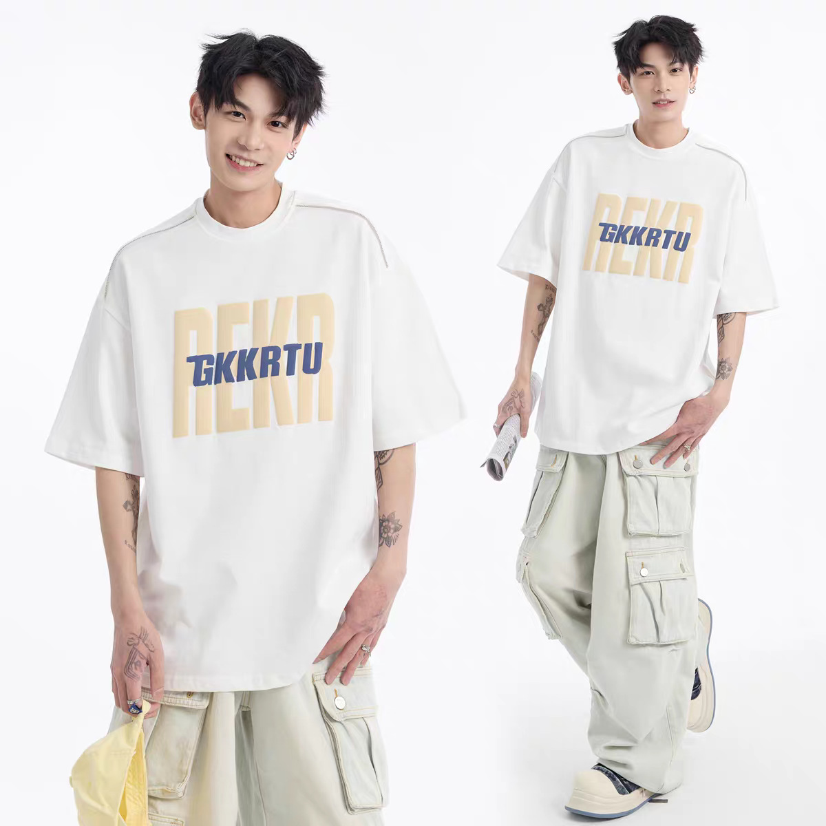 여름용 헤비웨이트 320g 반팔 티셔츠 남성용 폼 프린팅 트렌디 브랜드 루즈핏 디자인 시원하고 통기성 좋은 반팔 티셔츠