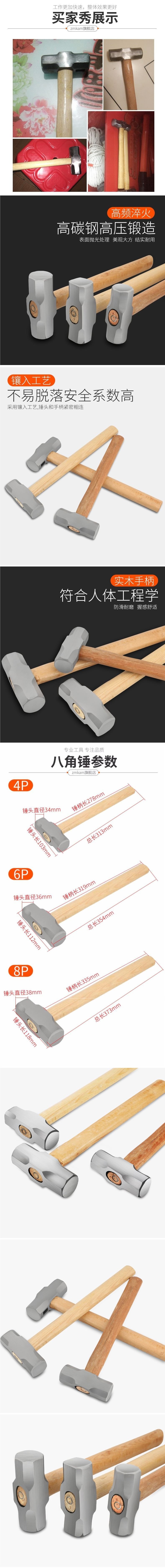 도매 팔각형 망치 사각형 머리 나무 손잡이 헤비 듀티 벽 파괴 망치 건설 현장용 다기능 석재 작업 망치스토어 가기