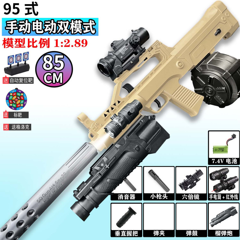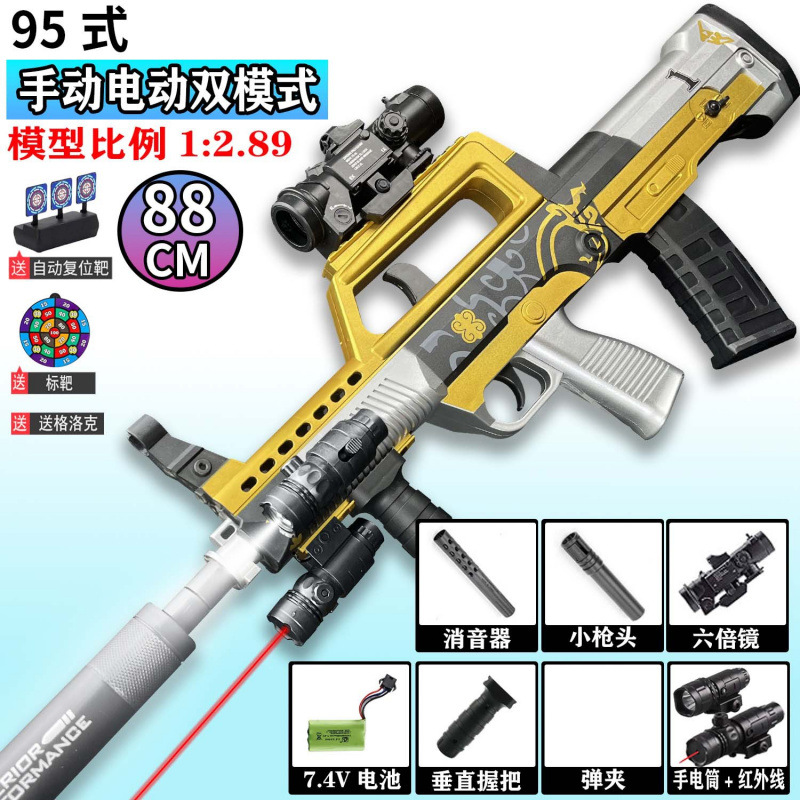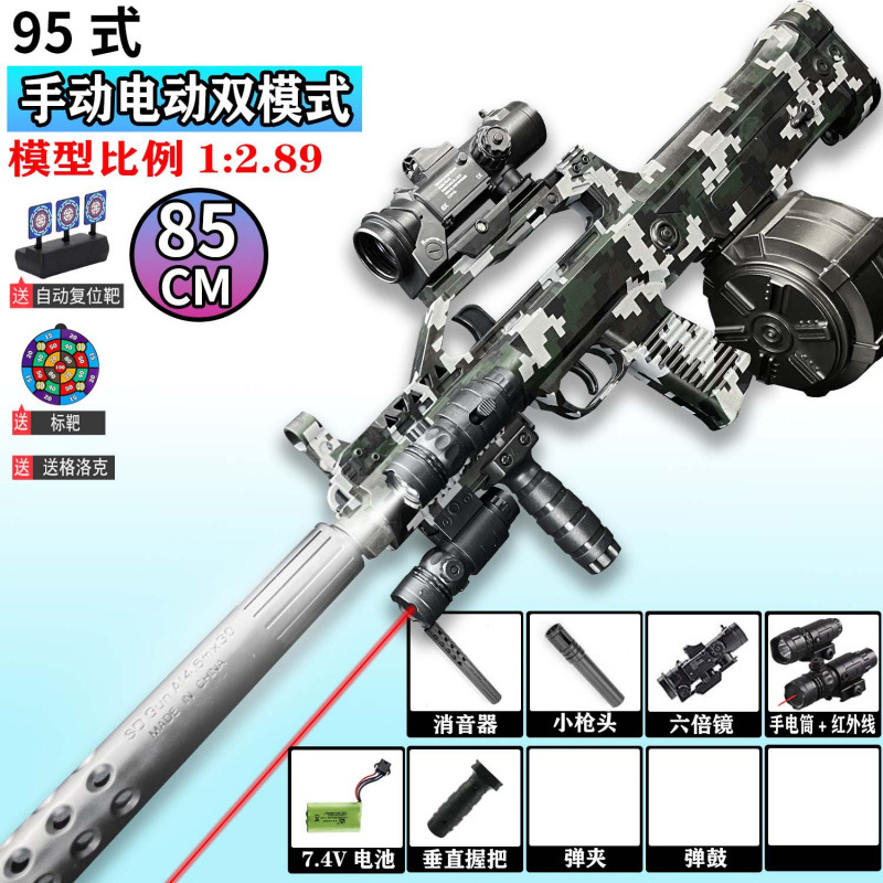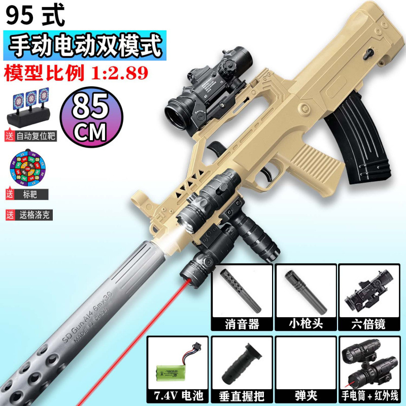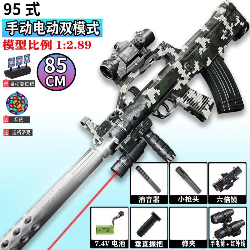 QBZ-95 돌격 소총 수동 및 자동 장난감 총 어린이 소년 장난감 전기 연속 발사 시뮬레이션 소프트 총알 총스토어 가기