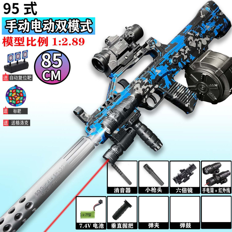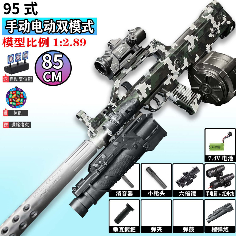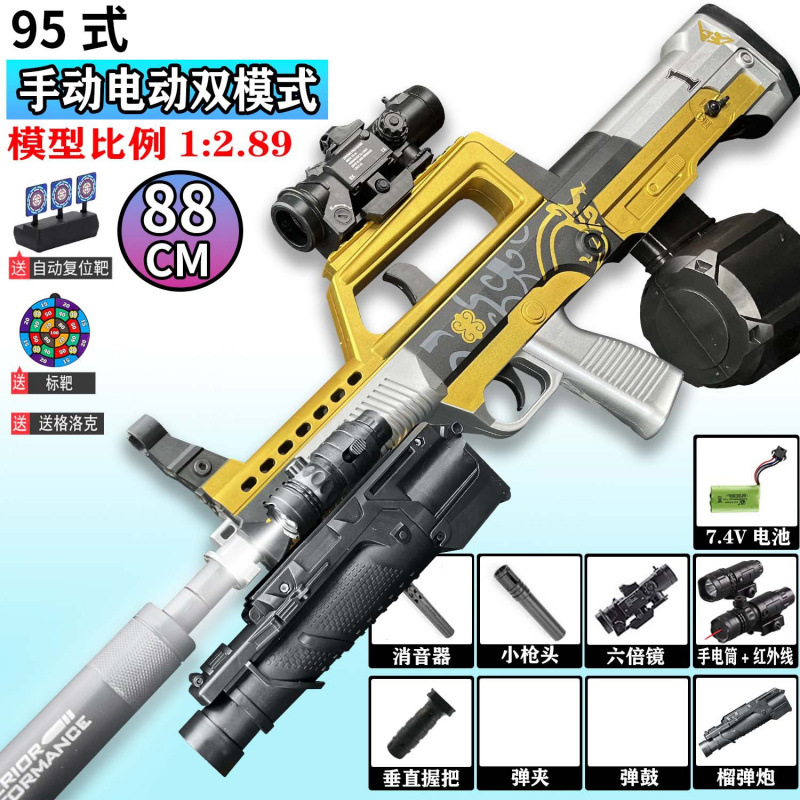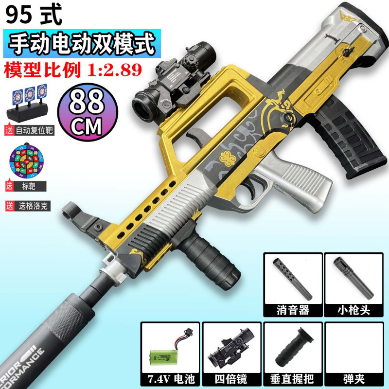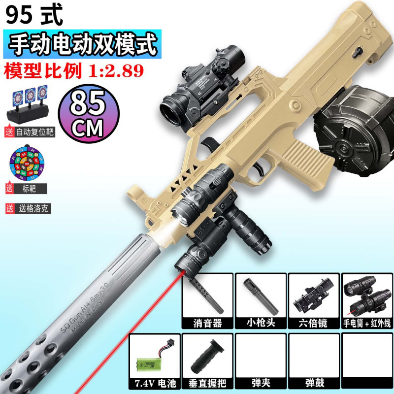QBZ-95 돌격 소총 수동 및 자동 장난감 총 어린이 소년 장난감 전기 연속 발사 시뮬레이션 소프트 총알 총스토어 가기