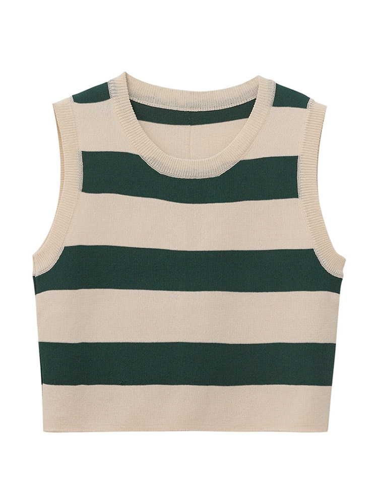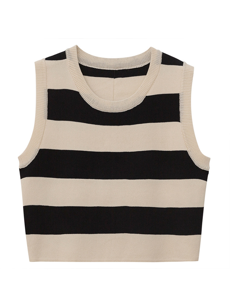 민소매 줄무늬 니트 2024 년 새 여름 작은 조끼, 슬링 여성 내부 착용 외부 착용을위한 짧은 탑 착용스토어 가기