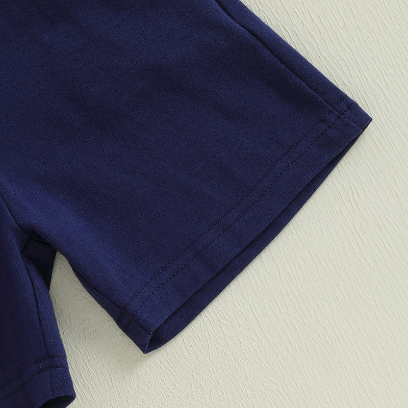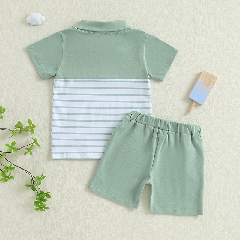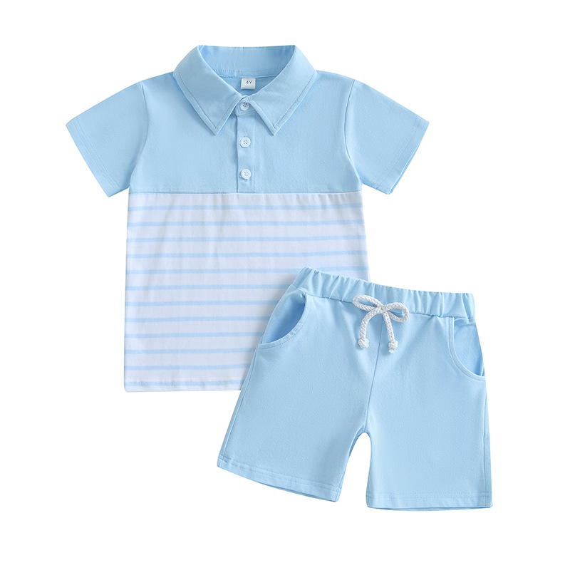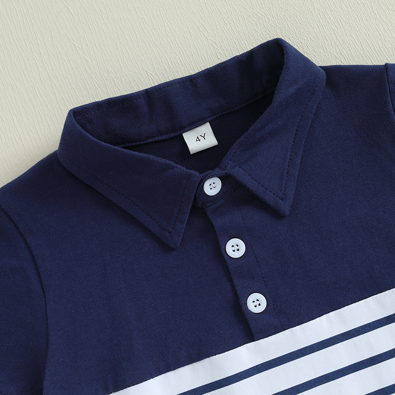 대외 무역 유럽과 미국 아동복 여름 신작 소년 여름 줄무늬 반팔 티셔츠 폴로 셔츠 + 반바지 투피스 세트