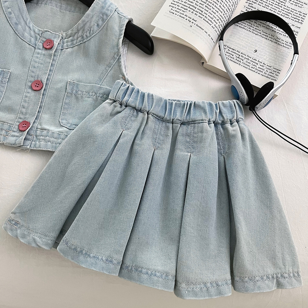 2025 새로운 여자 여름 얇은 데님 짧은 치마 정장 아기 귀여운 패션 캐주얼 소프트 데님스토어 가기