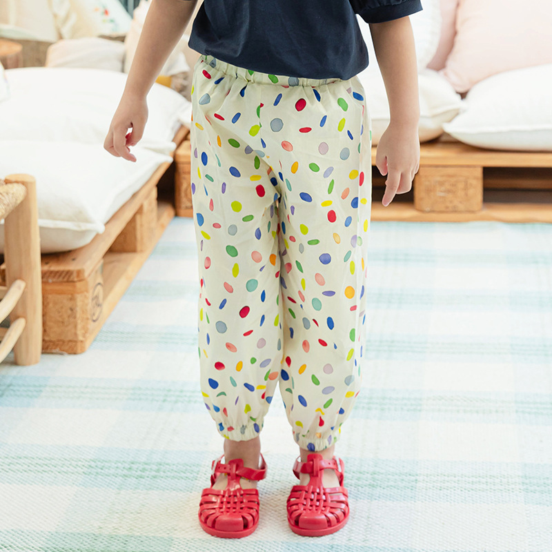 2025 여름 어린이 모기 방지 바지 중소 소년 소녀 랜턴 팬츠 다리 다리가있는 가정용 에어컨 파자마 팬츠 면봉 비치 바지