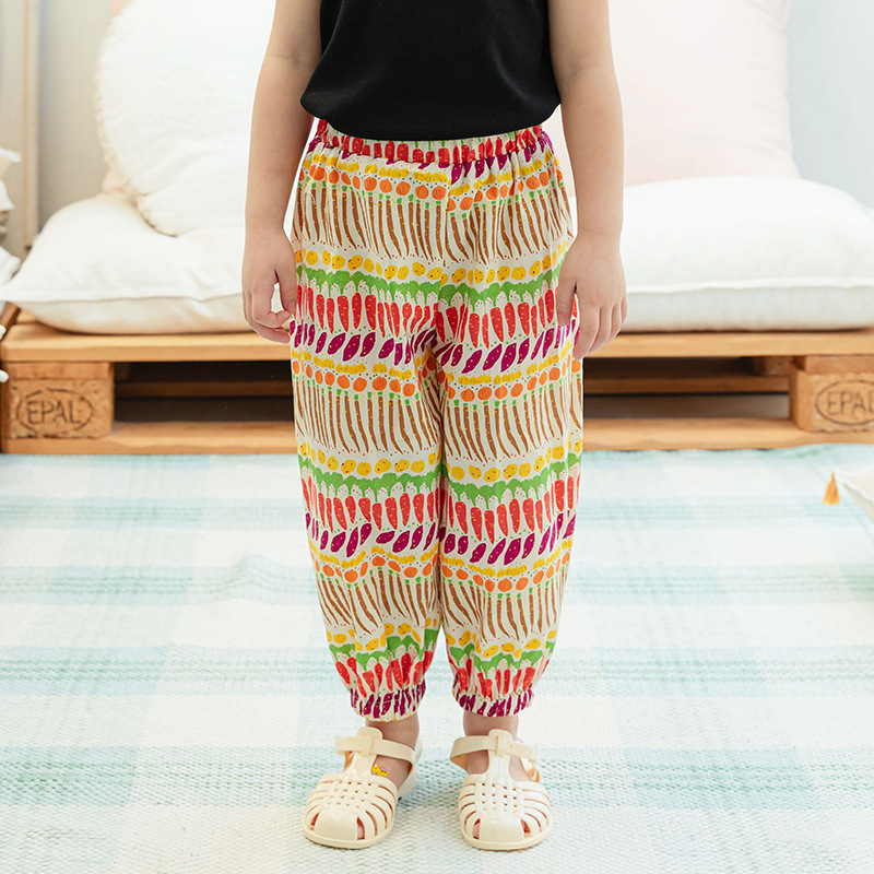 2025 여름 어린이 모기 방지 바지 중소 소년 소녀 랜턴 팬츠 다리 다리가있는 가정용 에어컨 파자마 팬츠 면봉 비치 바지스토어 가기