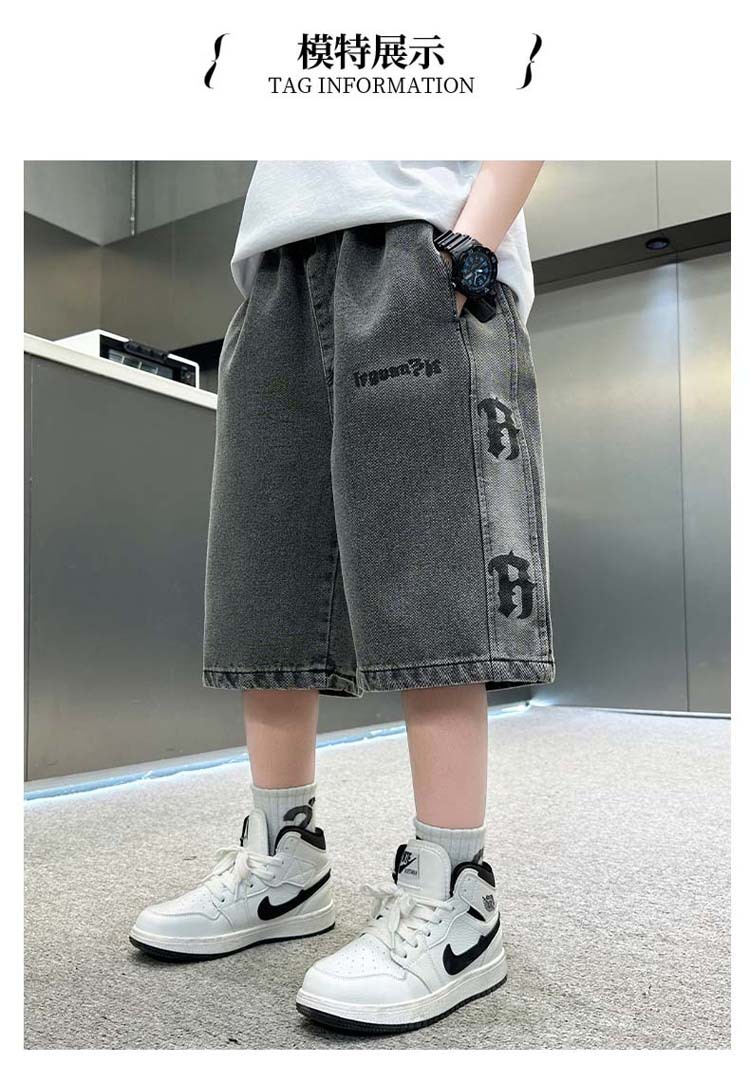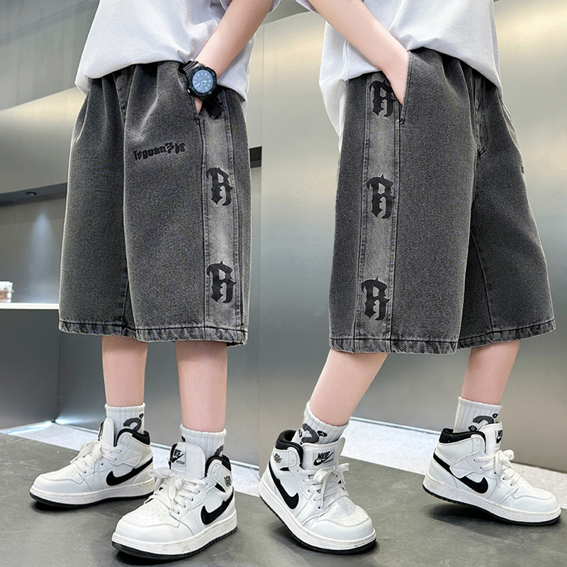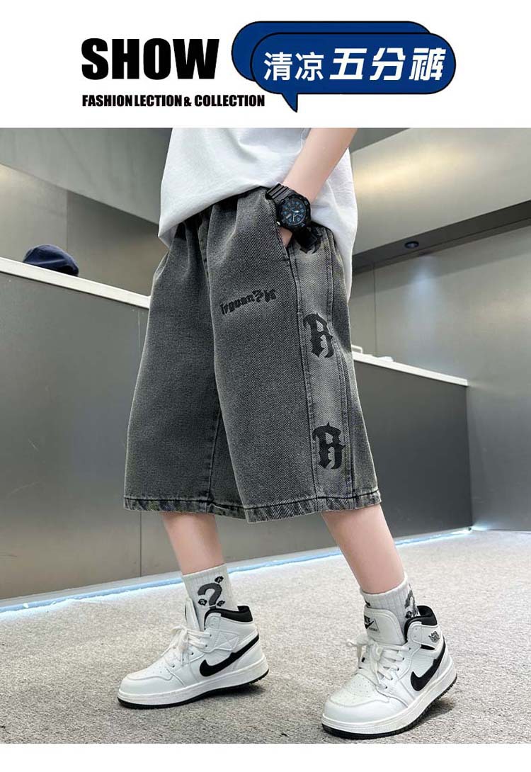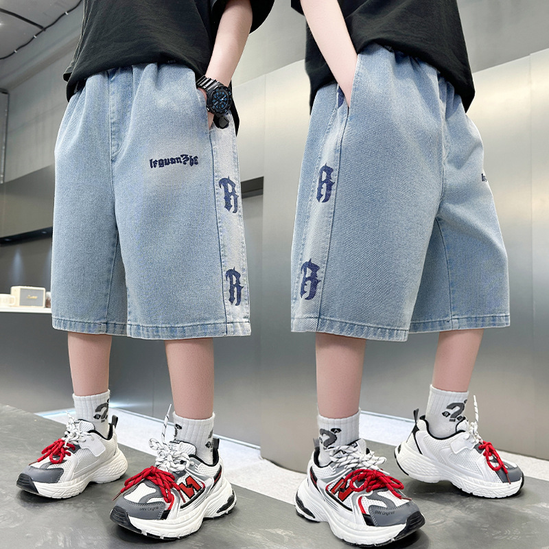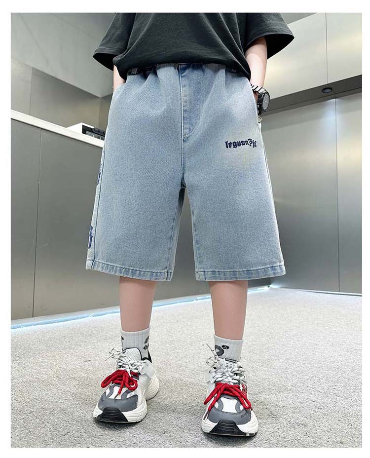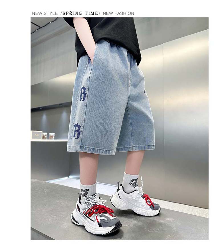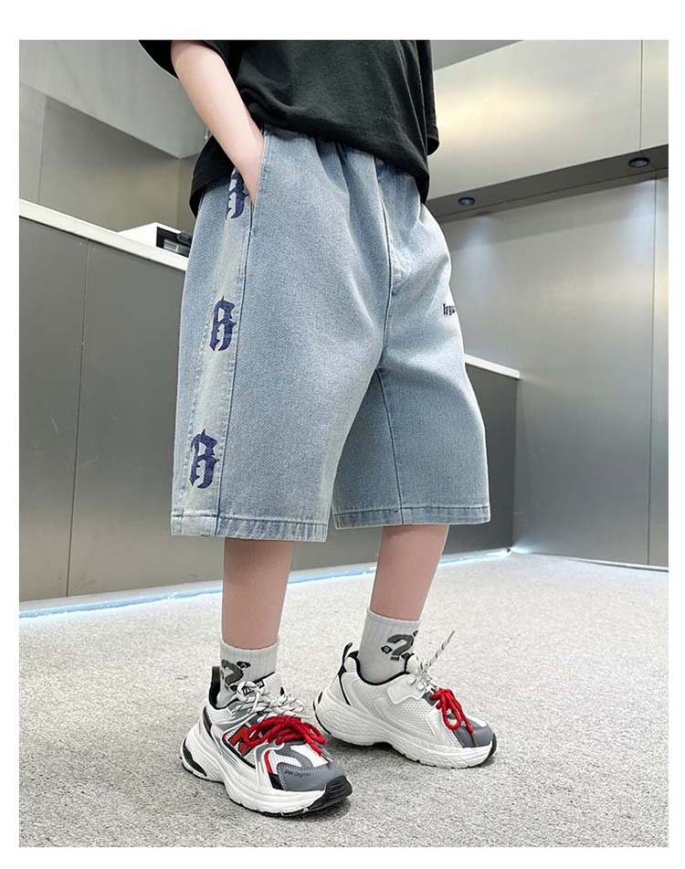 중대형 아동 데님반바지, 새로운 한국형 아동 여름 얇은 중간바지, 남아 패션 5부바지, 트렌디한 아동복스토어 가기