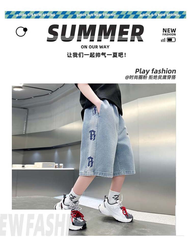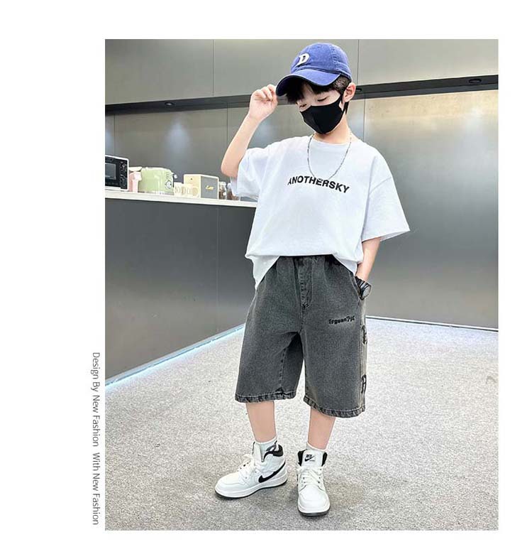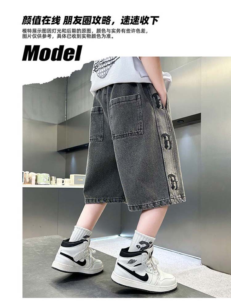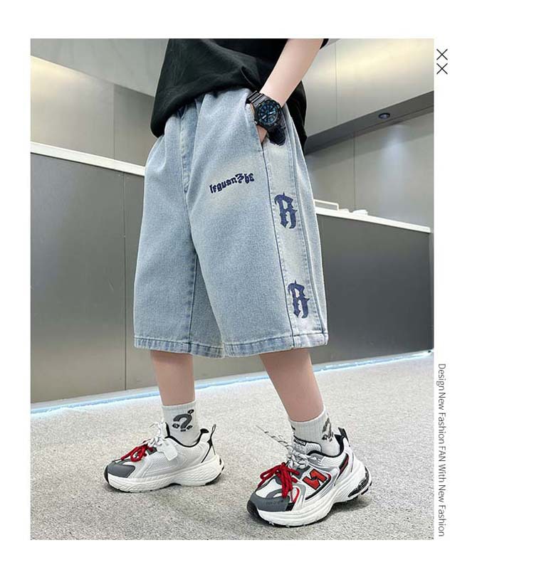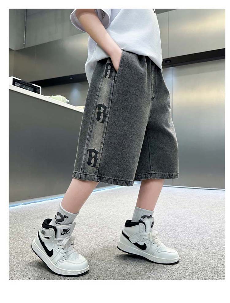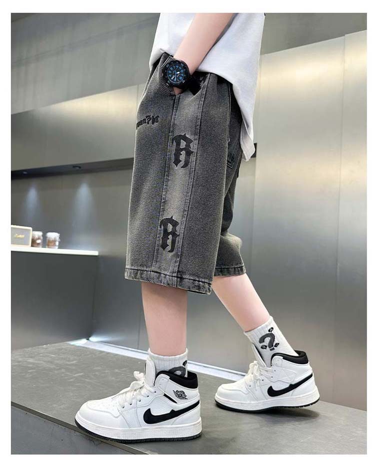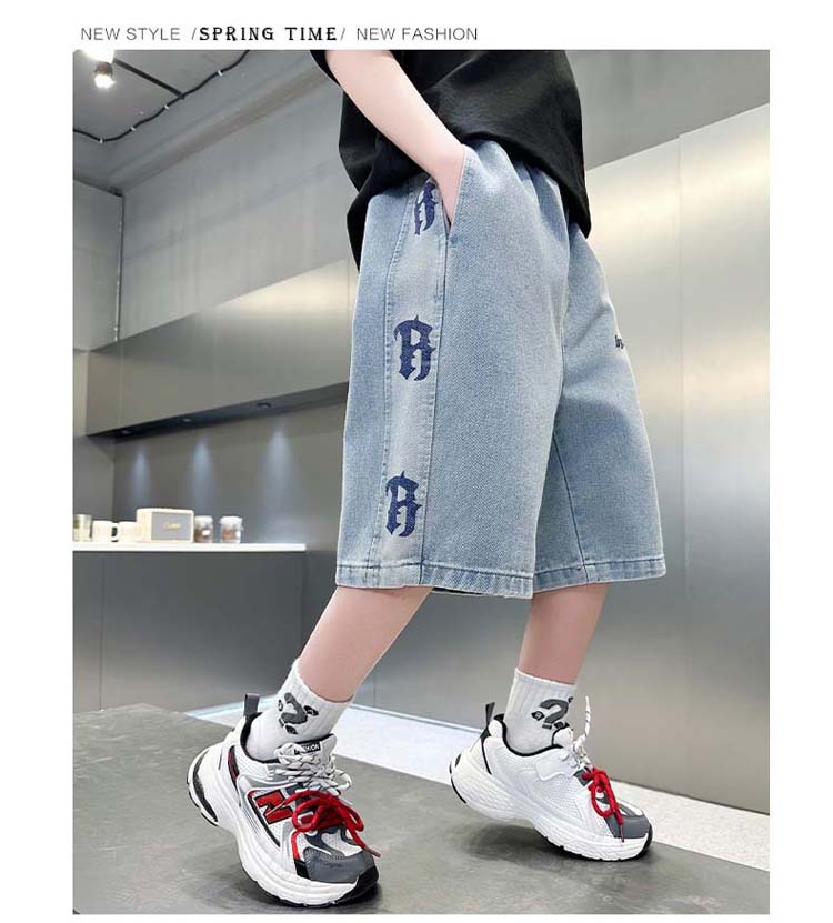 중대형 아동 데님반바지, 새로운 한국형 아동 여름 얇은 중간바지, 남아 패션 5부바지, 트렌디한 아동복스토어 가기