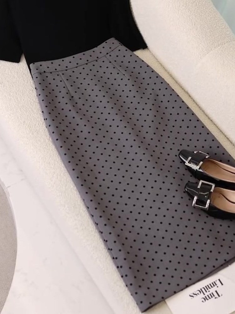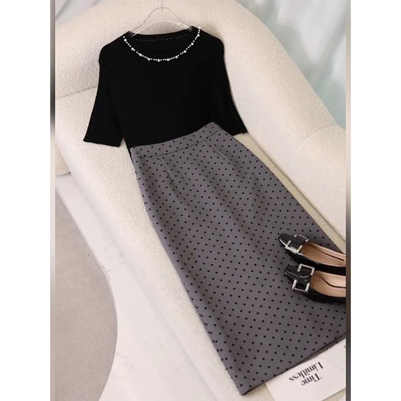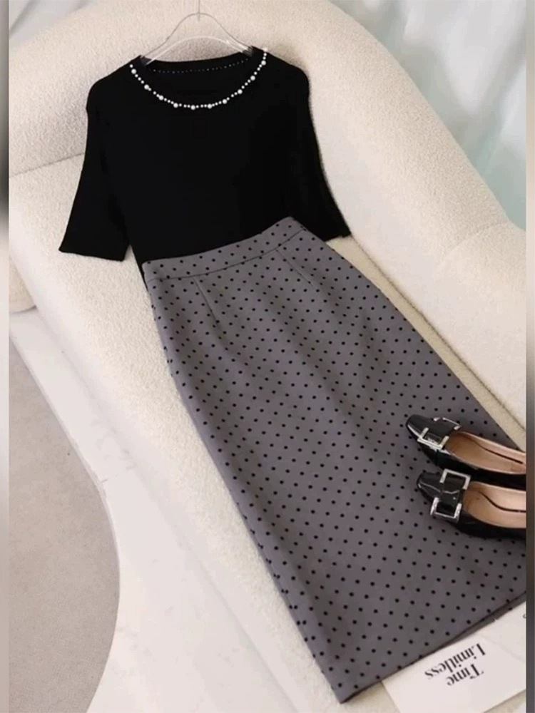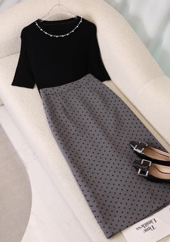 • 정장 (블랙 탑 + 도트 스커트)
