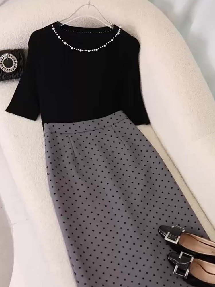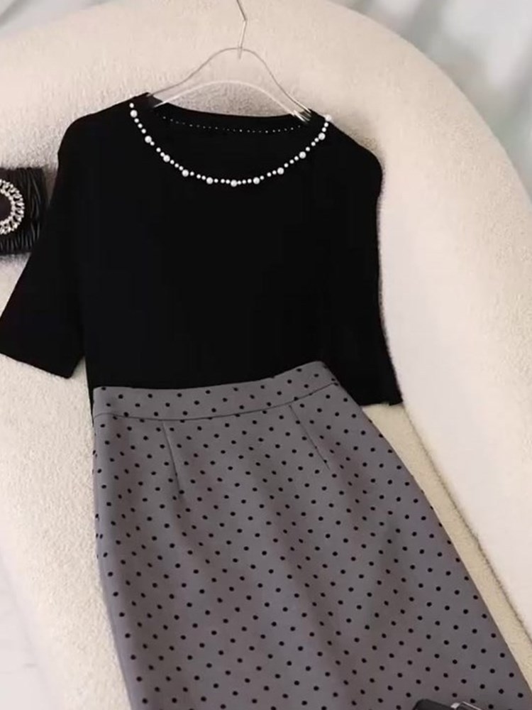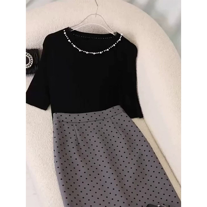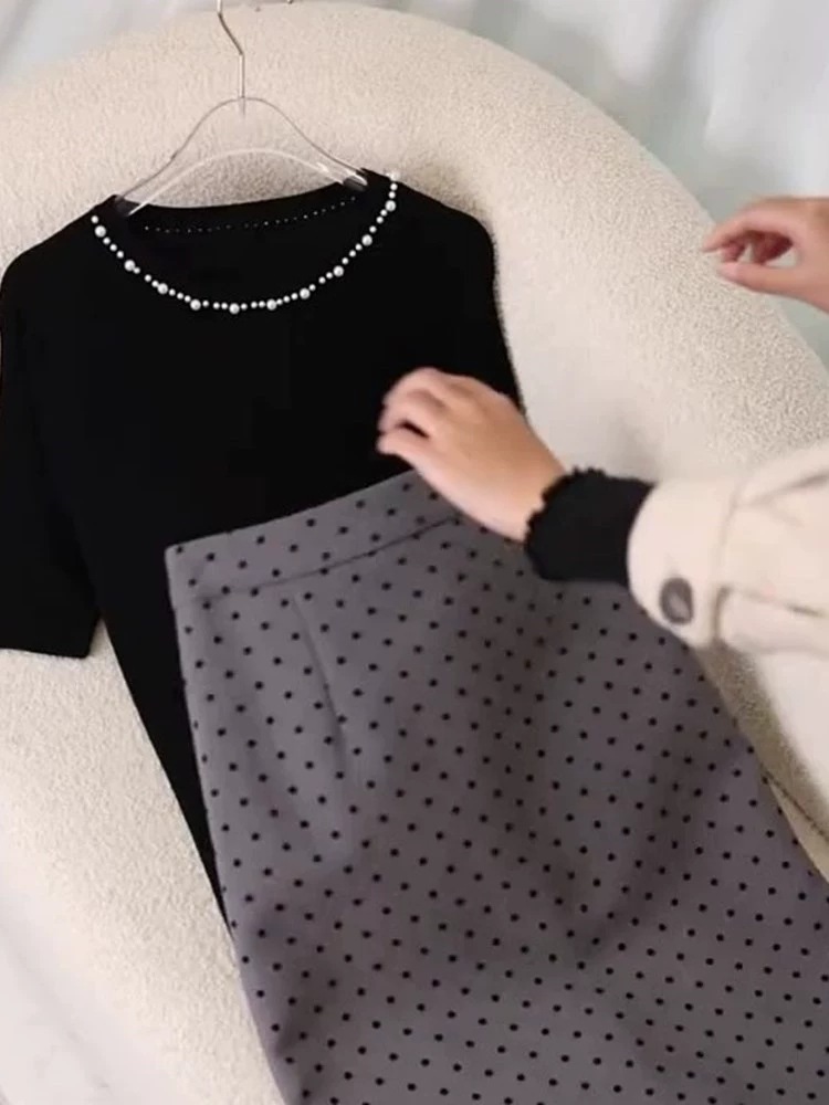2025 슈퍼 파이어 투피스 여름 원피스 한 세트의 기질 사교계 디자인 탑 웨이브 도트 스커트 외국 스타일 세트스토어 가기