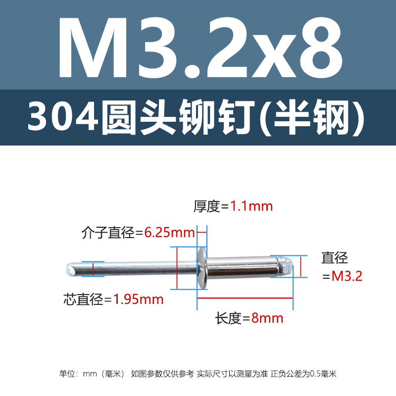• (반강) M3.2*8 (304 둥근 머리 리벳)