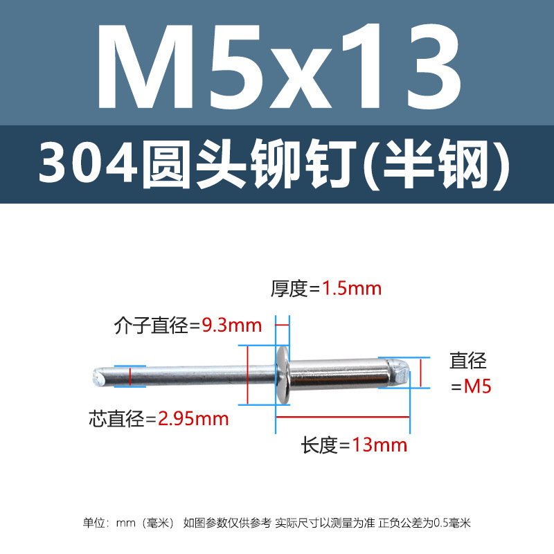 • (올 스틸) M5*13(304 둥근 머리 리벳)