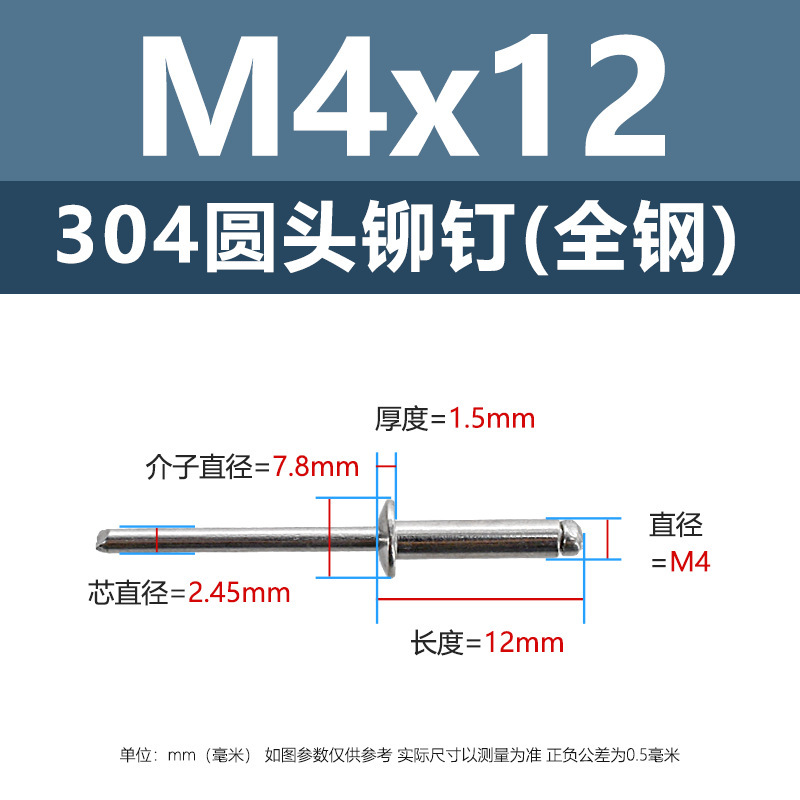 • (모두 강철) M4.8*14(304 둥근 머리 리벳)