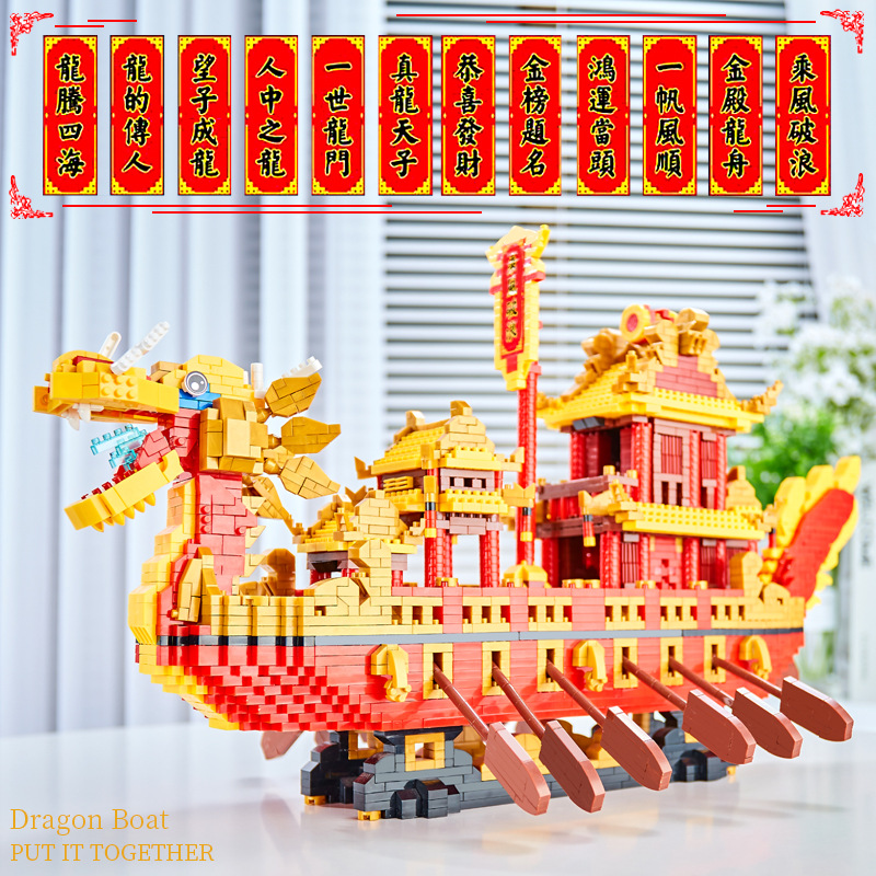 단오절 드래곤 보트 중국 스타일 호환 레고 소년 요트 모델 장식품 조립 교육 빌딩 블록 장난감 선물스토어 가기