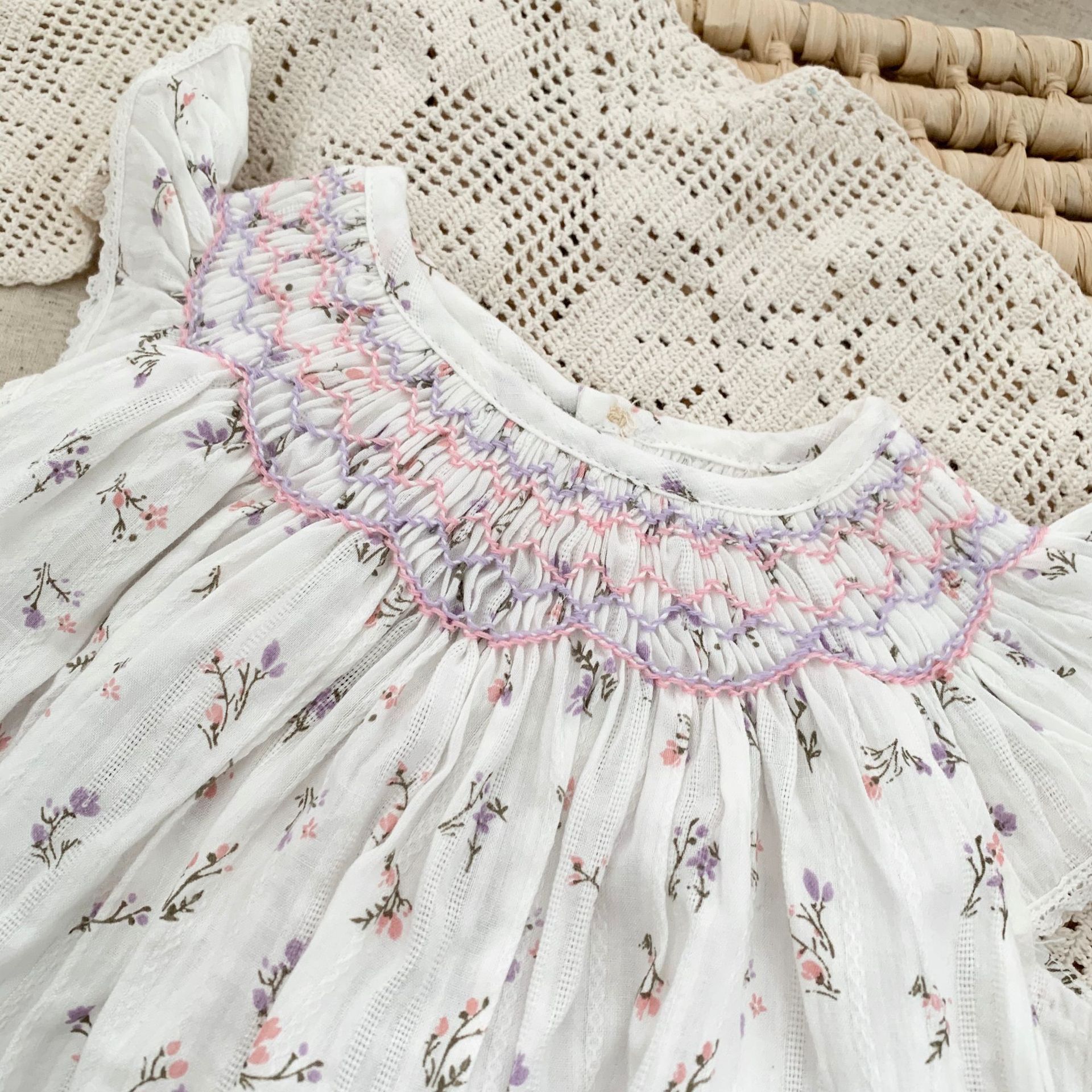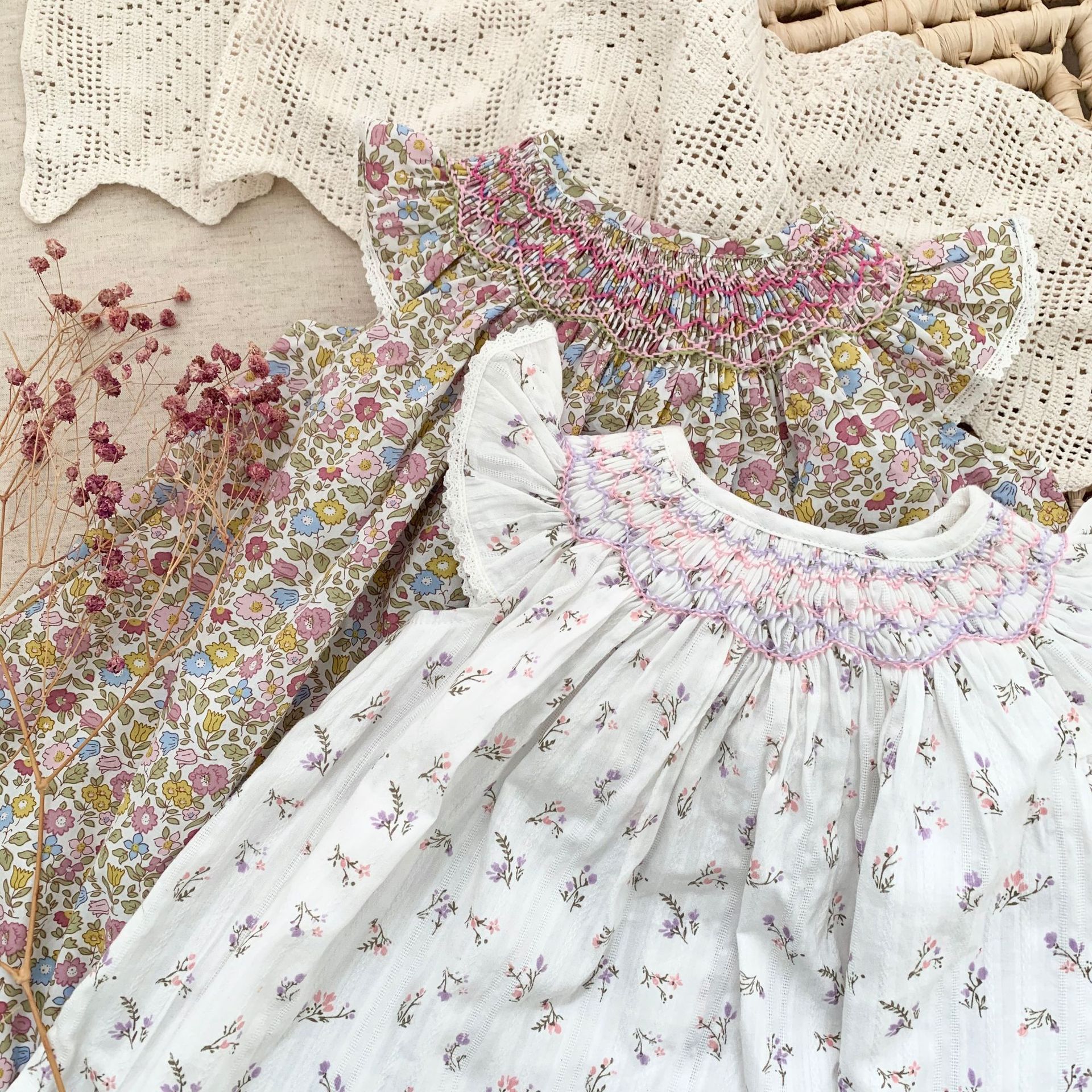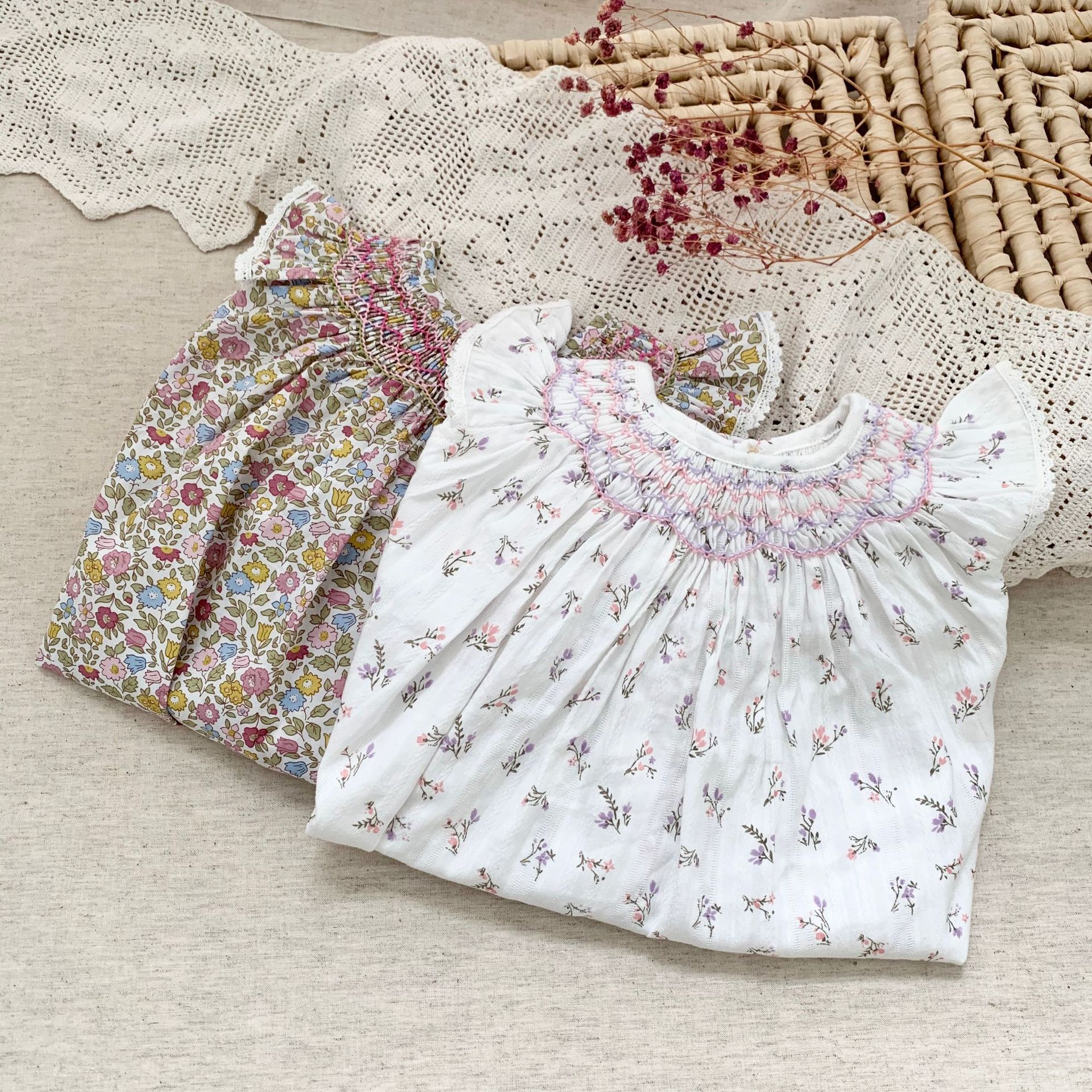 소녀의 수제 인쇄 된 플라잉 슬리브 인형 원피스 아기 소녀의 중공업 원피스 대외 무역 소녀의 여름 아기 원피스