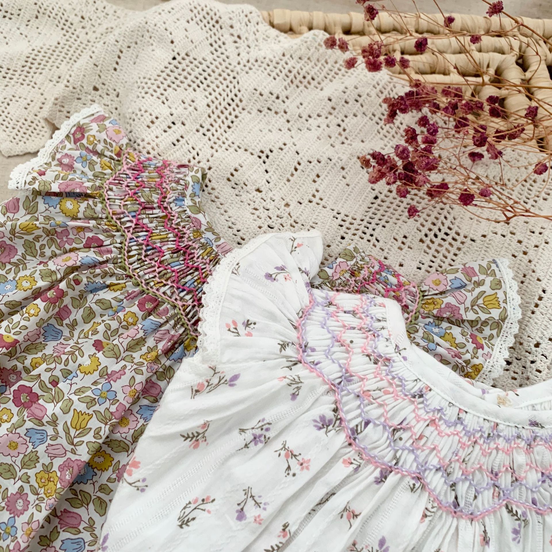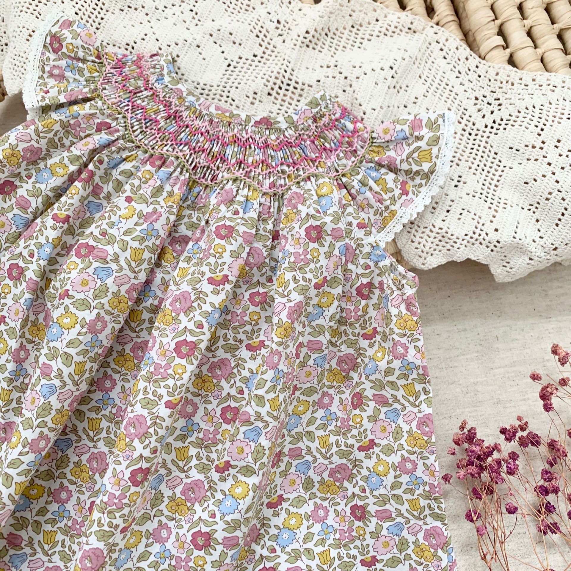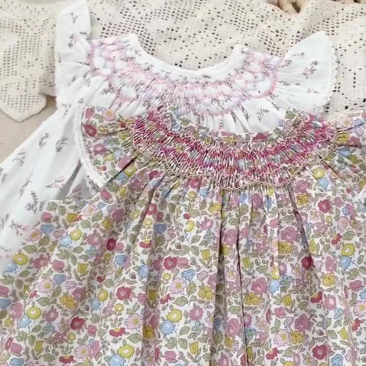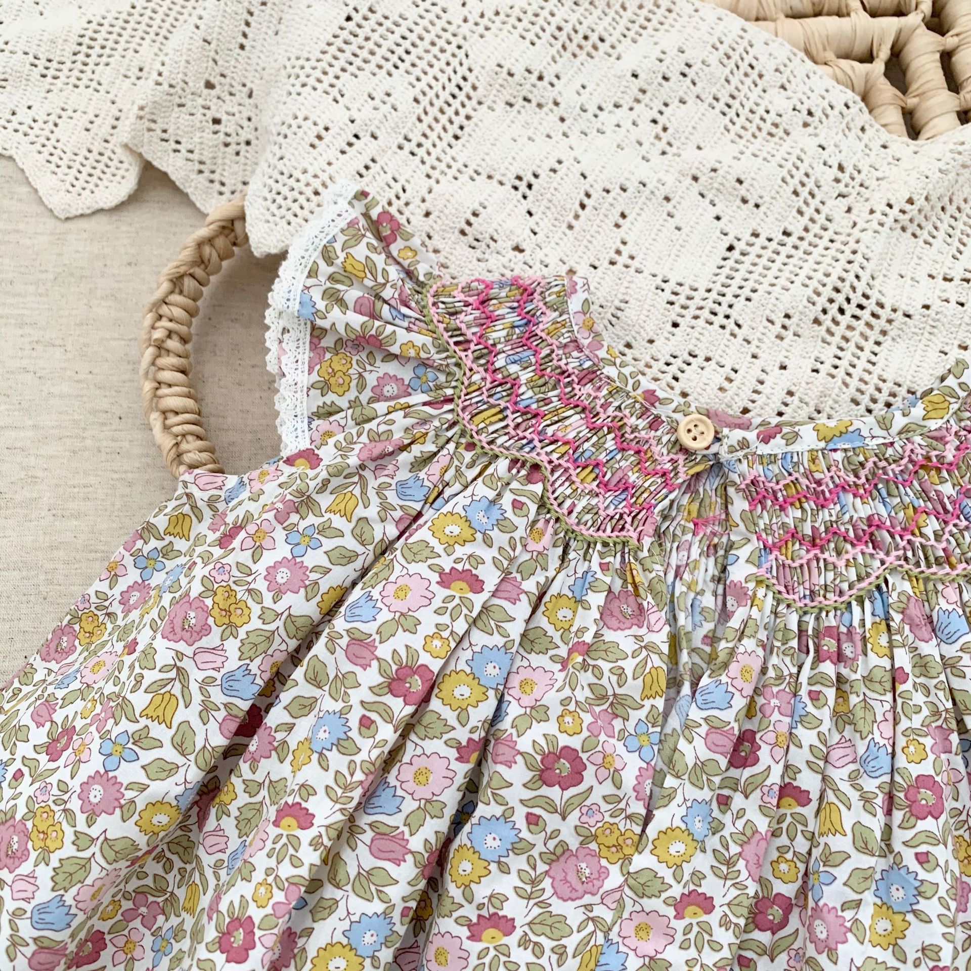 소녀의 수제 인쇄 된 플라잉 슬리브 인형 원피스 아기 소녀의 중공업 원피스 대외 무역 소녀의 여름 아기 원피스스토어 가기