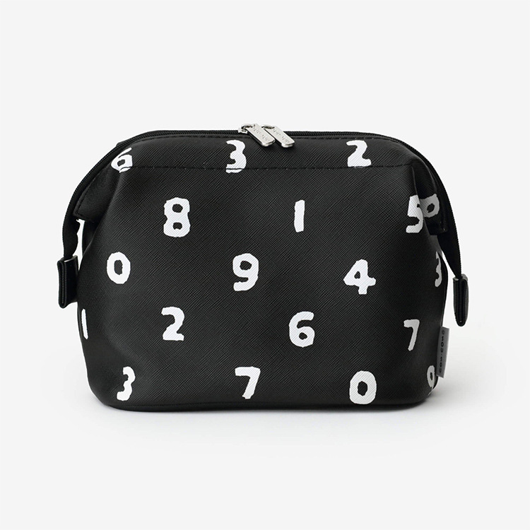 日单SOU化妆包PU皮环保印花ins风黑色数字图案十字纹收纳化妆袋