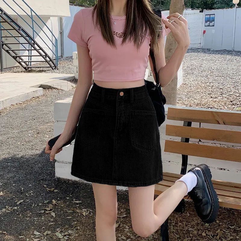 섹시한 스파이스 소녀 세련된 높은 허리 데님 스커트 2025 안티 눈부심 라이닝 높은 허리 엉덩이 스커트 우아한 슬림스토어 가기