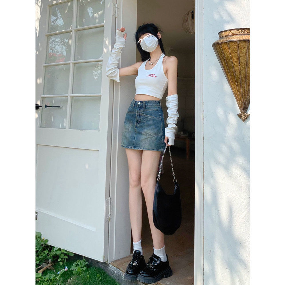 섹시한 스파이스 소녀 세련된 높은 허리 데님 스커트 2025 안티 눈부심 라이닝 높은 허리 엉덩이 스커트 우아한 슬림
