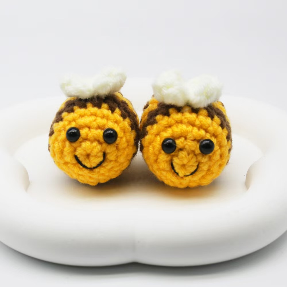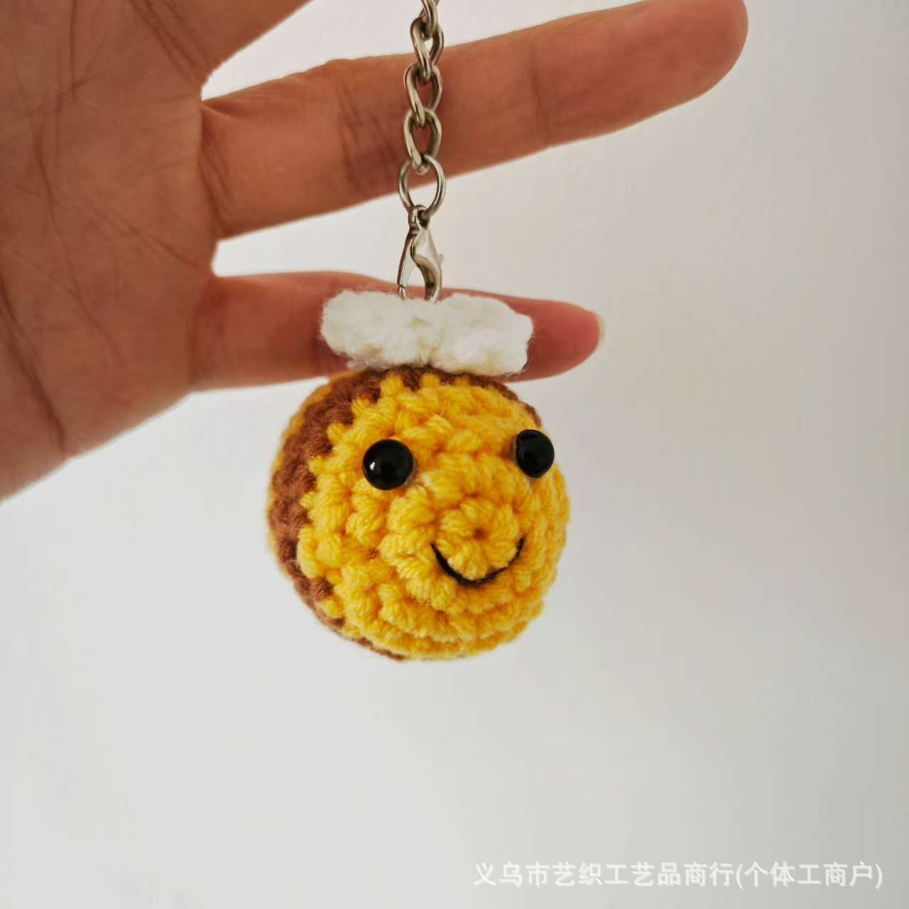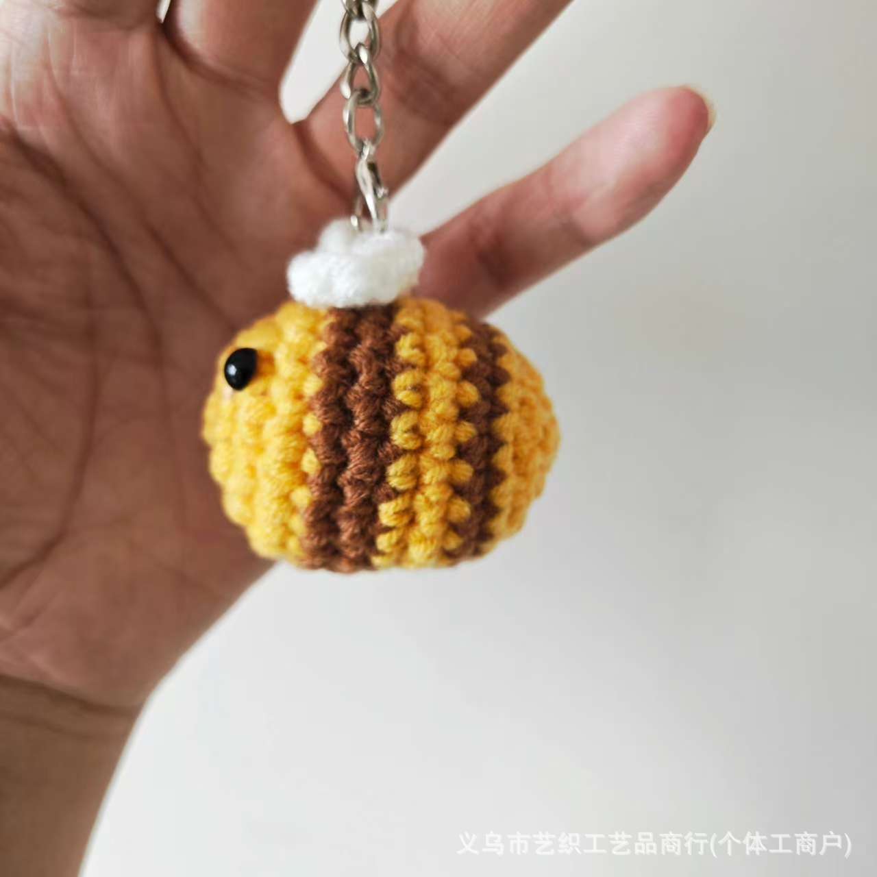 국경을 넘는 새로운 창조적 인 손으로 뜨개질 작은 꿀벌 펜던트 만화 키 체인 펜던트 가방 자동차 열쇠 고리